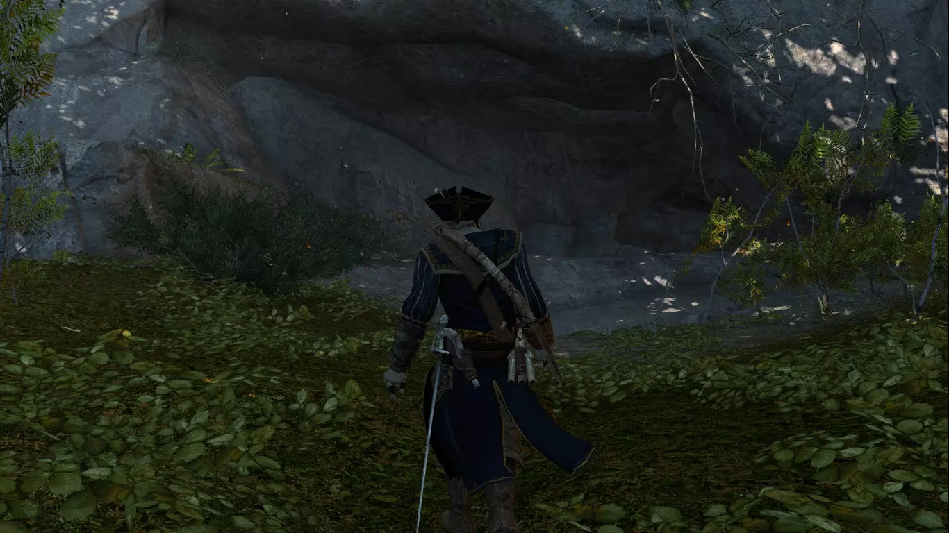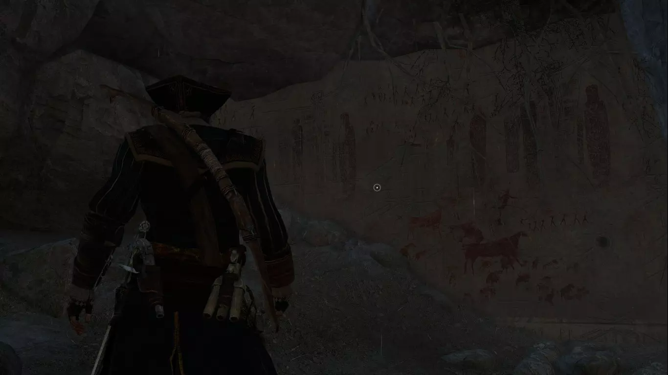 通往大神殿的洞穴入口位于康纳家乡的西北方向,几乎在布莱克罗克地区的地图边缘。和预想的一样,洞穴内确实有通往神殿的门在等待着,但很遗憾我们无法进入,因为唯一的钥匙——伊甸碎片在康纳与朱诺交谈后已在他手中碎裂,而他从查尔斯·李那里夺来的护身符则另有重要用途。