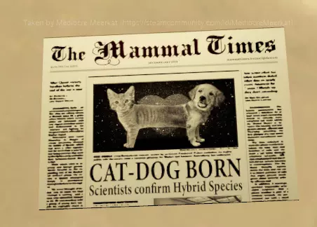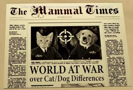 这是在【记忆区】房屋的尾声部分发现的,位于《史丹利的寓言2》的第一篇评论旁边。(有人告诉我,如果你没让狗和猫成为朋友,会出现另一份报纸,但我没测试过,因为我不是个糟糕的人。如果你是个糟糕的人,欢迎发送出现的那份报纸的截图。)玩家Casual为了团队,让狗和猫没有成为朋友,并分享了结果: