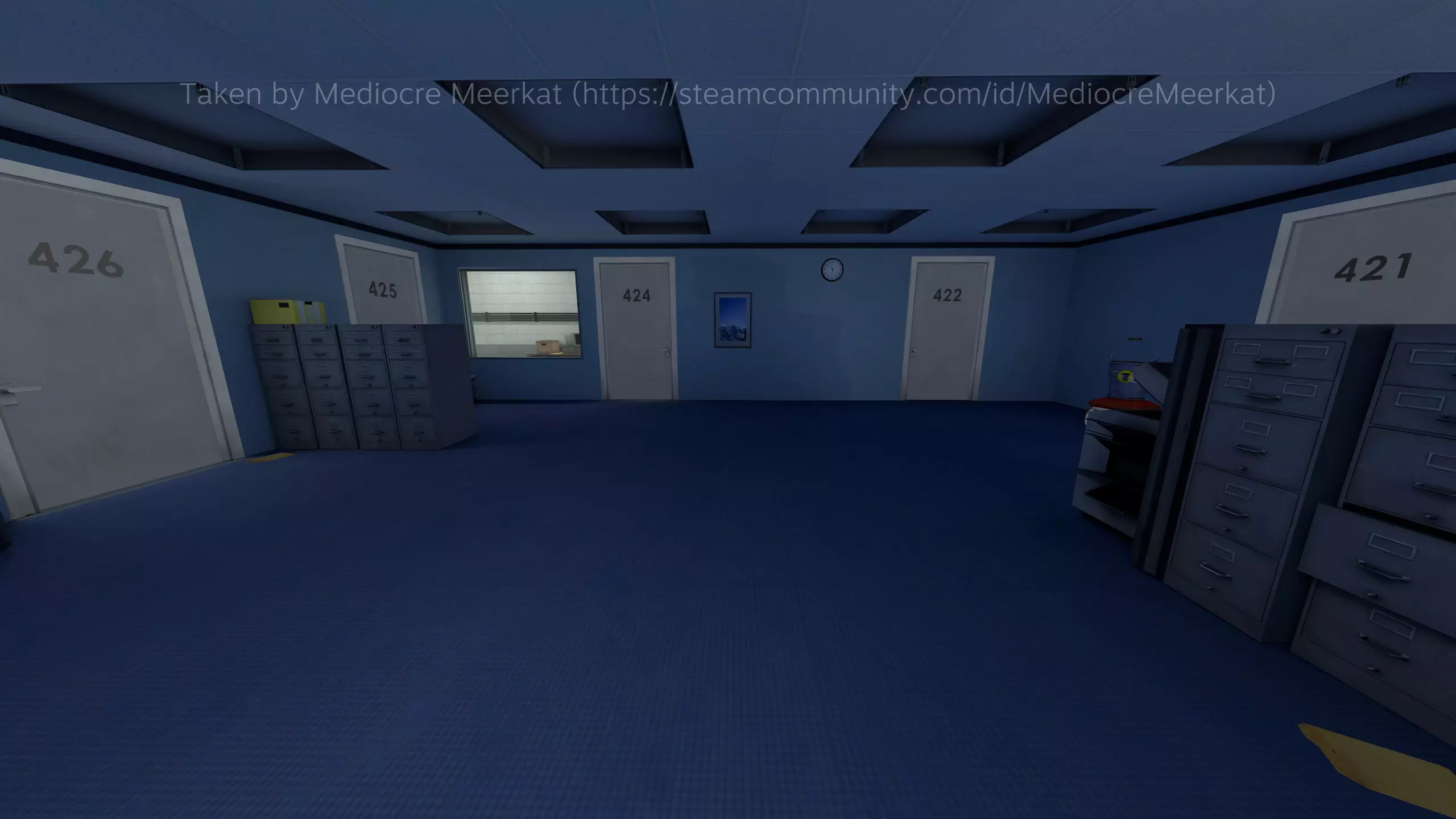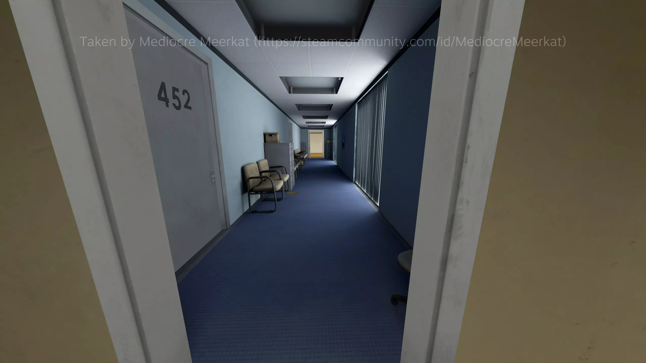 额外办公室+蓝色走廊(在到达两扇门前会有一组额外的办公室)