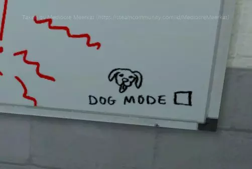 狗狗模式 在白板的右下角有一个标有“狗狗模式”的复选框,旁边还有一个小狗的简笔画(很可爱,我知道)。如果你与它互动,你的互动音效会从键盘声变成狗叫声。 10/10:完美游戏