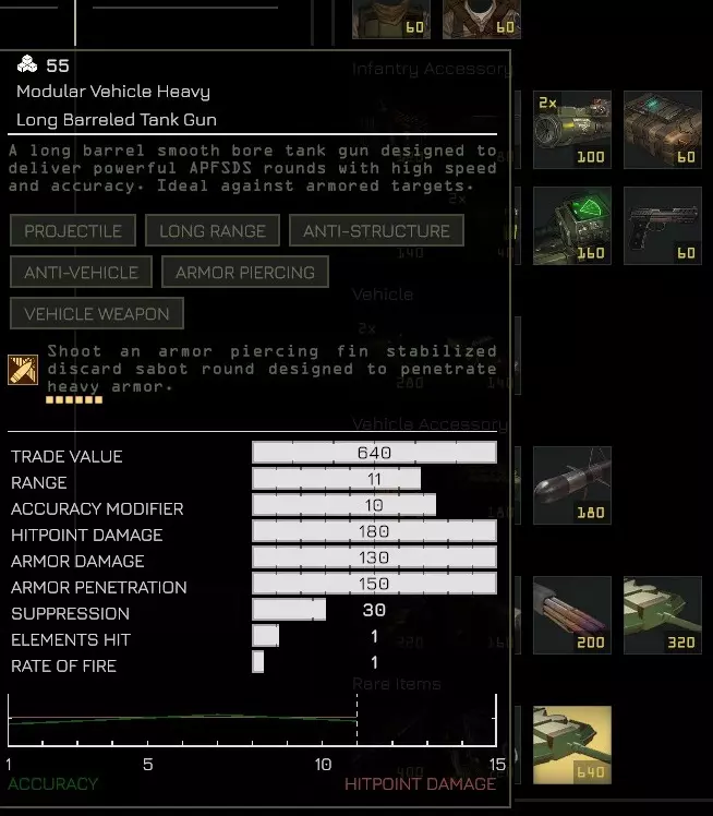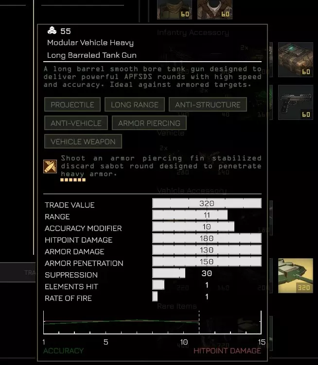 一个非常适合连锁使用的武器是机炮。它们能轻松摧毁所有步兵和轻中型载具,但对付重型装甲单位(重型坦克、中型步行机甲)会比较吃力。 23) 急救技能无法复活已阵亡的小队成员 该技能用于治疗受伤的士兵,这意味着通常需要一个生存能力较强的小队,这个技能才能发挥作用,否则你的小队成员会死亡过快/在你进行治疗前就被一击秒杀。 (此技能可通过提升小队领袖等级获得,例如卡达) 实用装备 以下是一些我个人非常喜欢且强烈推荐新手尝试的优秀武器和装备: 小队武器 1) 激光步枪:对步兵非常有效,即使是处于掩体中的步兵也不例外!伤害可观,具备穿甲能力和压制效果。弹药无限,且不像激光长枪那样快速过热。2) 冲锋枪:如果你能绕到敌人侧翼并靠近他们,你会惊讶地发现可以一击消灭敌人。烟雾弹、跳跃喷射背包(海盗突击队员护甲)和步兵运输车都是实现这一目标的好工具。它绝对比蹩脚的默认卡宾枪更胜一筹,甚至突击步枪在对付掩体后的敌人时也会显得吃力。 特殊武器 1) 自动加农炮*:能消灭步兵。掩体在它面前如同纸糊一般。无需多言。 2) 轻型迫击炮:远程烟雾弹部署工具。非常适合解救被压制的小队。它可以越过大型建筑物发射,因此不需要视线,能让你的迫击炮小队免受敌人反击。不过,迫击炮弹可能会“偏离”并落在相邻的格子上,这会使烟雾效果略有偏差。破片弹的威力也十分弱小,其伤害就好比拿一锅爆米花砸人,压制效果则如同一只愤怒的吉娃娃。而且它还经常打偏。如果你想用破片弹,还是换另一种迫击炮吧。 3) 反坦克导弹发射器*:拥有极其疯狂的反坦克伤害和惊人的射程。当你遭遇敌方反坦克导弹小组时(你会在游戏后期遇到他们,所以初期不用担心),很快就会对它产生畏惧。可以考虑专门为此配备一个目标指示器,或者也可以使用像卡尔达或那位锡克教士兵一样拥有“呼叫”能力的小队领袖。 4) 激光 lance*:比火箭筒(反坦克导弹除外)更强大。此外,它让游戏多了一点《星球大战》的感觉。弹药无限,但热量积聚很快,而且像风暴兵一样容易打偏。这些均为需要部署两次的三脚架武器,其车载版本也具有同等效力。 护甲 只要不被击中,就不需要护甲。 装备 1) 烟雾弹:烟雾是非常强大的工具!70%的伤害减免效果不容小觑。它能为任何受到威胁的单位提供出色的防御力,也能用于进攻,让你在接近敌人时不被攻击,直到近身作战。烟雾弹往往能决定你的小队是全员保持健康状态,还是队员名字上出现八条红线(重伤状态)。 载具武器 1) 双联自动加农炮:两门自动加农炮,带来双倍的摧毁能力!需要中型步行机甲(轻型步行机甲仅有1个武器槽)。在合适的【战略打击】(SL)如雷瓦(Rewa)的配合下,它的威力极其强大,简直就像作弊码一样。 2) 雷达:拥有20的射程,范围相当大。它能让你精确掌握敌人的位置,让你知道何时可以大胆推进,以及往雾中哪个方向猛烈开火。你的武器射程往往超过你的视野!它还能让你准确知道刚刚炸毁你装甲运兵车(APC)的那个该死的反坦克导弹(ATGM)小组在哪里,这样你就可以向他们的位置发射一两发粒子激光,让他们知道从雾中攻击车辆是一种只有你才被允许使用的作弊战术。 3) 长管坦克炮:它发射威力强大的尾翼稳定脱壳穿甲弹(APFSDS),这种弹药能够一击摧毁敌方车辆。它就像激光长枪,但没有激光,长枪的部分更多。 载具装备 1) 烟雾发射器:当你的装甲运兵车突然被火箭击中起火,生命值仅剩5%时,你会庆幸带了它。你不需要(驾驶)到掩体处,直接就能从“屁股”里发射出来!或者,你也可以使用反应装甲装备来偏转火箭,但烟雾发射器还能用来拯救附近的队友。它每次使用可发射3枚烟雾弹,意味着能覆盖长达5格的范围,且仅消耗20点行动点。