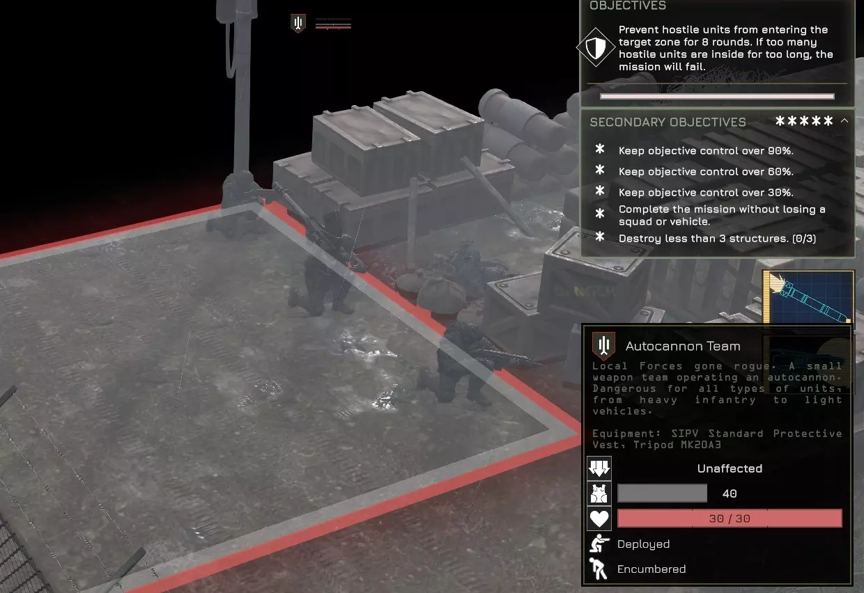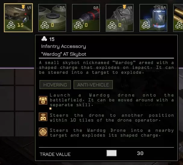 19) 指挥权 若你的指挥权已接近上限(100点),可以考虑消耗指挥权来招募小队长!(需先从黑市购买他们的档案)。否则,超出上限的指挥权将被浪费,因为无法突破最大值。 由于指挥权会影响战斗纪律,你可以将招募小队长的行动推迟到行动的最后一个任务之前进行。 额外提示:如果资金允许,建议同时购买两个步兵小队长的档案,而非逐个购买。这是因为一旦购买其中一个或两个,后续的购买成本将会上涨,因此从长远来看,同时购买的效率略高。 20) 可以使用反坦克无人机攻击车辆的后部 这比让小队推进去侧翼包抄车辆要安全得多,后者可能会使小队暴露在更多敌人面前。战犬AT空中机器人可在黑市购买。
