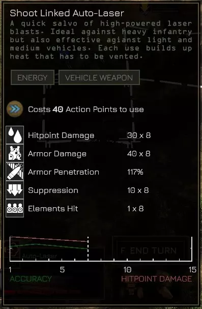 21) 狂暴效果在敌方空载卡车时触发 狂暴是查尔斯和雷努可通过SL晋升获得的能力,效果为每回合击杀敌人后获得+30行动点。该能力在摧毁空载载具(已卸载步兵的卡车)时也能激活!仅适用于敌方使用的载具,中立载具不计入在内。 22) 载具武器双联装 中型机甲可装备两门相同武器以实现双联装。这允许你同时发射两门火炮(即造成双倍伤害!),而仅消耗一门武器的行动点。 自动激光属性