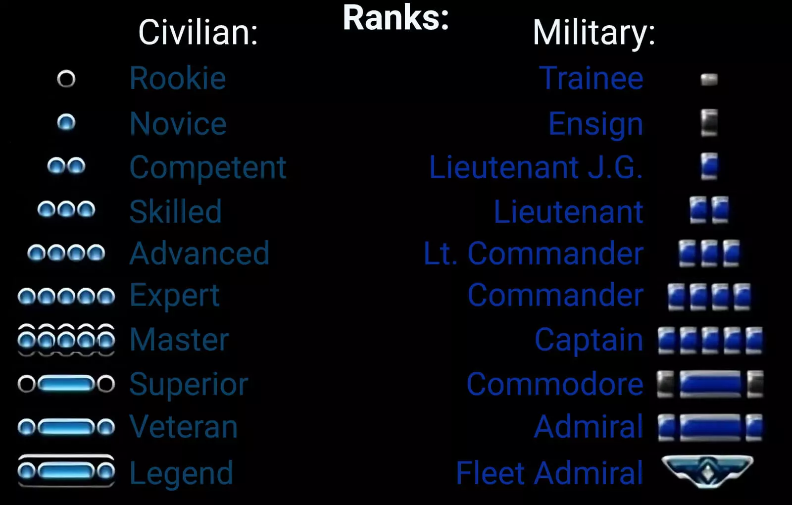 荣誉军团勋章 表彰卓越综合能力 达成最高军事与民事等级。 等级 游戏内等级完整列表: