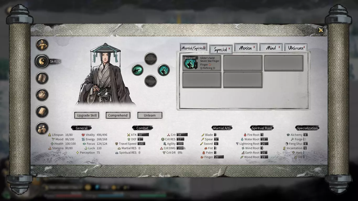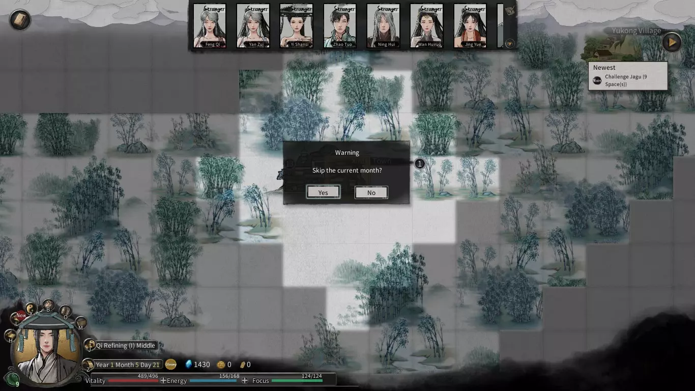 返回城镇休息,外出修炼提升等级,购买并装备新功法