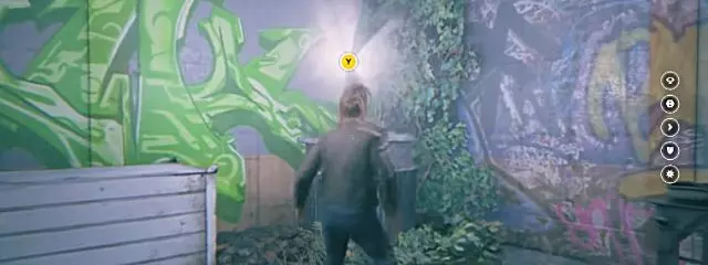 回到火车车厢上,跳向带有突出木板的车厢,再到一长串的铁路车厢。跃至带有木板斜坡的黄色车厢,然后跳上布满涂鸦的木质区域。 沿着走廊跑,从远处的窗户跳出到另一节火车车厢上。向右转到金属板屋顶,然后跳过围栏,落到一个有自行车的小院子区域。源头漂浮在中间的桌子旁。 叙事物品5:莫纳克内部通讯1(音频文件)