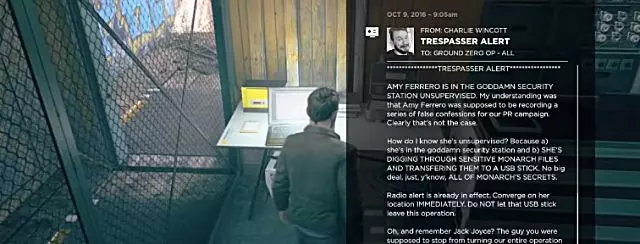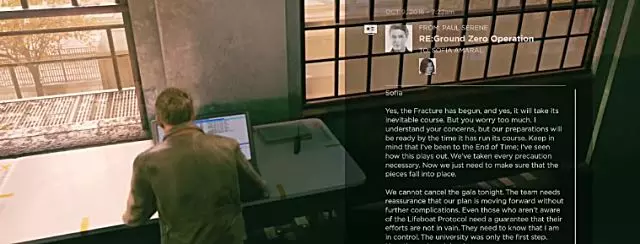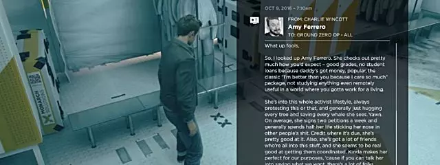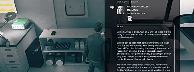 当你到达一个有艾米或出租车司机(取决于你在第一幕交叉点选择的选项)站立的房间时,拿起滴眼液瓶,这是第一个【情报】收集品。 假设你已收集到本幕之前的量子涟漪,或是第一幕中的两个量子涟漪,那么在你拿起该情报后,【Knowledge Is Power】成就将会解锁。 叙事物品4:零点行动(电子邮件)