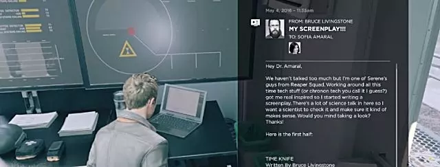 在与前一个物品完全相同的位置,只需走到莫纳克车辆的车门处,打开收音机就能听到这个音频文件。 叙事物品5:我的剧本!(电子邮件)
