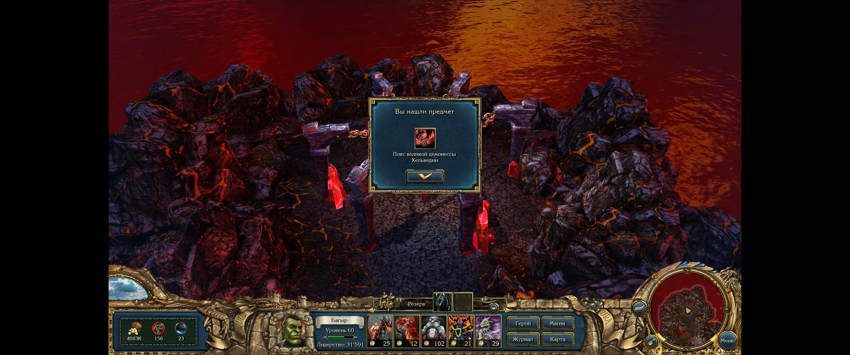 赫尔维迪亚大女妖的说明 地点:赫尔维迪亚,地图左上角的箱子 特性:在世界地图上+5%魔法恢复 士气:不增长。如果英雄的军队中不只有恶魔,每场战斗士气-1 获取方式:挖掘箱子