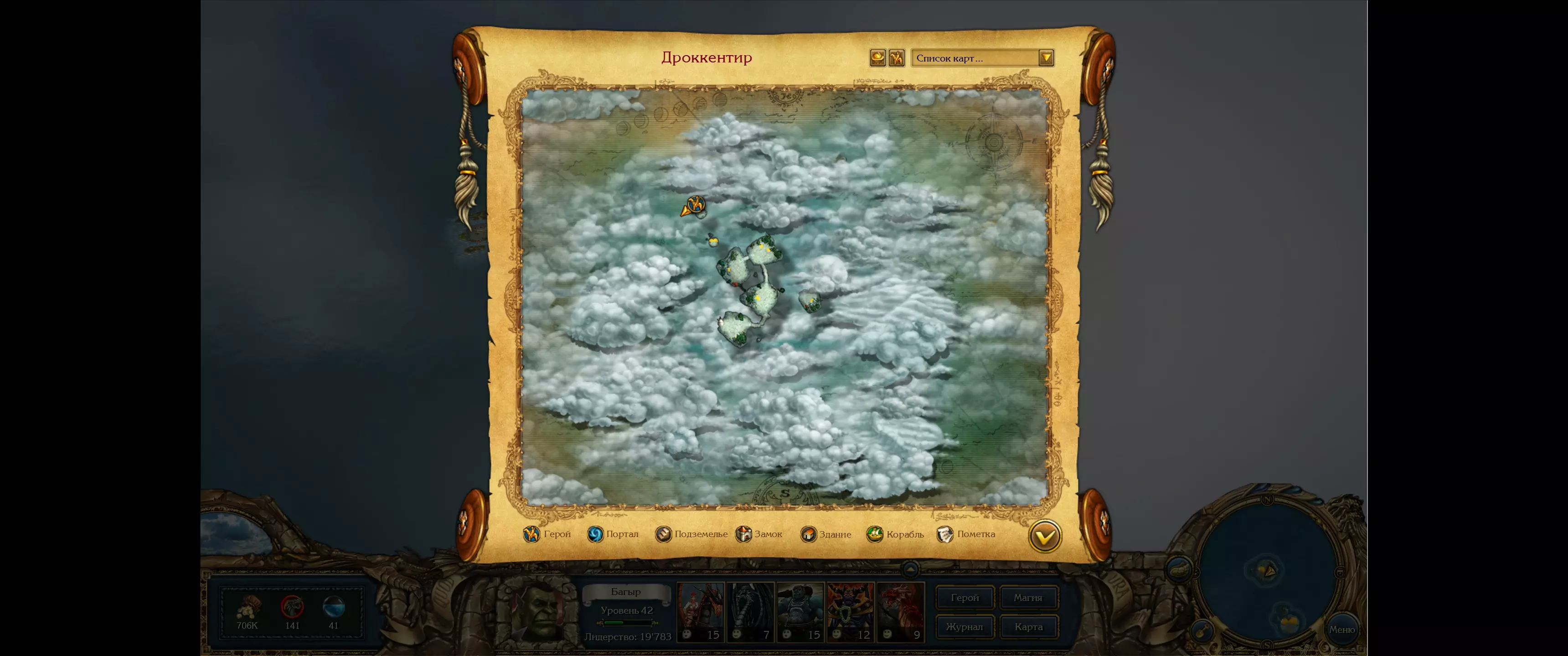 第一只巨龙卓肯提尔之眼 地点:卓肯提尔 特性:所有巨龙领导力-20%。每进行20场战斗可获得1-4个魔法水晶和1个魔法符文。 士气:无。 获取方式:在其中一个浮空岛屿上挖掘宝箱(见下方地图)。要前往卓肯提尔,英雄需要完成允许达伦班恩的地精乘坐热气球飞行的任务。完成该任务需要英雄等级不低于30级。