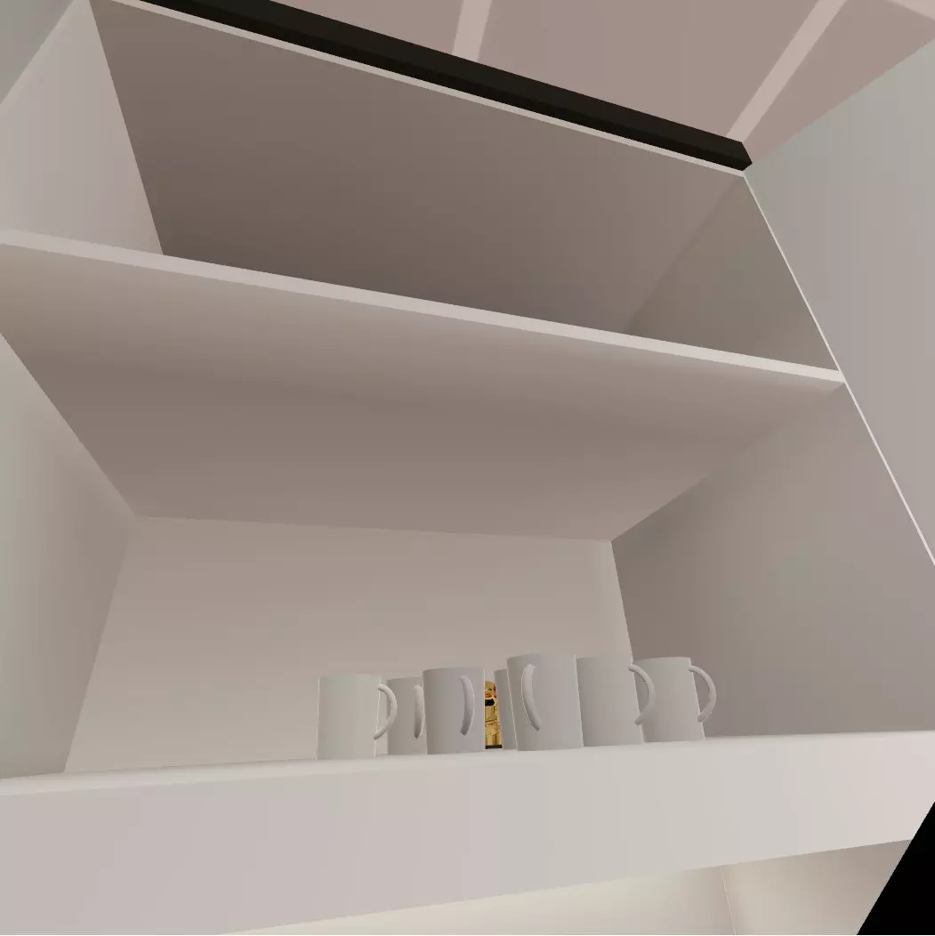 打开冰箱左侧的顶层橱柜,将几个马克杯推到一边就能找到收藏品。(从图片中可以看出,我找到它的时候已经进行了一番仔细搜索……)