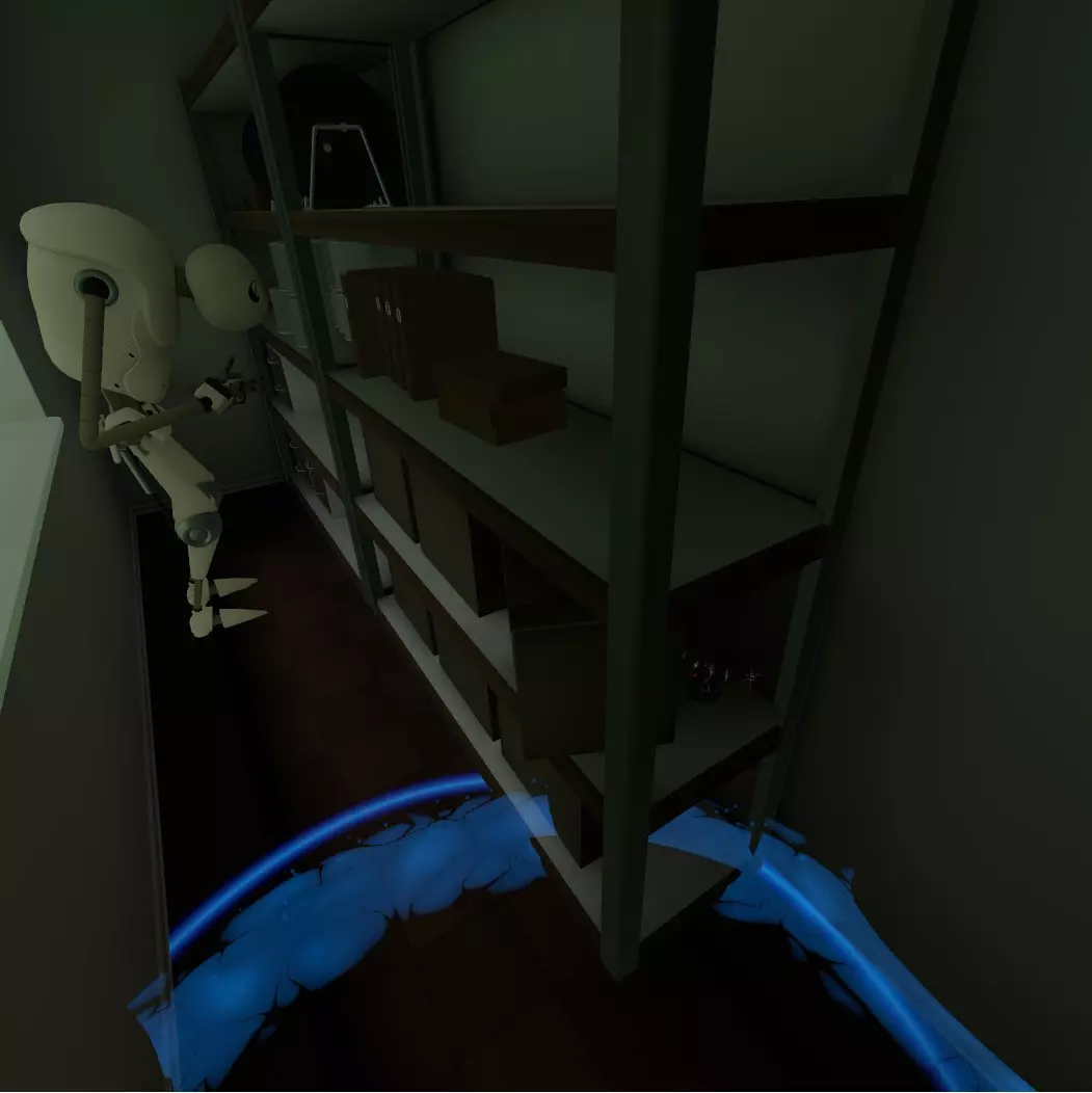 在右侧墙壁旁找到【垃圾桶】(你可以用来躲藏以避开机器人)。打开它,奖杯就在前右角。