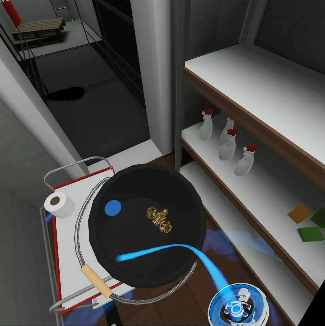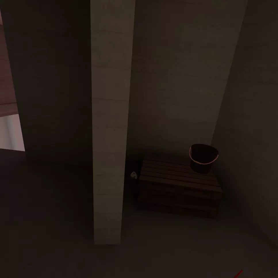 继续按正常路线前进。当你遇到第二个守卫时,向左前往储物间/清洁工具间。顶层架子上会有一个翻倒的黑色桶。