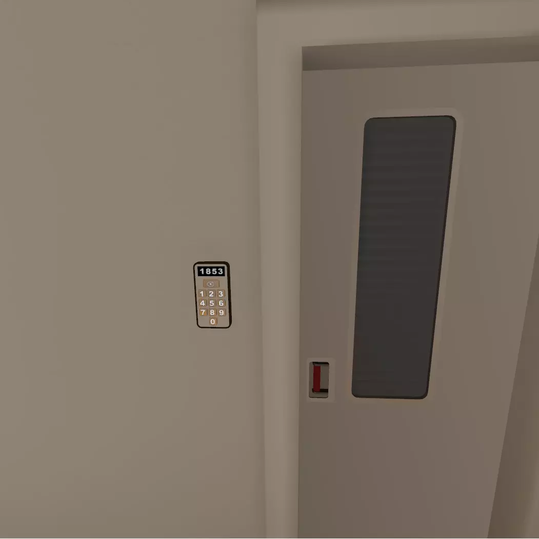 找到艾普丽尔的钥匙卡后,在进入展示厅电梯前停下。这个房间的后角有另一个壁橱,用4位密码锁着。