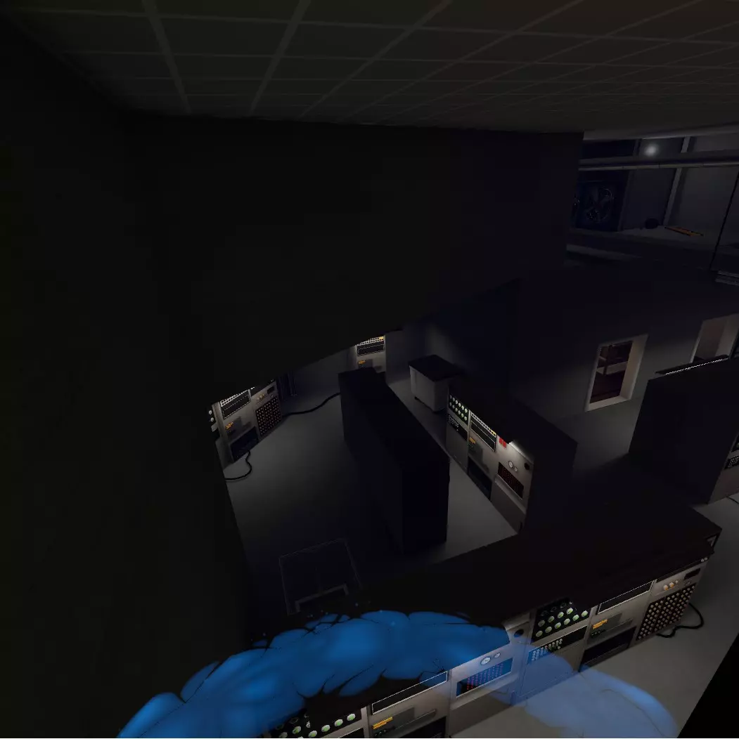 说来也怪,我把这些区域的每一层都检查了一遍,抱着一丝它可能真的会出现的希望。可笑的是,这个想法最终竟然成真了。当你拿到5级门禁卡后,进入档案部门并前往5级区域。到达这里后,寻找一个标有“机器人”的卫生间。