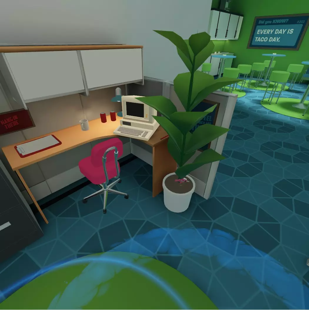到达这里后,找到粉色的办公椅,然后在植物中搜寻你的奖励。