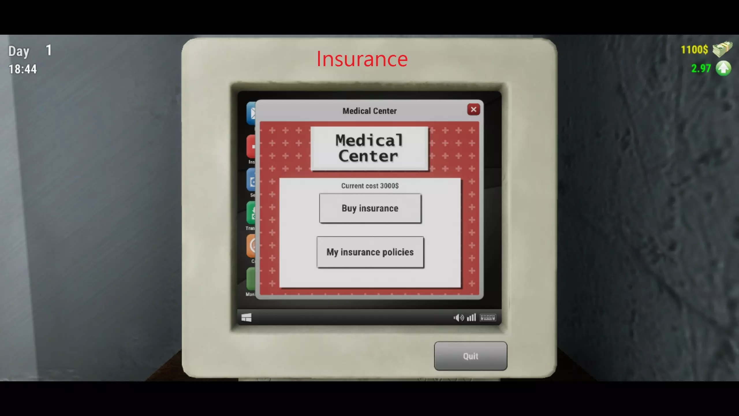 保险(红十字图标):你可以在这里购买保险。每份保单价格为3000。你需要签署游戏提供的合同。