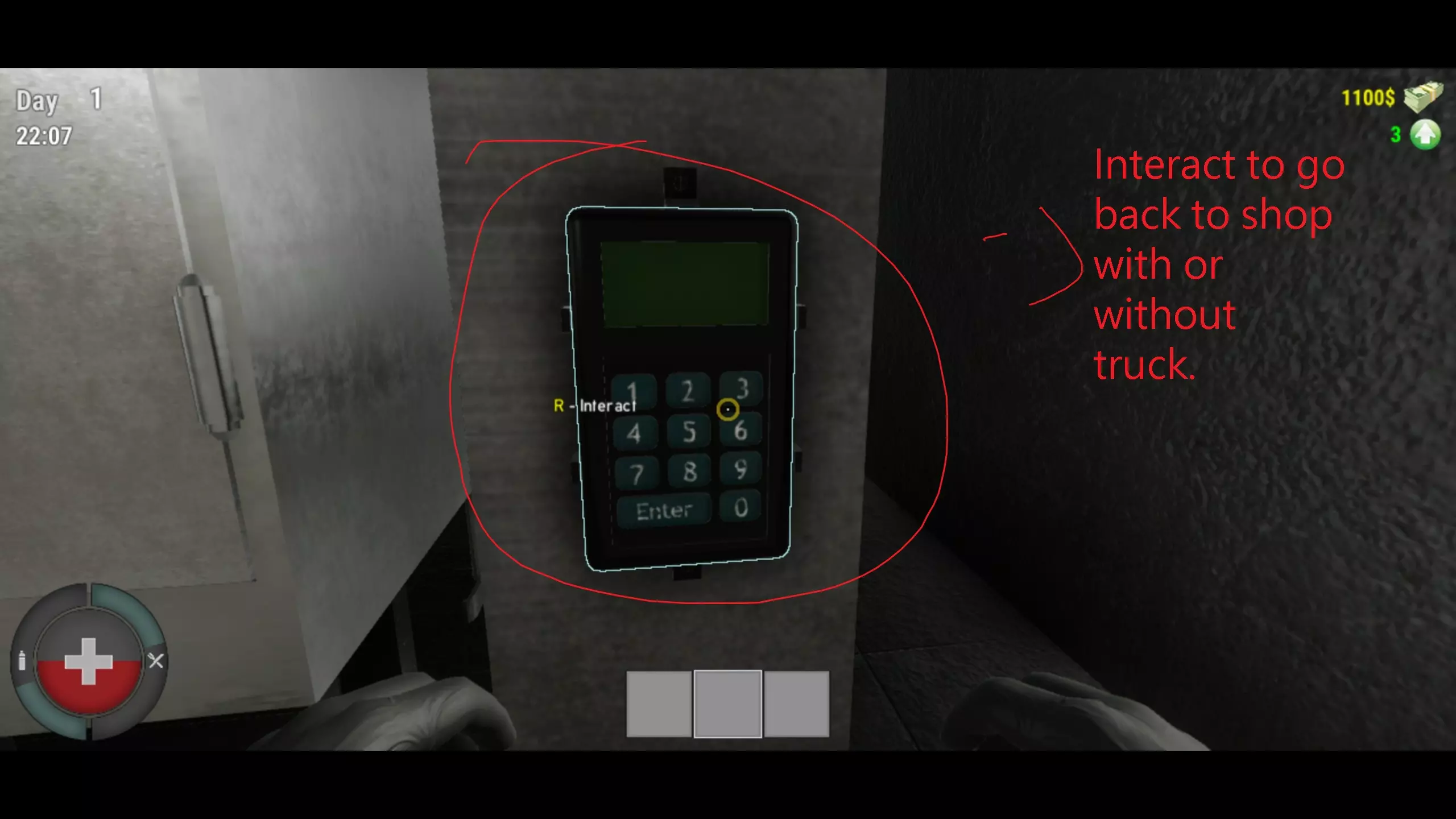 现在这条走廊里只有一个房间,那就是杰克的商店。在这里你可以找到家具、工具、枪支、电脑零件、清洁用品等。购买物品时,走到物品旁按住R键,点击将其加入购物篮。继续这样操作,直到你对购物篮里的物品满意为止。然后前往收银台,走到信用卡扫描器旁按R键,在这里你可以清空购物篮并为物品付款。购买的物品会出现在标有“Jack's Shop”牌子下方的棕色桌子上。 好了,游戏的初始部分就介绍完了!继续赚钱并购买所有必要的物品吧。 希望你玩得开心! 提示与技巧: 1. 每天你都能获得物品的特价优惠。这能让你低买高卖,更容易获得利润。 21. 你可以购买喷雾瓶并用它来清洁窗户。如果看到窗户上有褐色污渍,就可以拿起喷雾瓶开始清洁。 2. 每5天,黑手党会来到你的店铺周围扫射。这会导致你的声誉下降。他们还会试图打破你的窗户。如果窗户被打破,他们会向你开枪并试图杀死你。你需要修理窗户并恢复生命值。购买枪支和医疗保险有助于抵御这些黑手党袭击。 3. 你可以通过购买窗户清洁剂、步枪弹药或左轮手枪弹药来为枪支和喷雾瓶重新装填。将物品放入 inventory(物品栏),然后右键点击武器或喷雾瓶即可。 4. 你可以在商店里出售不需要的武器。商店里有一个秤,把物品放在上面就可以出售。6. 按ESC键可调整鼠标灵敏度,直至感觉舒适为止。 7. 若游戏卡顿,可按ESC键并调整分辨率。 8. 你可以关闭仓库和拖车的灯光,然后购买手电筒和电池来照明,这样能节省电费。 9. 按ESC键可重新映射按键,确保要映射的按键未被占用。 10. 你可以购买自动售货机,让它自动向顾客出售物品,无需手动将商品递给他们。 11. 遇到大麻烦了?没东西卖又没钱?可以贷款!但一定要记得还款,否则麻烦会更大。购买扫描仪以检查产品的过期日期! 13. 若要给油箱加油,需前往仓库并进入走廊。继续前进,你会看到一台自动售货机!拿起你的油箱并将其放在地上。现在按V键拿起油箱并将其放入快捷栏。前往自动售货机,查看左侧的空位。瞄准空位底部,你会看到它被高亮显示并有互动选项。按R键,你的油箱就准备好加注燃油了。前往自动售货机的旋钮处,它决定要向油箱中加入多少燃油。记住每升燃油5美元。右侧按钮用于将燃油注入油箱。这就是给油箱加油的方法。 14. 将物品放入冰箱可延长其新鲜度。如果饮料和食物过期,顾客会降低你的声誉。我建议每次购买10件商品,以保持食物的良好新鲜度。