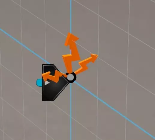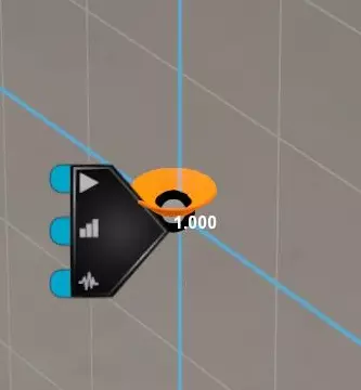力元素会沿指向方向推动物体。 若接收到的信号为负值,力将沿相反方向作用。 若力引脚未连接,力默认值为0。 力会施加于已连接的物体,若未连接物体,则会自动选择一个物体。 激光发射器