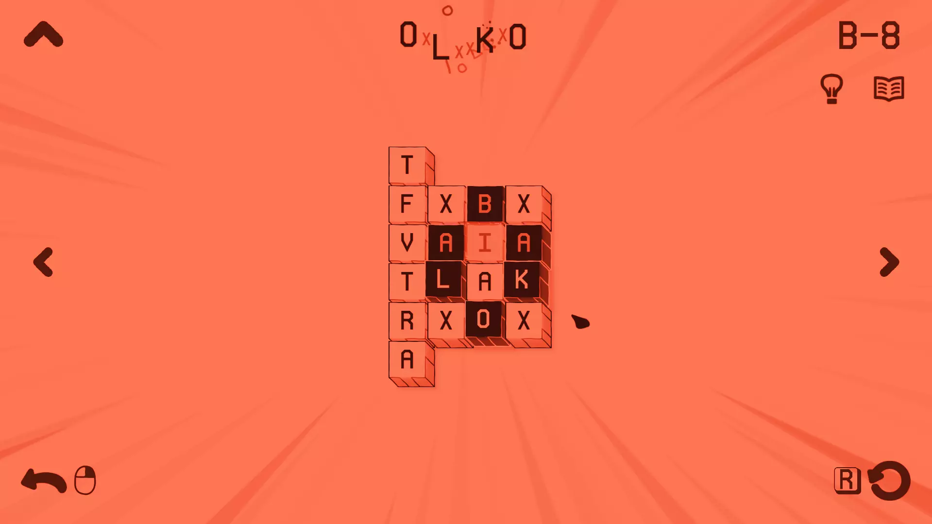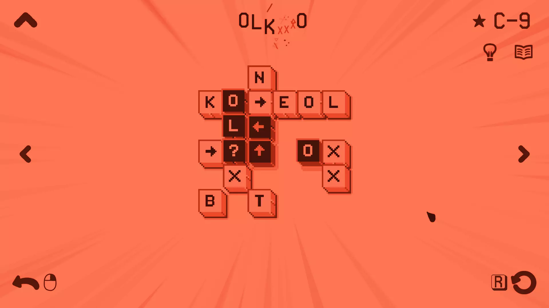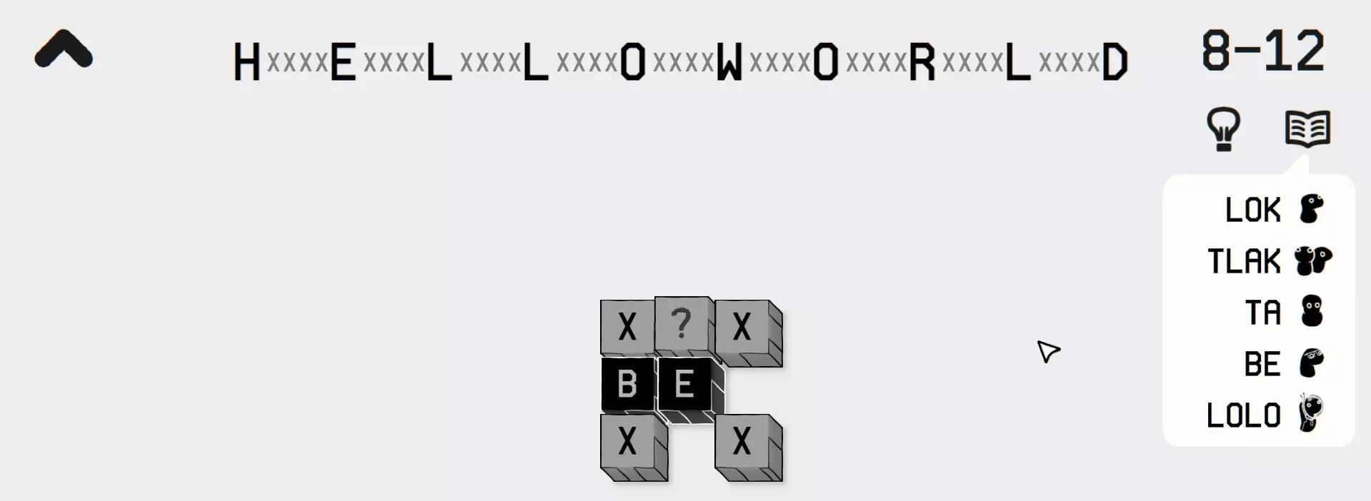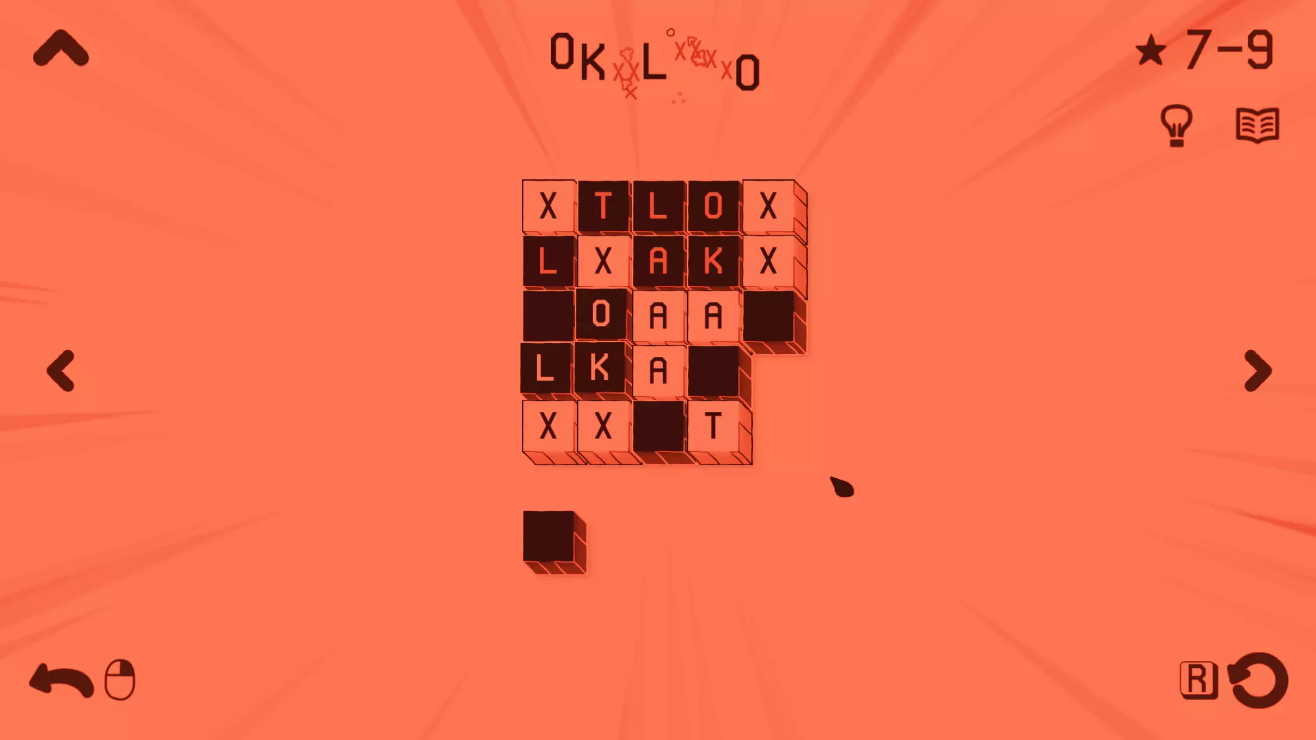 过载 拼出一个特别长的单词 在此处,你需要找到一个包含【X】循环的关卡,该循环能让你不断循环,通过重复循环模式来拼出任意长度的单词。 你可以在4-12关卡尝试。