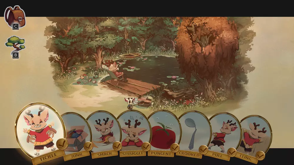 【猛击】- 在市中心以南的市场里,多次击打西瓜。 【多汁】- 仔细查看图书馆角落里从左下数第二个书架。 【战斗】- 当你在寻找罗洛时,和图书馆里的卡多对话。 【挣扎】- 在与小混混伊吉和 Tud 的冲突解决后,你会获得这个魅力。 【打破】- 在第三章再次与弗拉泰利对话时,分发果酱。 【拒绝】- 当想和贝克一起去树屋时,会得知奶奶的秘密。 【刺鼻】- 当你和贝克在卧室时,可以在那里四处看看。查看地上的花。哭泣 - 和罗洛争吵后,你回到了卧室 - 查看左下角的箱子,把里面滚出来的足球踢几下。 接受 - 回到床上,当奶奶叫醒你并和她交谈时,你会获得这个饰品。