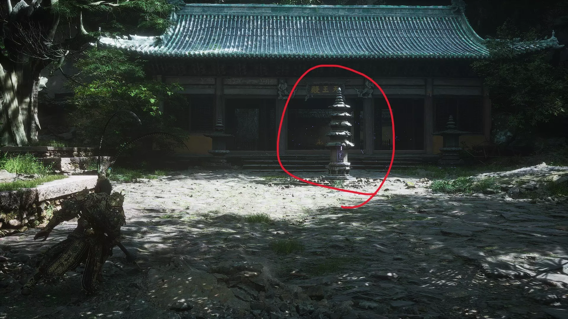 要激活它,需要收集6个【佛眼】,这些佛眼散落在【石将军】尸体附近。此外,要激活这个 Boss,还需靠近【石将军】的尸体。