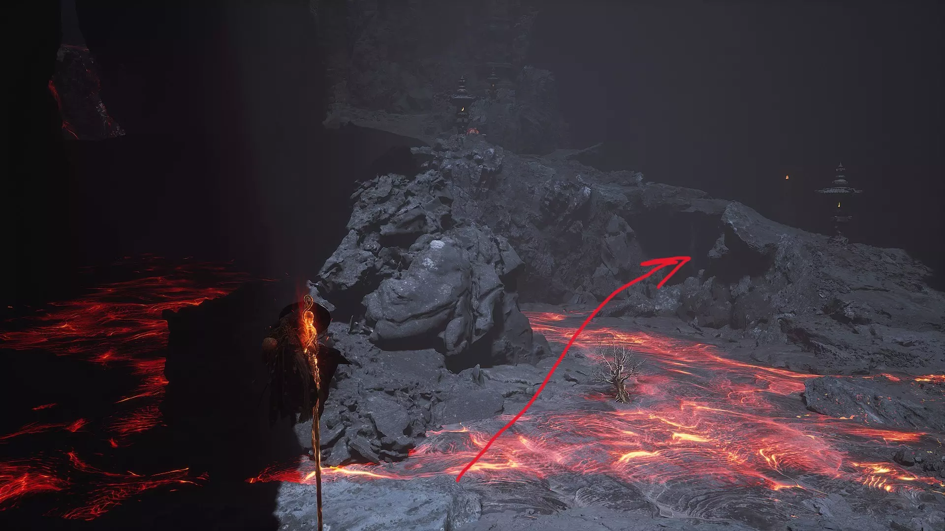 建议装备【火焰披风】这件道具,这样就能在岩浆上行走了。它可以在第一章击败隐藏 boss【镇元子大仙】后获得。