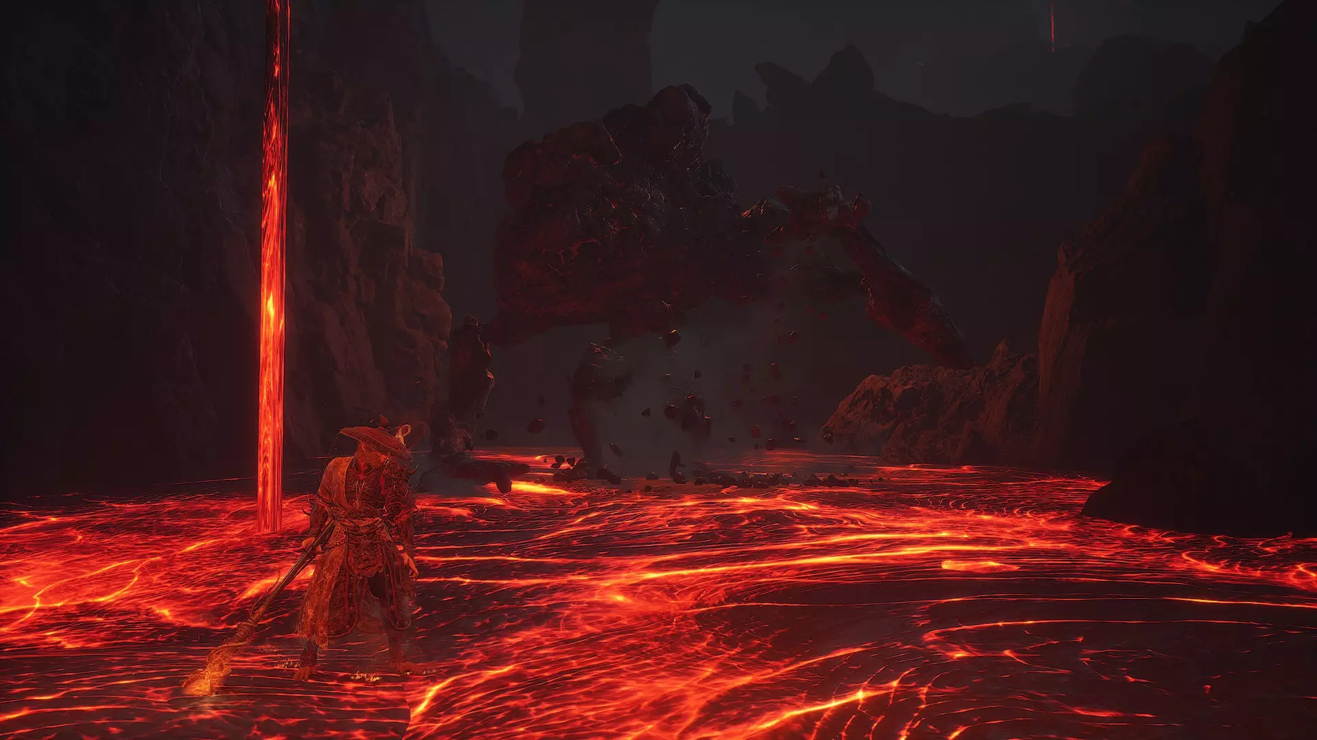 火焰山守护者与因焉鱼。这个 boss 非常帅气,染色机制令人眼前一亮。boss 分为两个阶段,第一阶段是击败它本体,第二阶段是击败它的鱼。