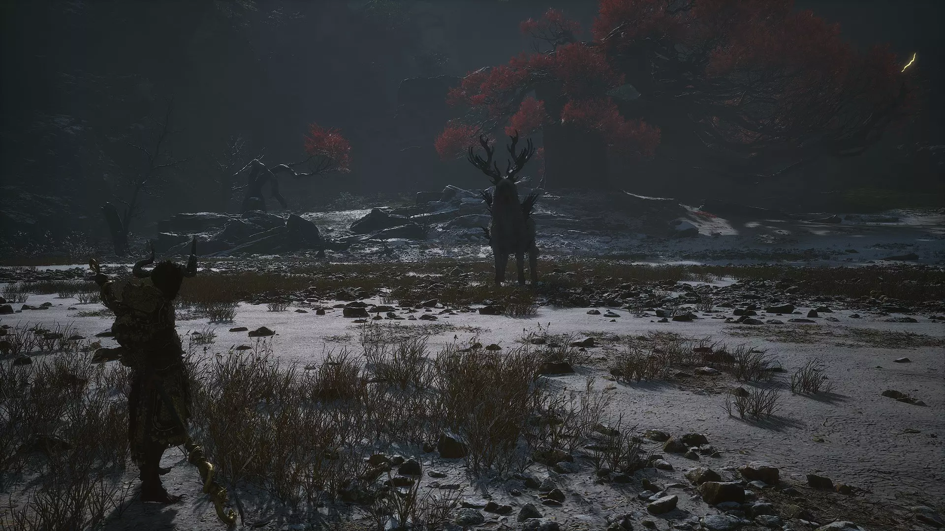 鹿 - 云跃者。前往有红色树木的区域。
