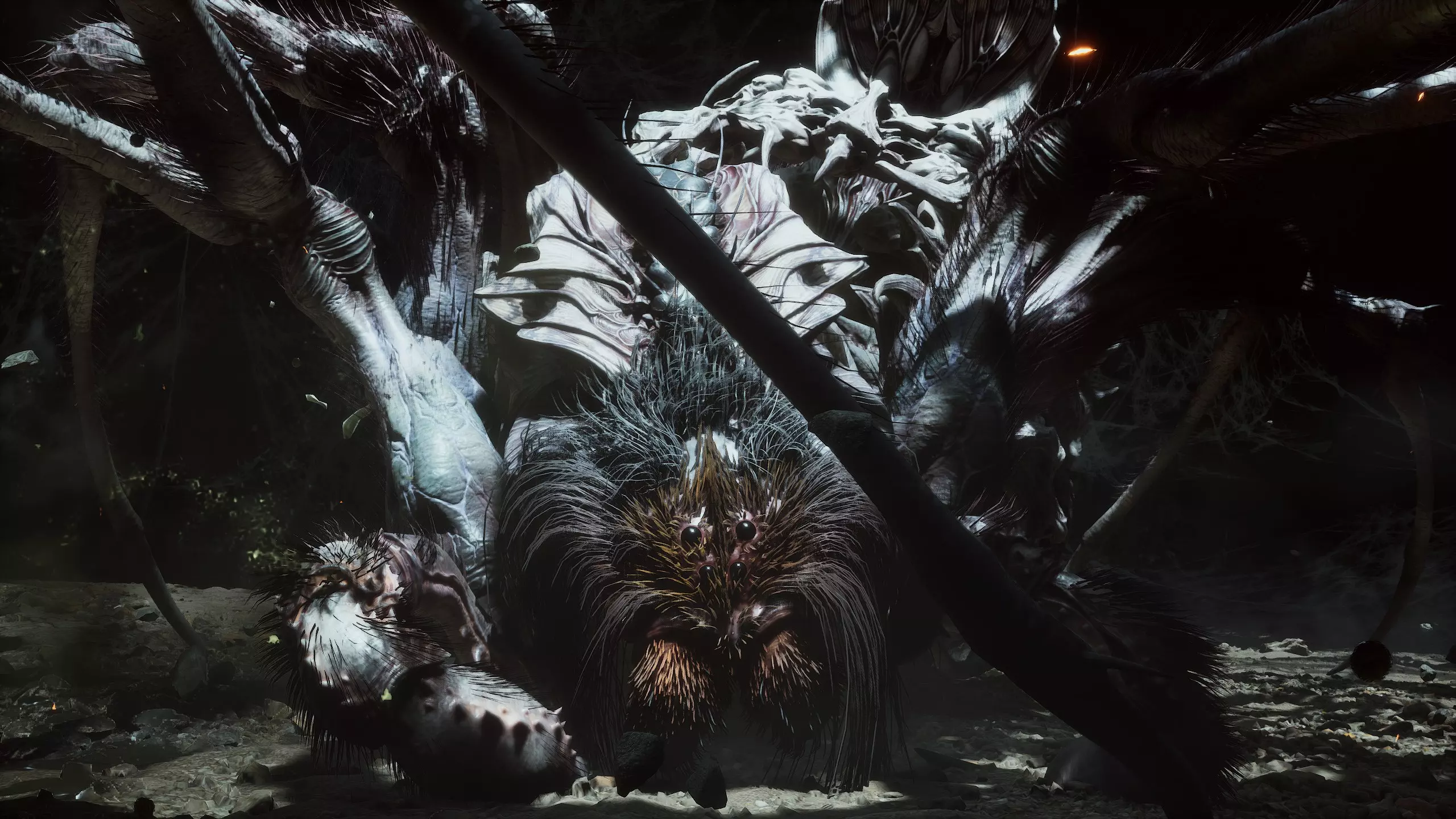 粉蜘蛛 击败野猪王肯特后,继续沿着区域前进寻找它,很快就会触发一段过场动画,随后将与这位蜘蛛老妪展开战斗。