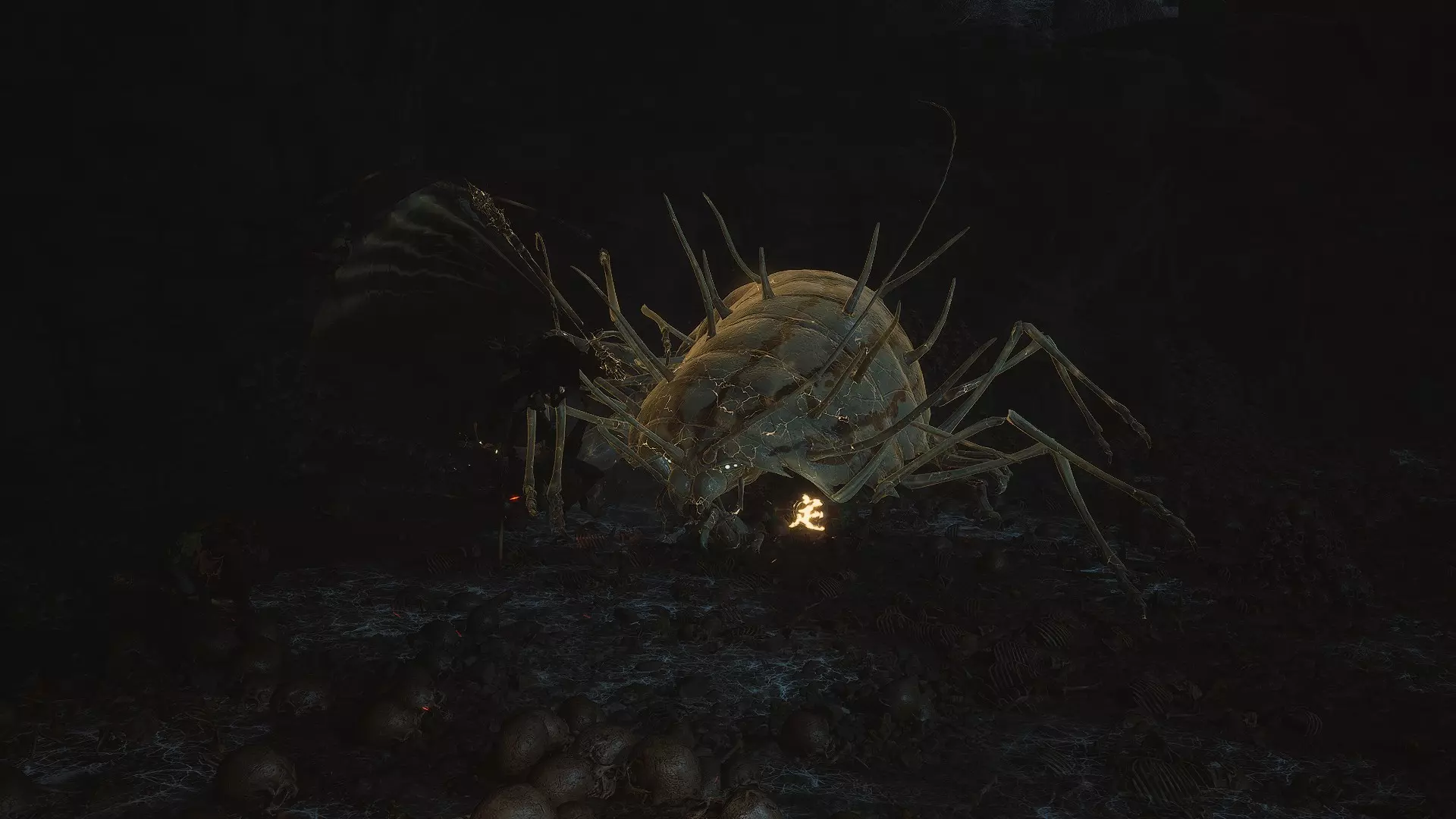 蜈蚣精 继续沿着该区域往下走,你一定会遇到一个中间有一堆骨头的大型竞技场,这个 Boss 就在那里。