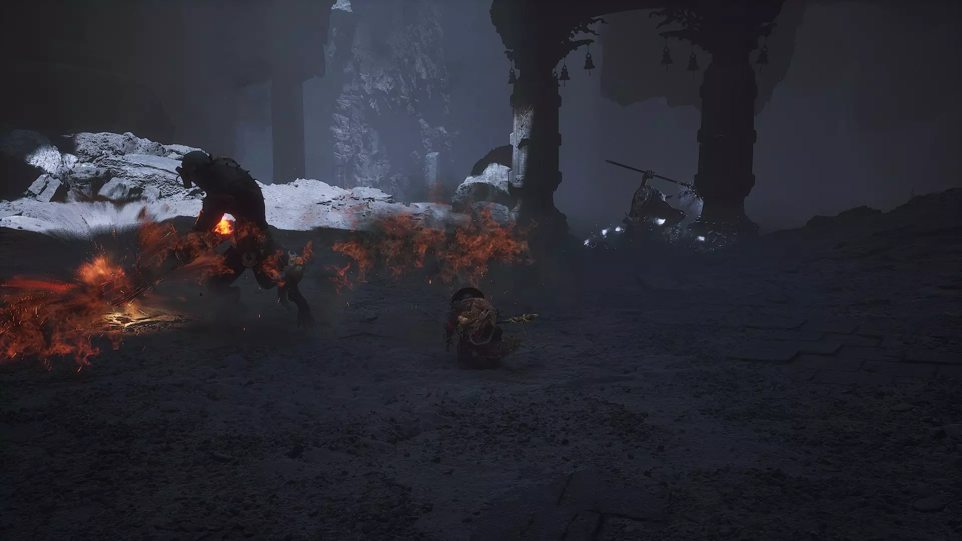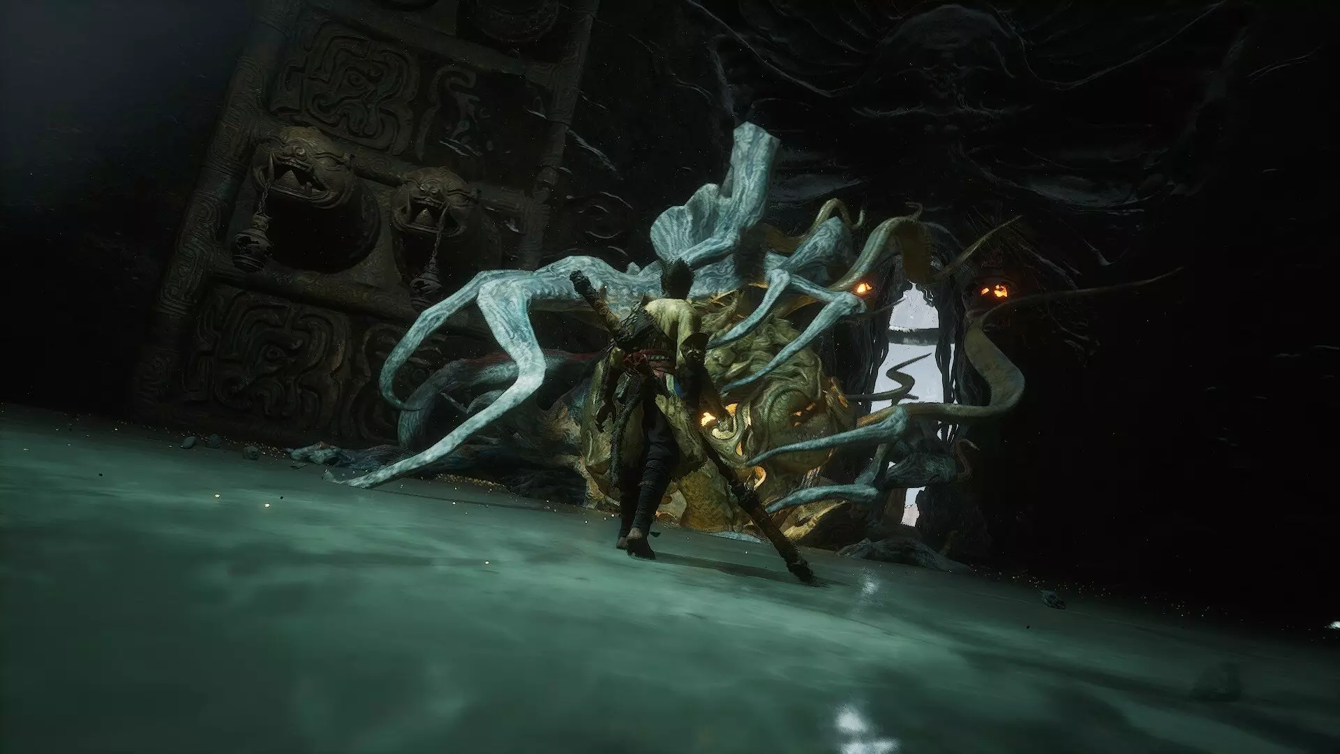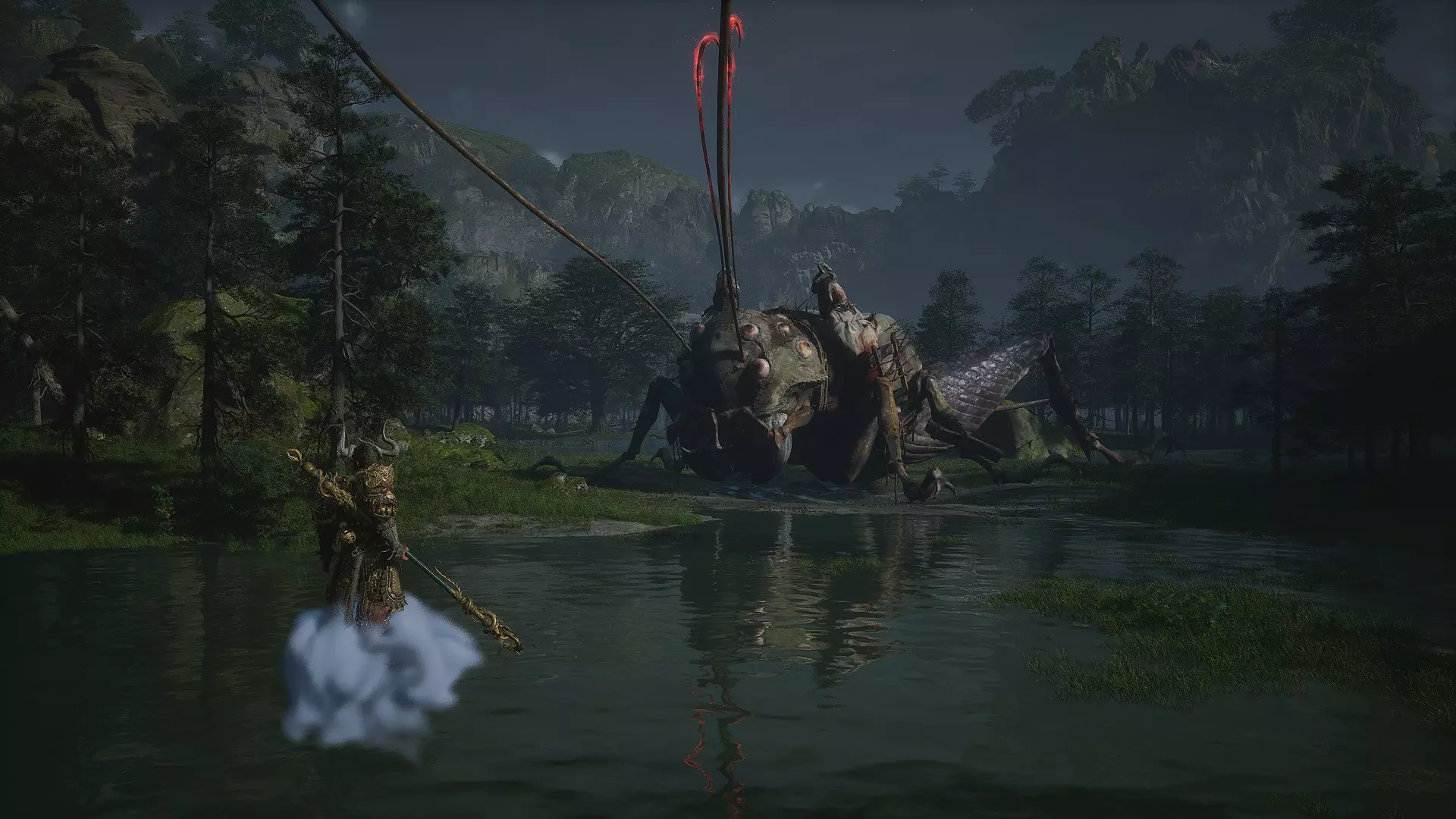 尊敬的金池长老(隐藏Boss):在该区域击败“水怪”后,向左进入洞穴(或岩壁上的洞口),会遇到铃铛和挂在树上的灵魂。需要注意的是,在此之前你必须已经敲响过另外两个铃铛。