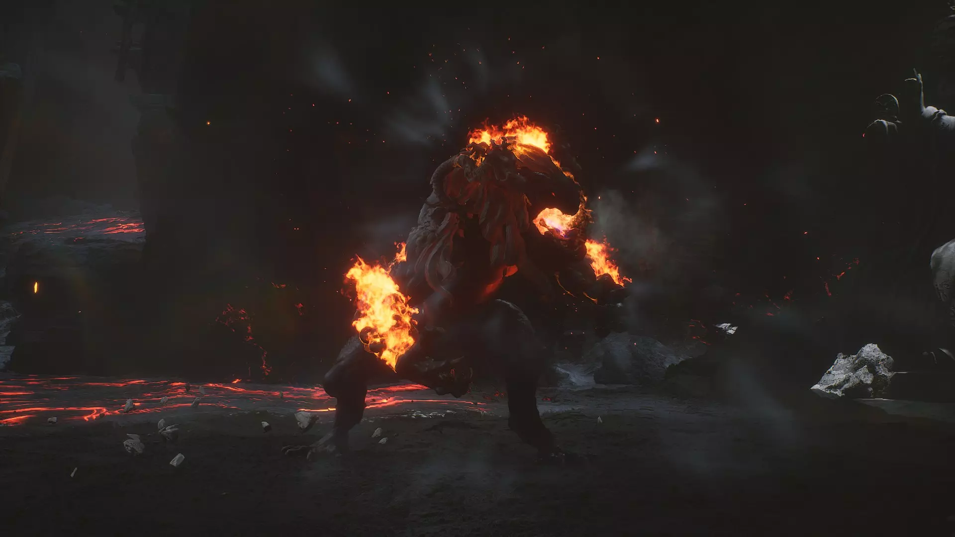 火焰之母(新区域):在新区域的下一个 Boss,继续前进,你会看到地面上有发光的凹坑,与它互动即可。