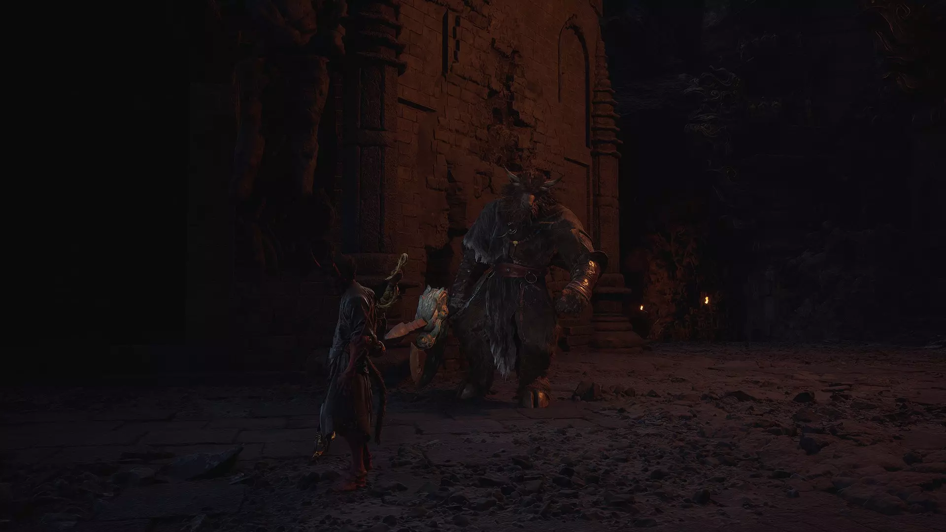 持白斧的战士是第一个 Boss,无法跳过,击败他后会成为友好 NPC。