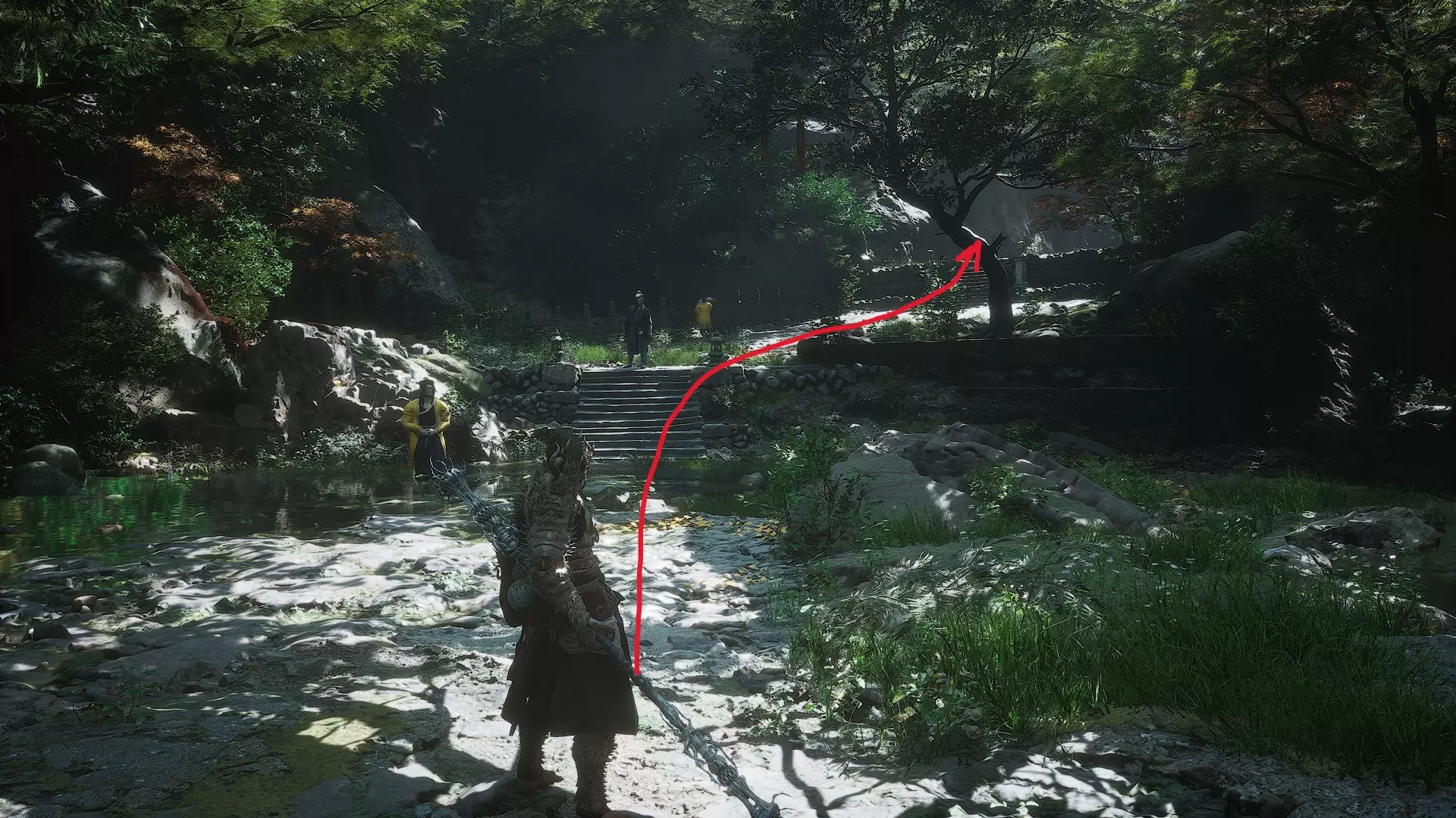 重要提示:当你离开“林秀慈” boss arena 并与马交谈后,不要错过左侧的洞穴,这样你将开启一个包含 5 个章节的任务线。有一个容易被忽略的Boss【豹力骨兰】(我就错过了),在开启【竹林→蛇径】祭坛后,需要从祭坛左侧跳过石头,沿着河流向上走。