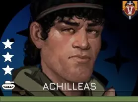 辛格是一个非常简单的小队领袖。他希望拥有大量的小队成员,并且不想失去他们。他的初始晋升会根据小队成员数量给予加成:当成员超过5人时,每多1人,精准度和纪律性各+4;当成员少于5人时,每少1人,精准度和纪律性各-4。作为1级晋升奖励,他的步枪压制火力获得大幅加成,这意味着你不会因为缺少特殊武器而感到太过困扰。总的来说,他是一个非常优秀、补给效率高的步枪小队,通常能在战场上发挥重要作用。基础步枪小队 晋升: 【人多势众】- 初始 - 命中率/驱散效果随小队规模提升 【压制火力】- 1级 - 小队武器造成的压制效果提升150% 【这是我的步枪】- 2级 - 小队武器补给成本降低50% 【跳开手榴弹】- 3级 - 敌方范围攻击仅命中1名小队成员 【火力线】- 4级 - 未装备特殊武器时,连续射击的行动点消耗减少10 【加固】- 3级 - 掩护等级+1,在重型掩护中无效 步兵武器:你拥有的最佳步枪 步兵特殊装备:无 步兵护甲:任何无负重的护甲 配件:弹匣袋、烟雾手榴弹或一次性反坦克武器 小队成员:+8 这个小队的配置相当明显。其初始晋升意味着需要一支大规模的小队。像【跳雷】和【加固】这类技能能让他保持大规模小队。【这是我的步枪】技能可降低部署大规模小队的成本,而【火力线】和【压制火力】能让你充分发挥9支步枪的威力。如果你有多余的PP,使用【增益】或【增援】来提升他的生存能力,或者用【稳定射击】在坚守阵地时提高精准度,都是不错的选择。 阿基琉斯·凯努 - ✮✮✮ - 第五坦克编队
