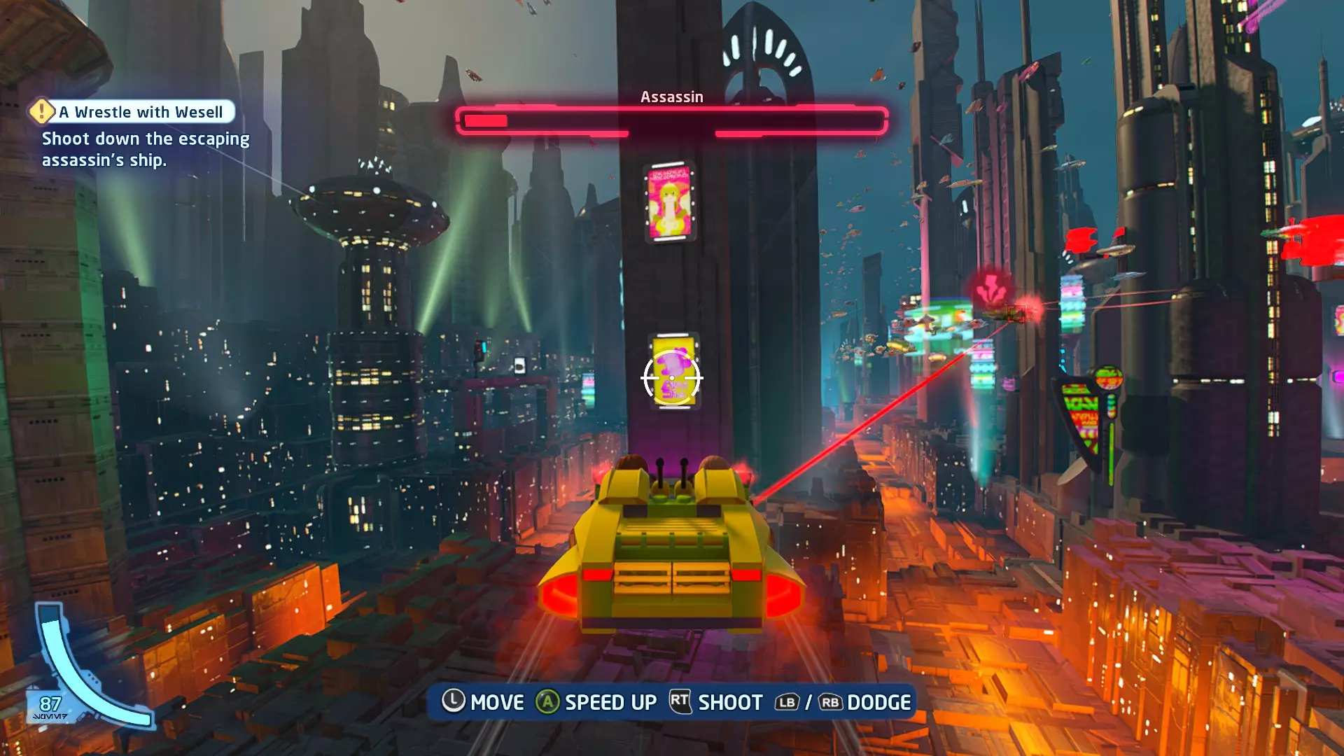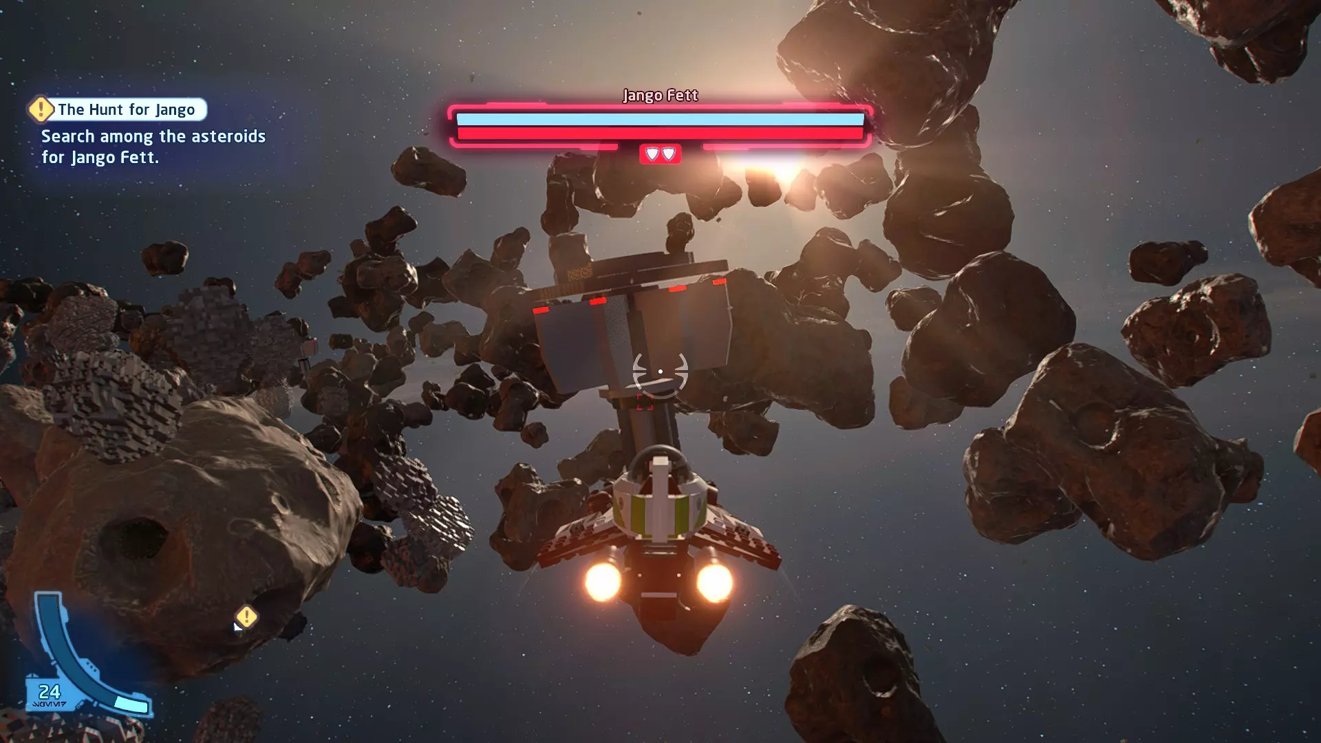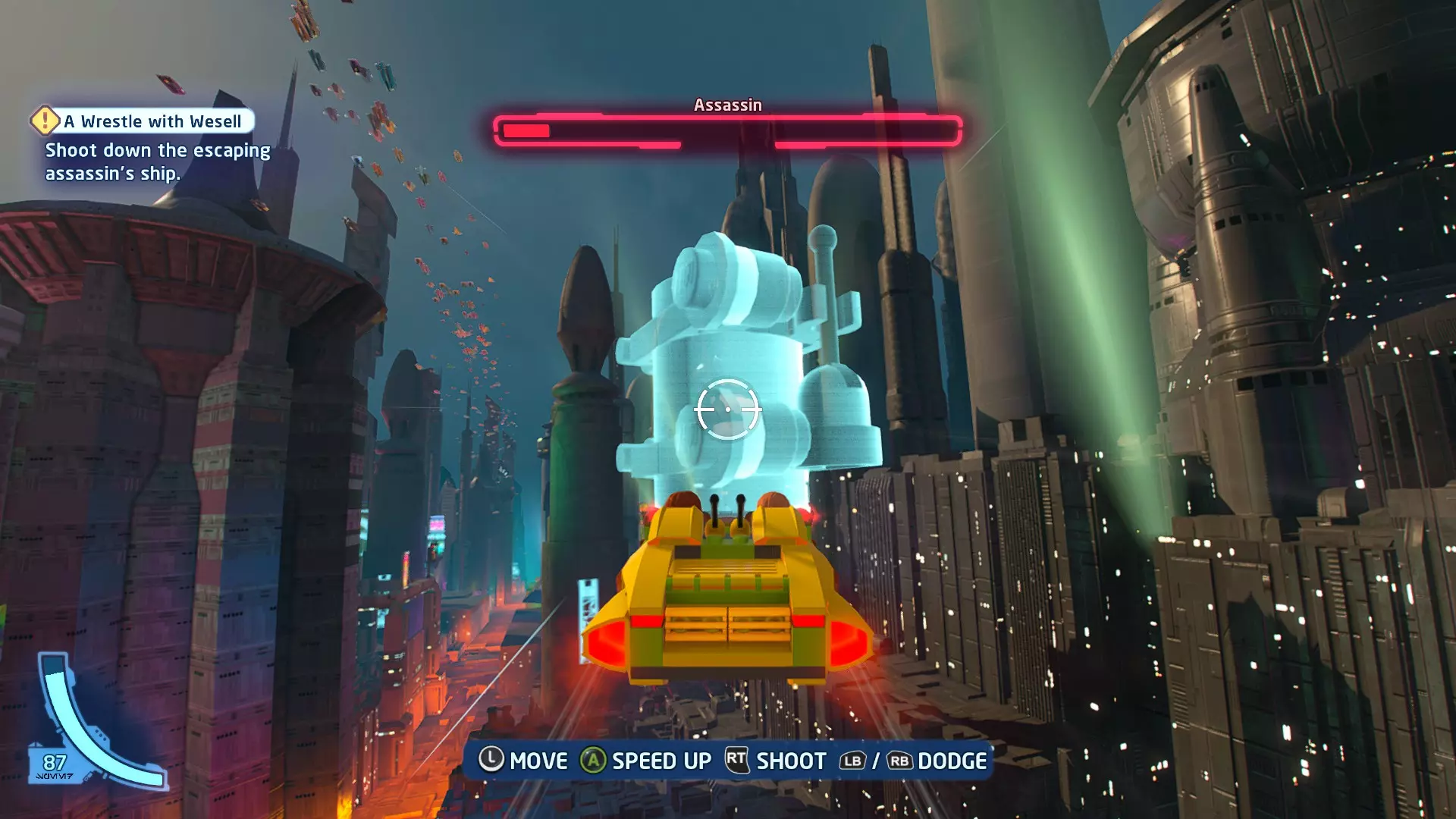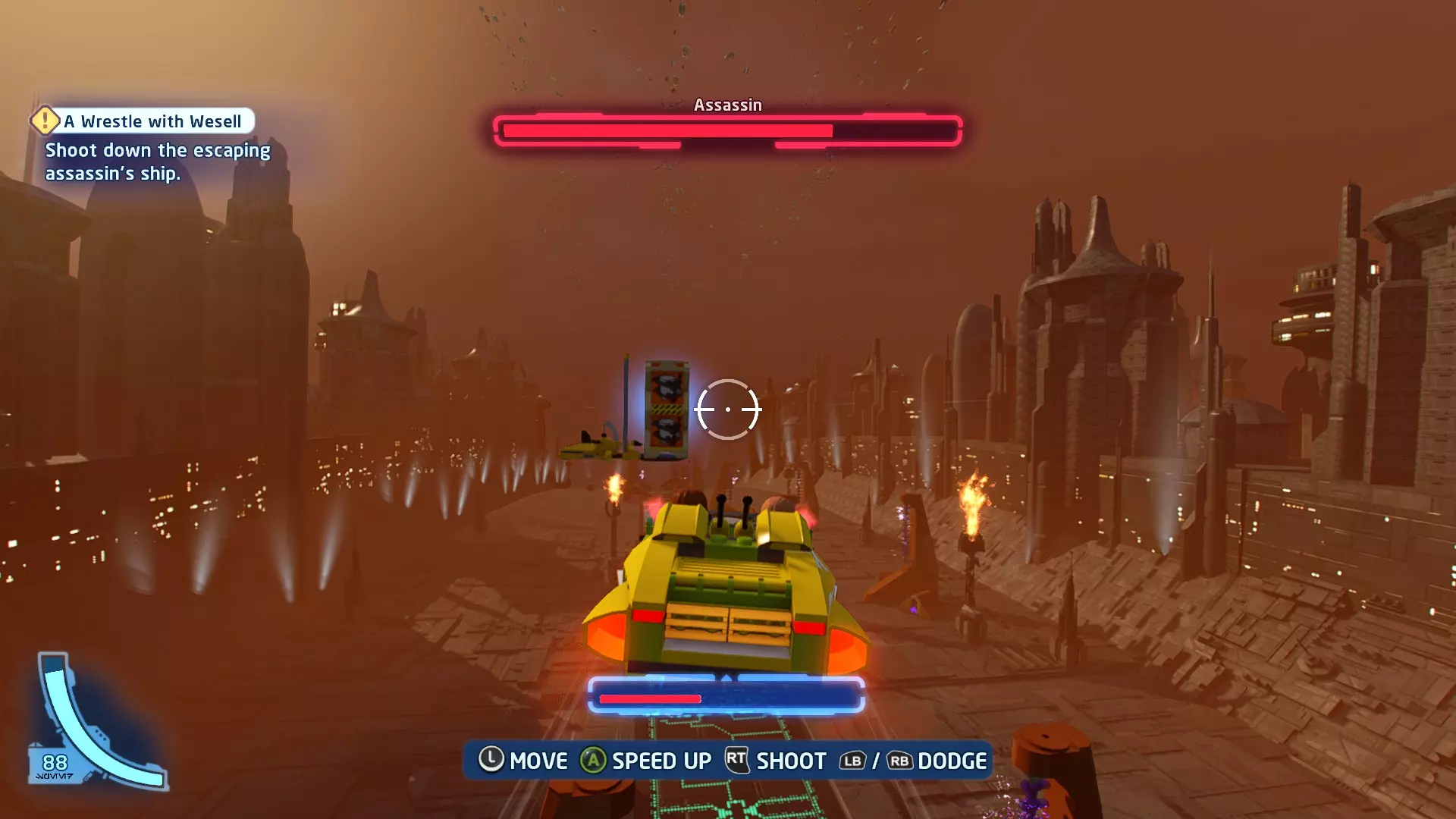 你可以在路径右侧的一些蒸汽喷口上方找到这个迷你套件。射击它即可收集。 微型飞船:抵抗组织Y翼(微型) 一次跳跃 - 关卡挑战 挑战1 - 锁定解除 详情:连续3次避免被锁定
