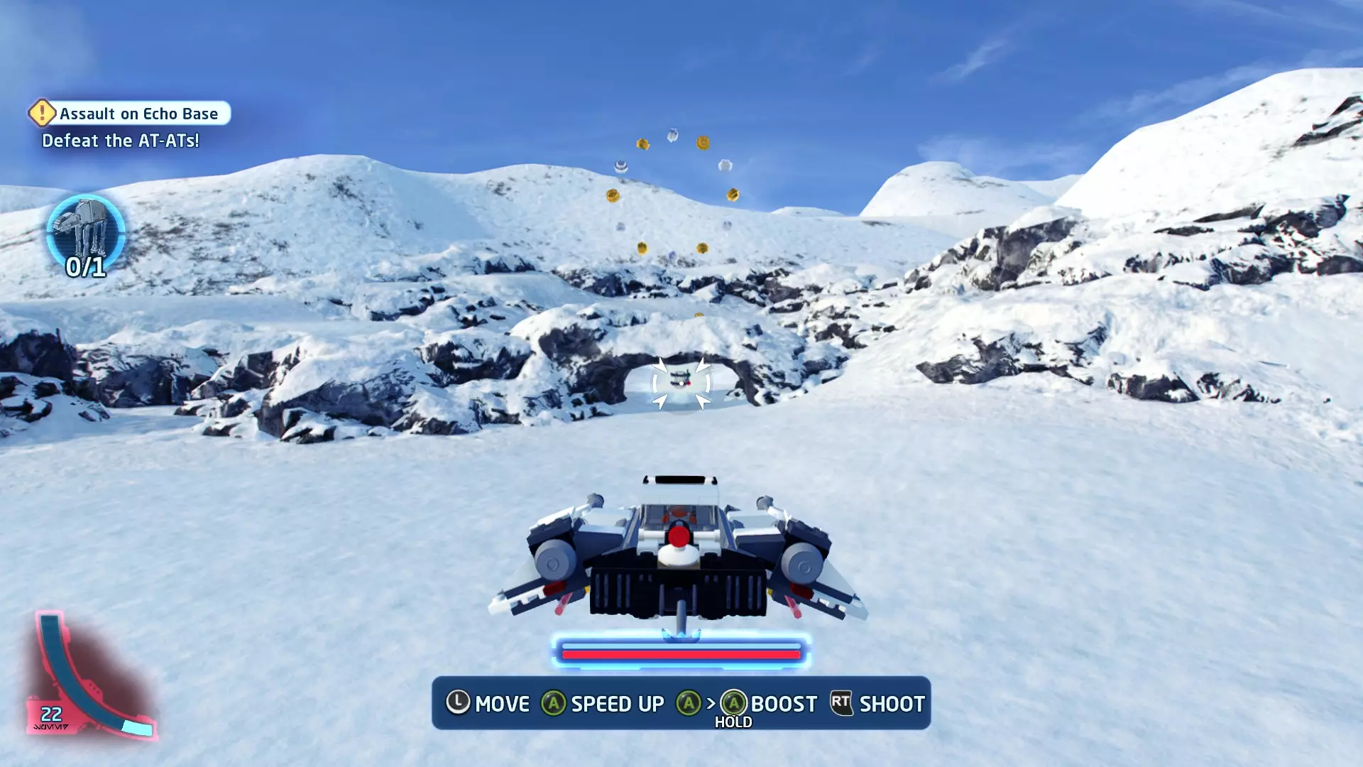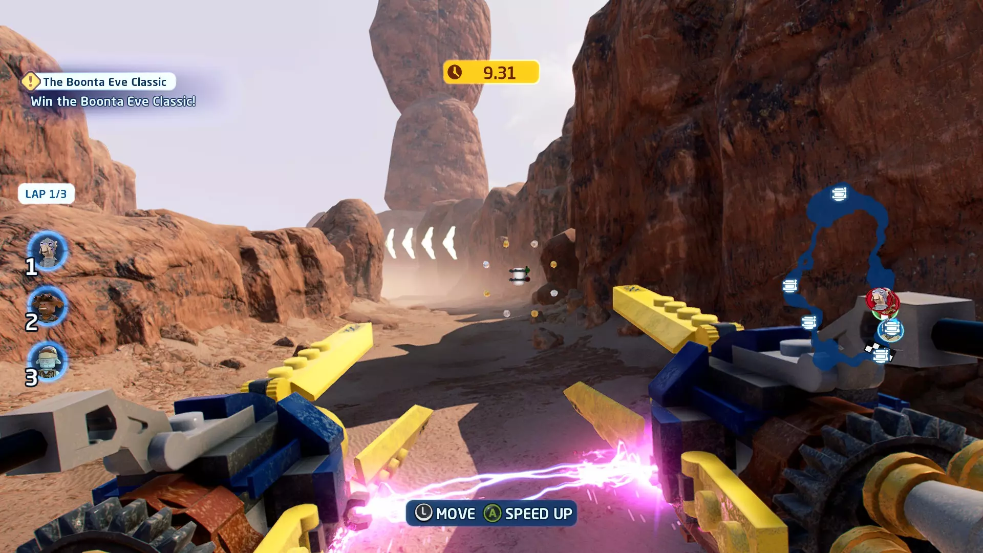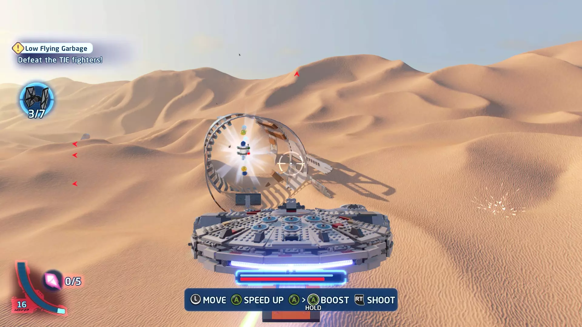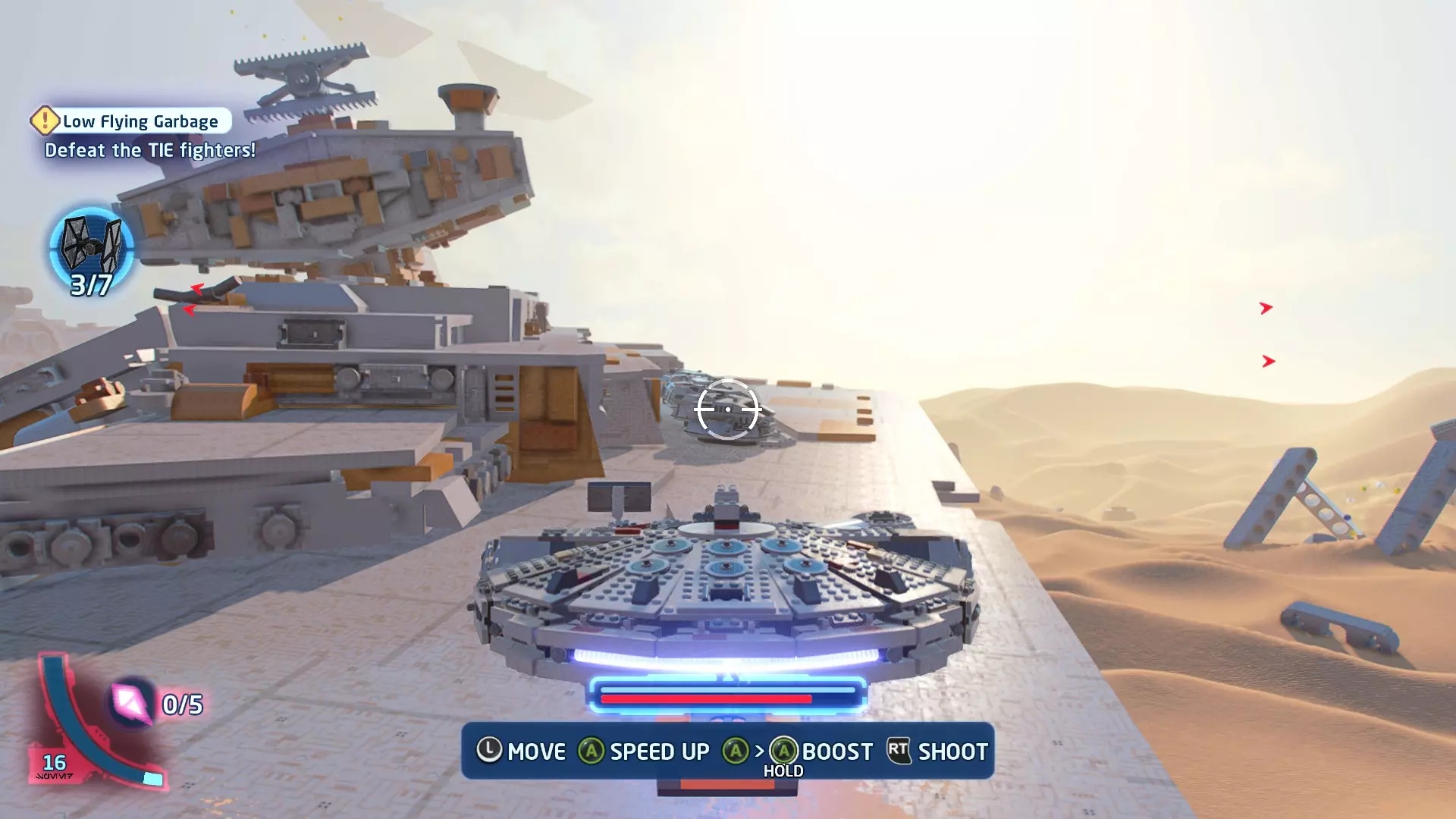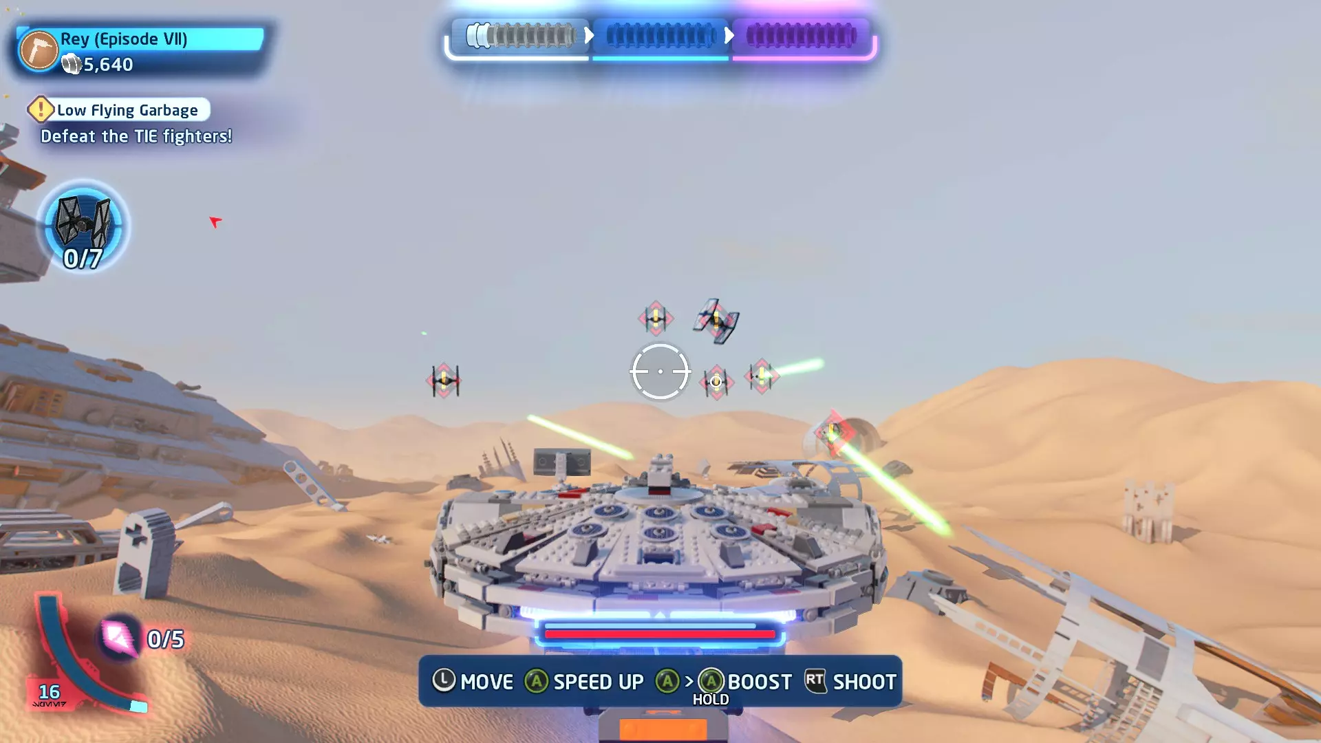 一架TIE战斗机将会出现并开始向你射击。摧毁TIE战斗机即可获得这个迷你套件。 微型飞船:贝斯通遗产(微型) 它们现在会飞了!- 关卡挑战 挑战1 - 当踏速车飞起来的时候! 详情:摧毁空中的踏速车