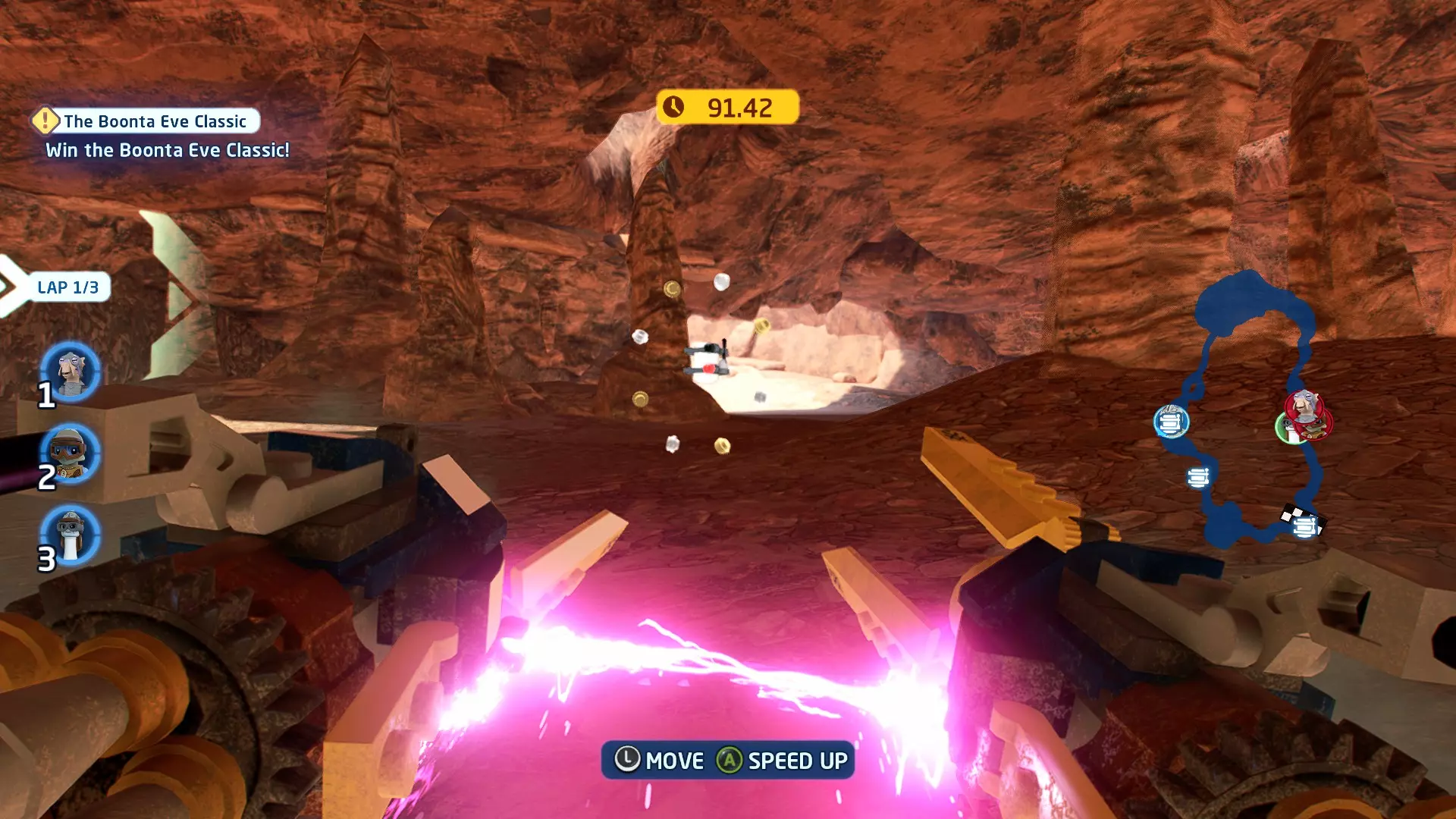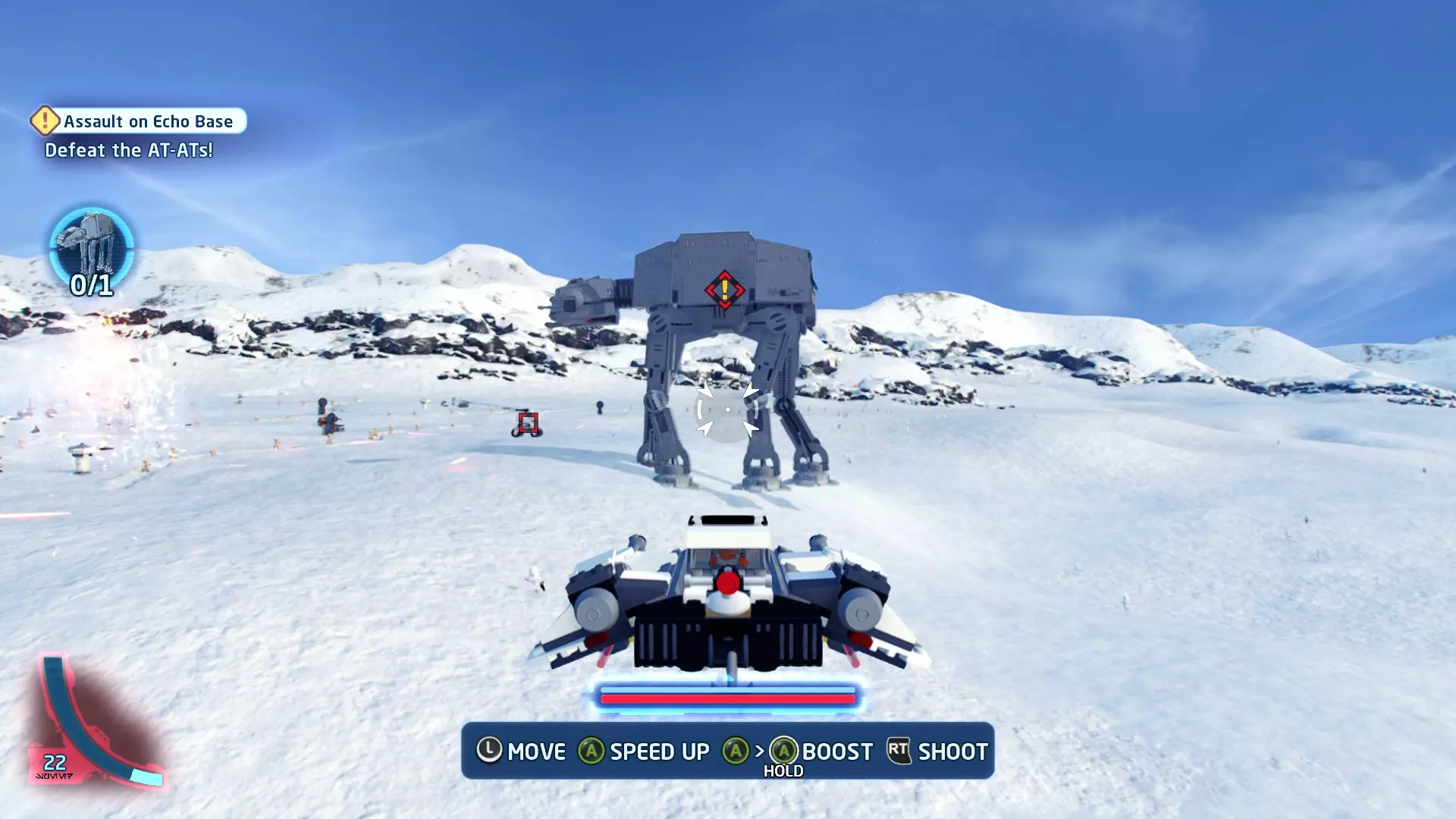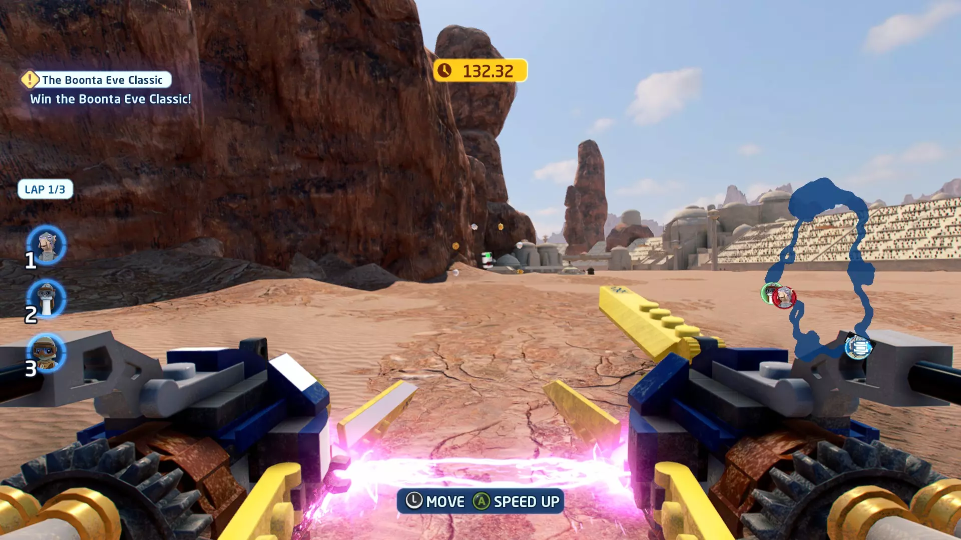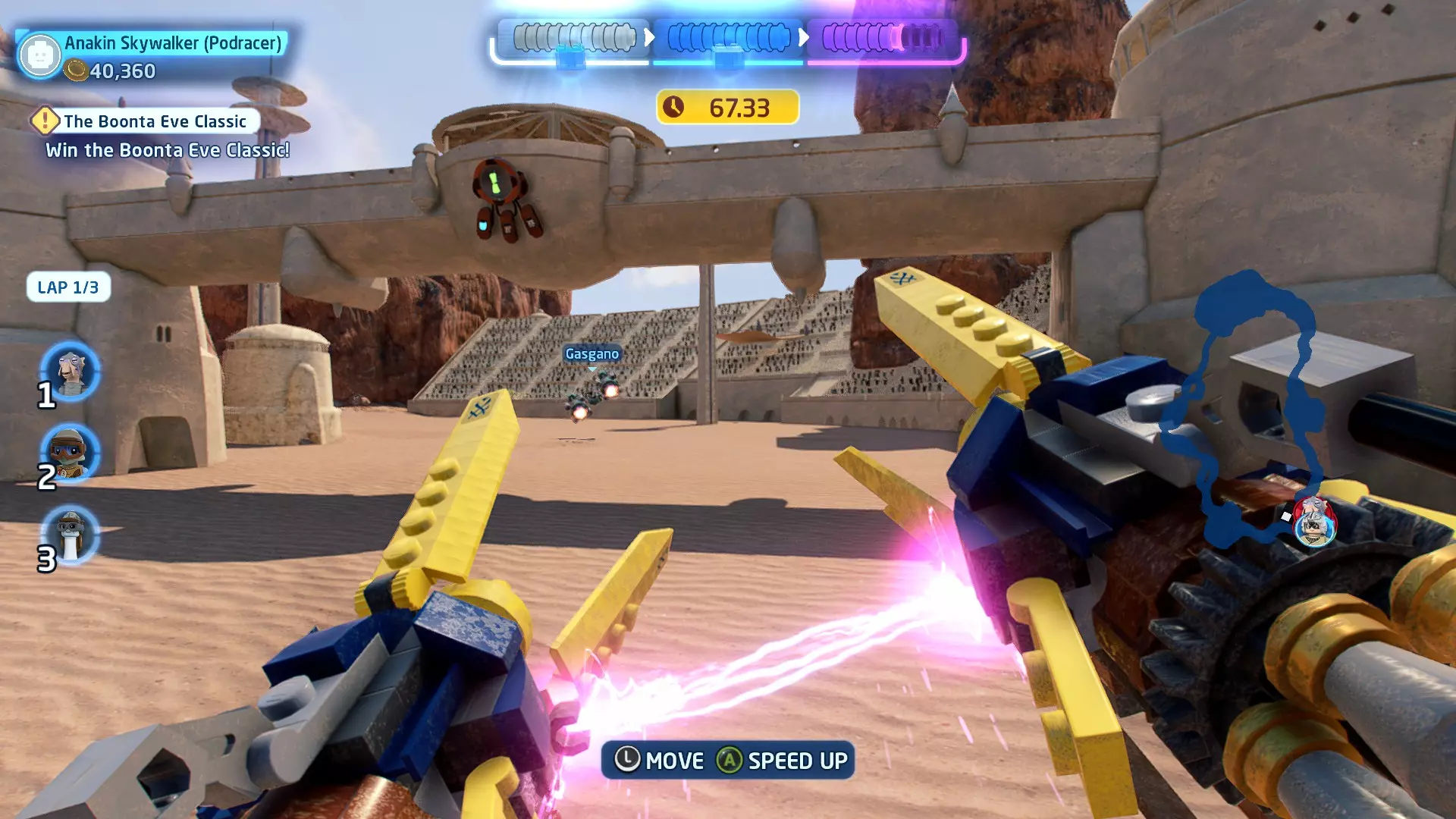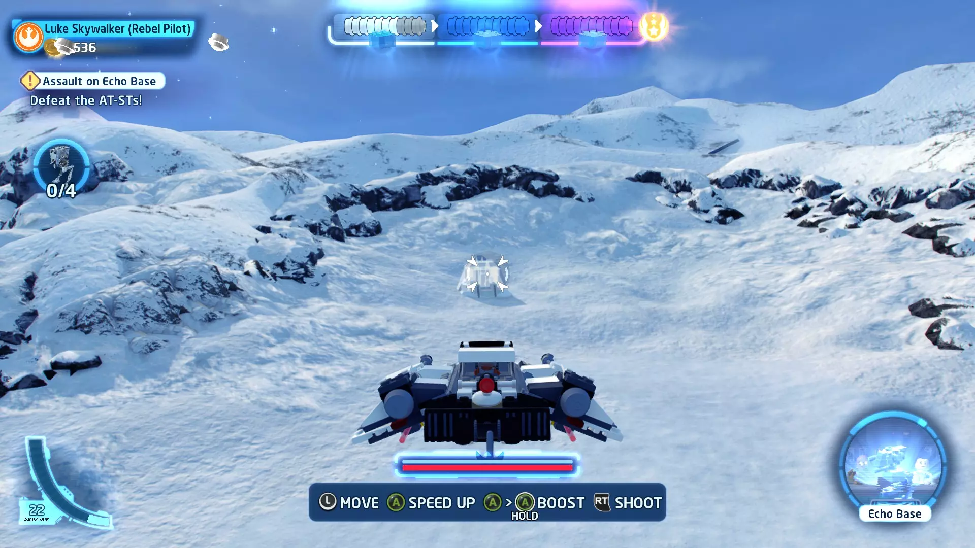 一架TIE战斗机将会出现并开始向你射击。摧毁TIE战斗机即可获得这个迷你套件。 微型飞船:贝斯通遗产(微型) 它们现在会飞了!- 关卡挑战 挑战1 - 当踏速车飞起来的时候! 详情:摧毁空中的踏速车