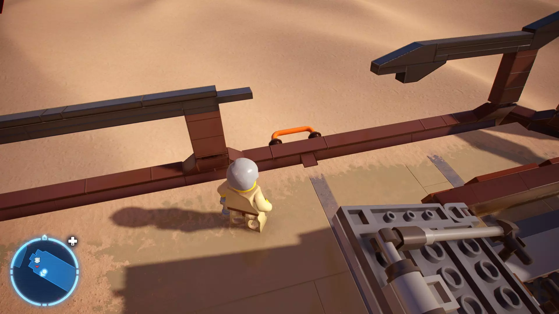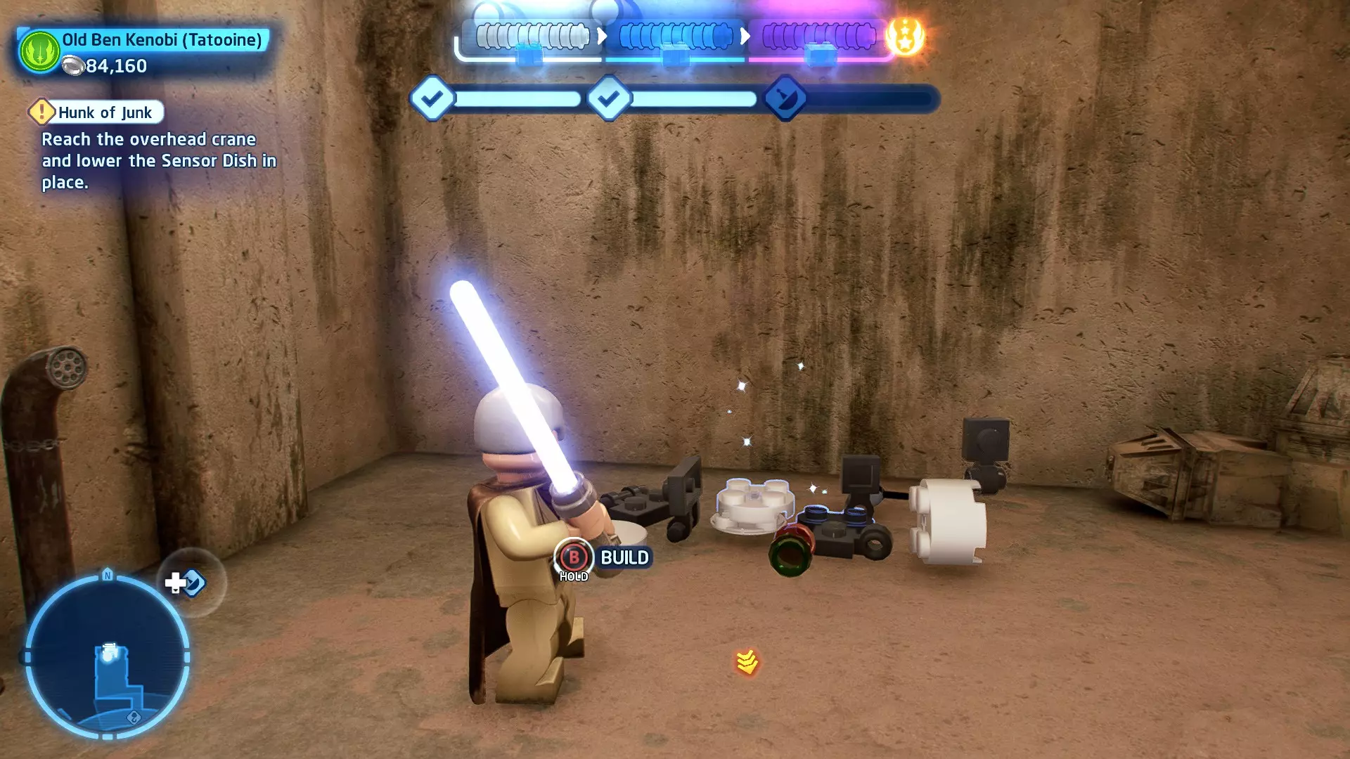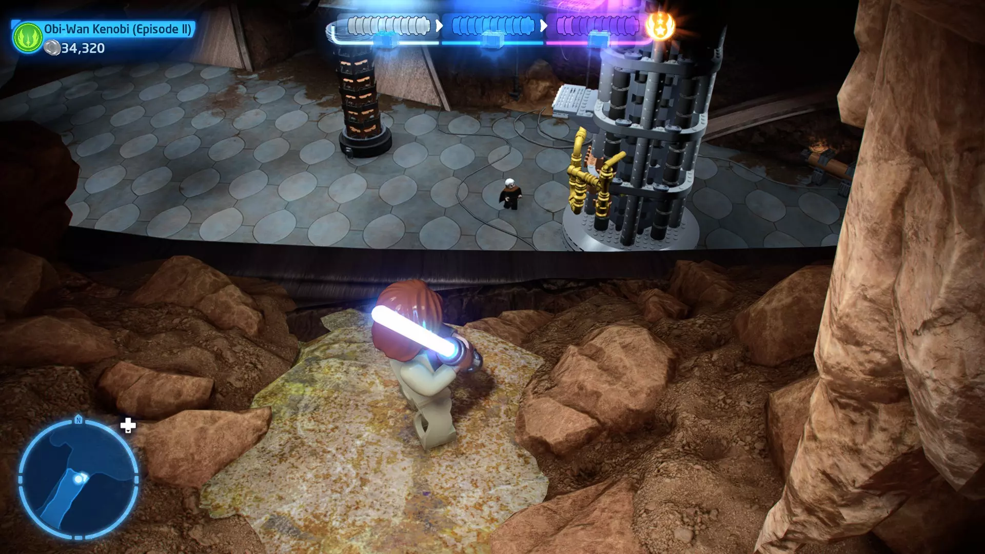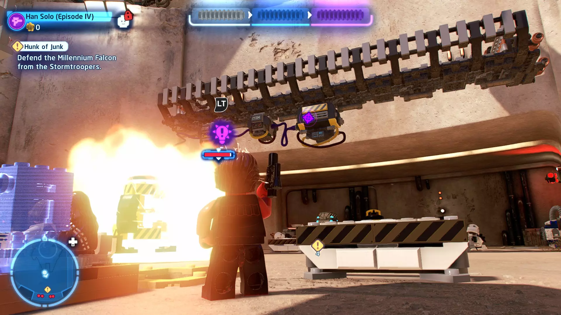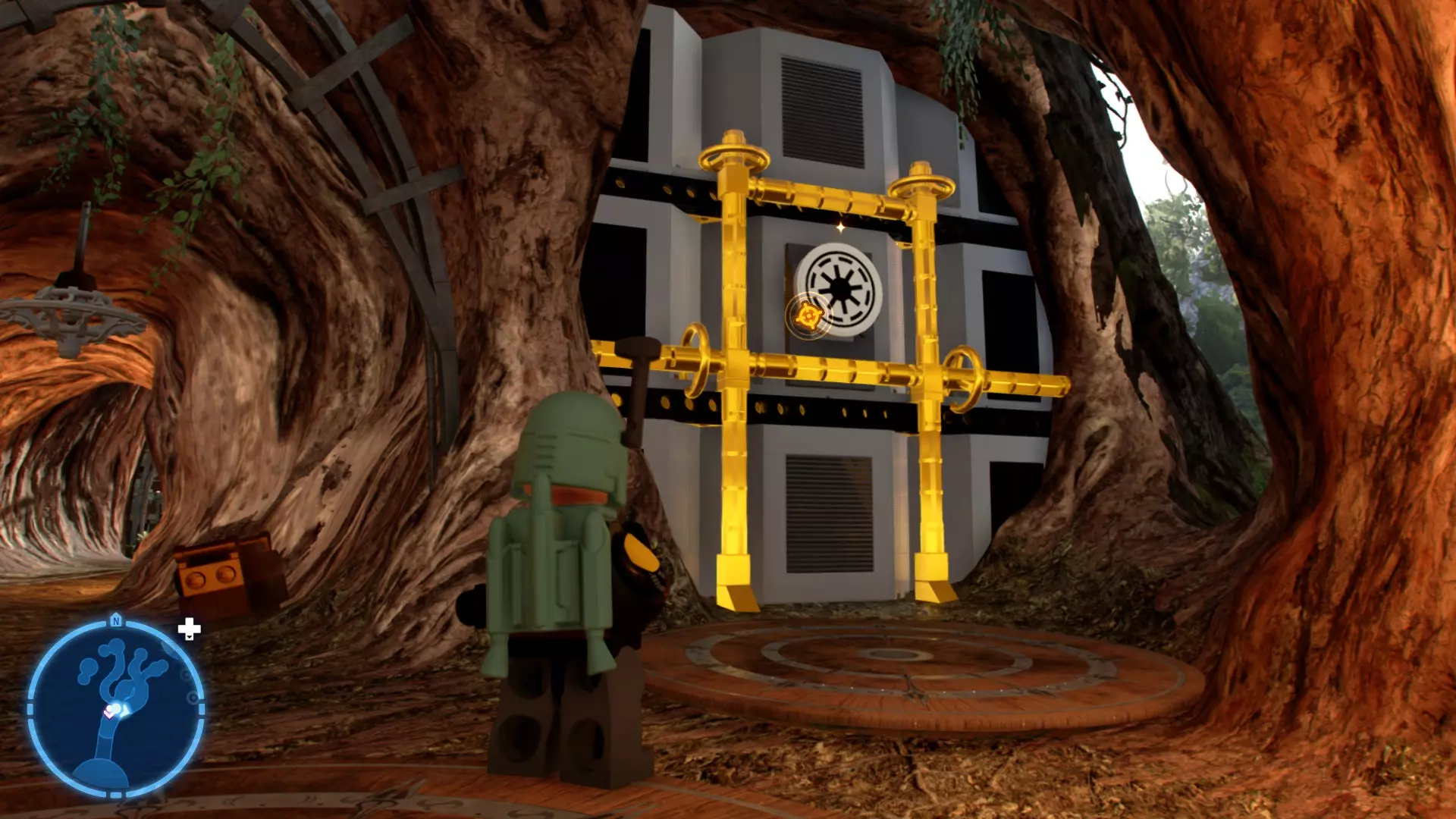 摧毁第一队西斯士兵右侧的黄金发电机,以获得乐高积木。将它们组装成这个迷你套件。 迷你套件3 - 无法束缚我