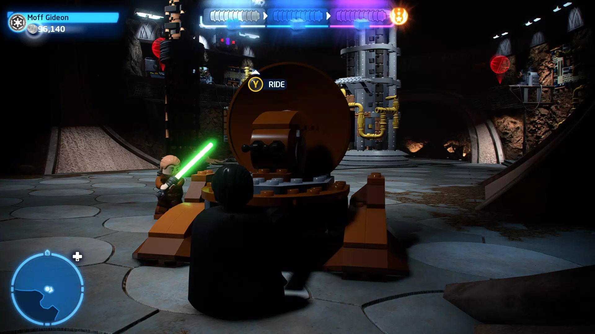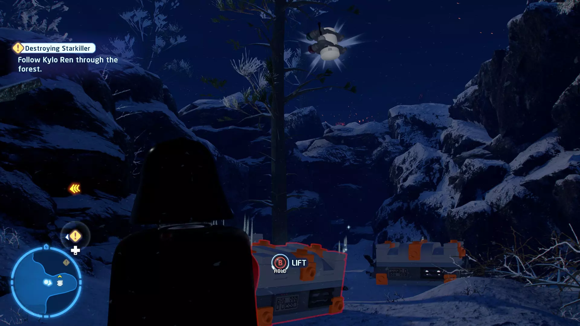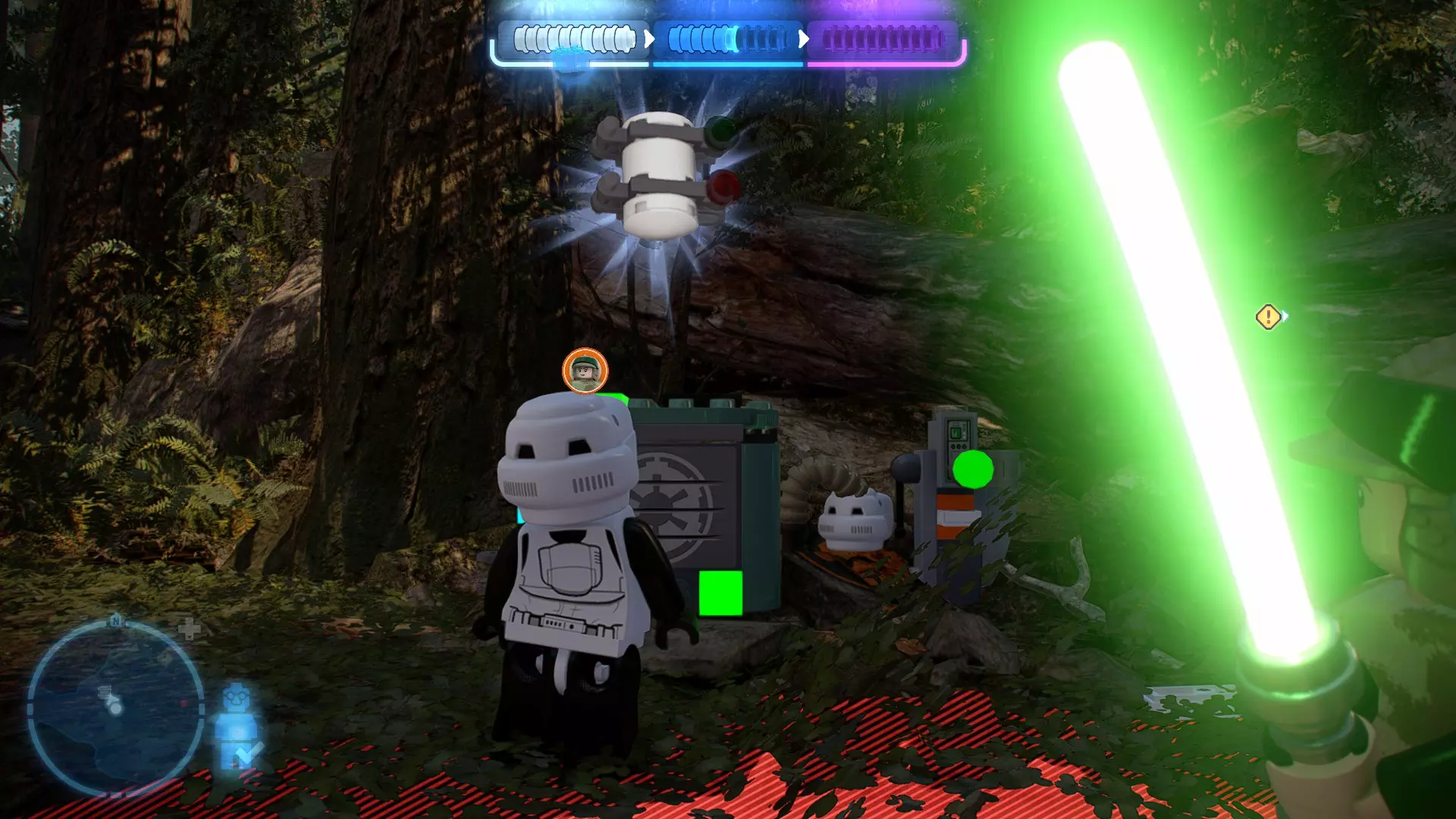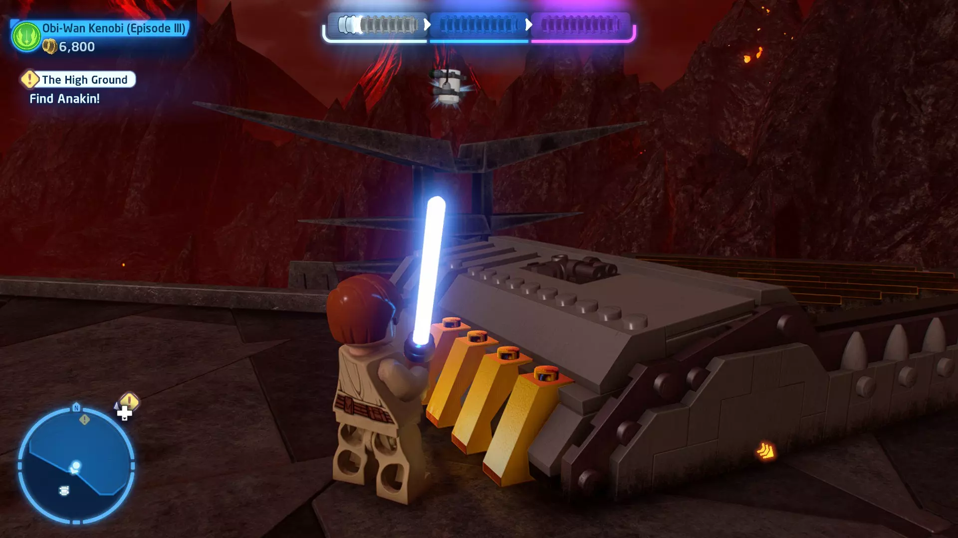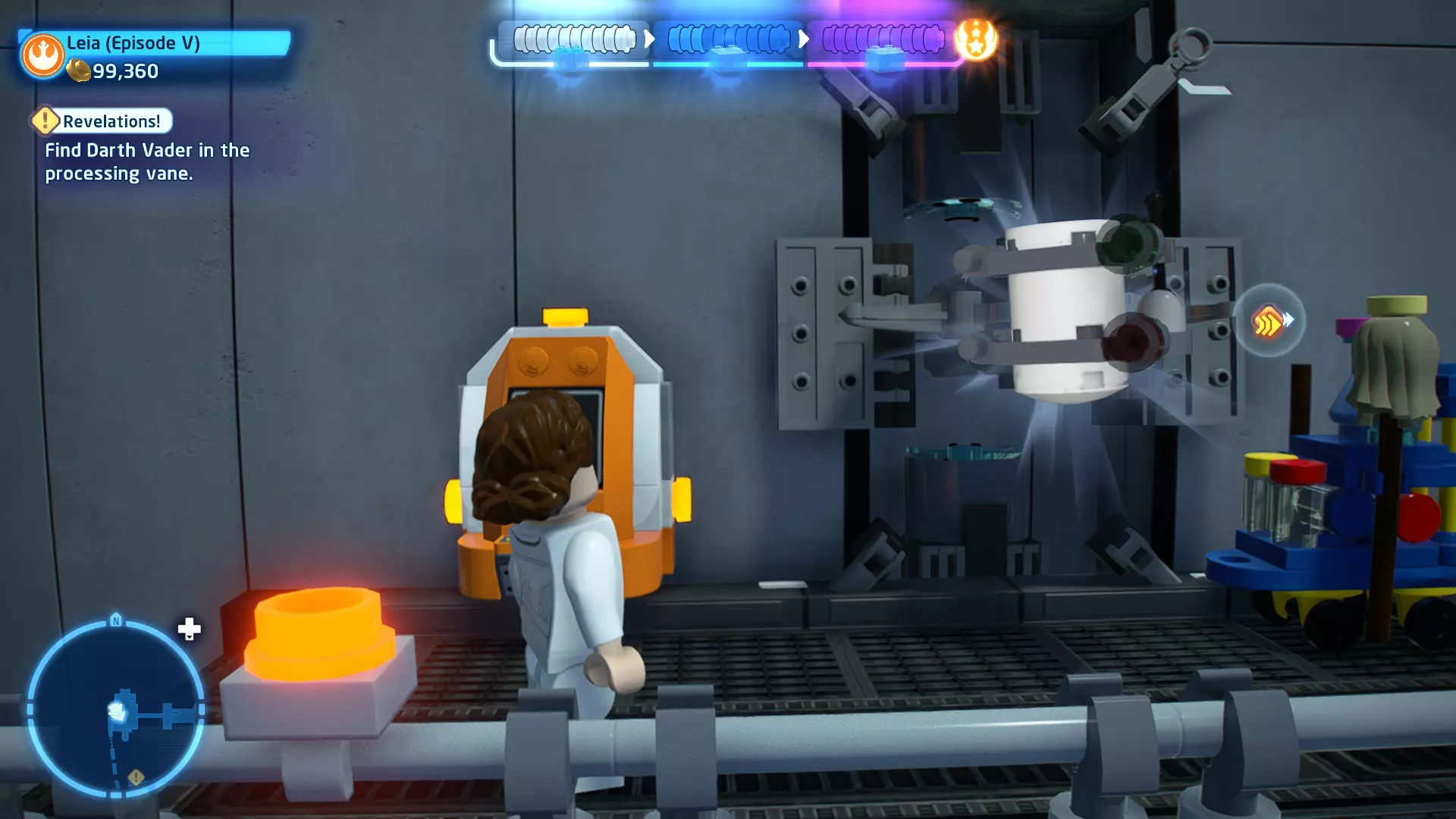 摧毁第一队西斯士兵右侧的黄金发电机,以获得乐高积木。将它们组装成这个迷你套件。 迷你套件3 - 无法束缚我