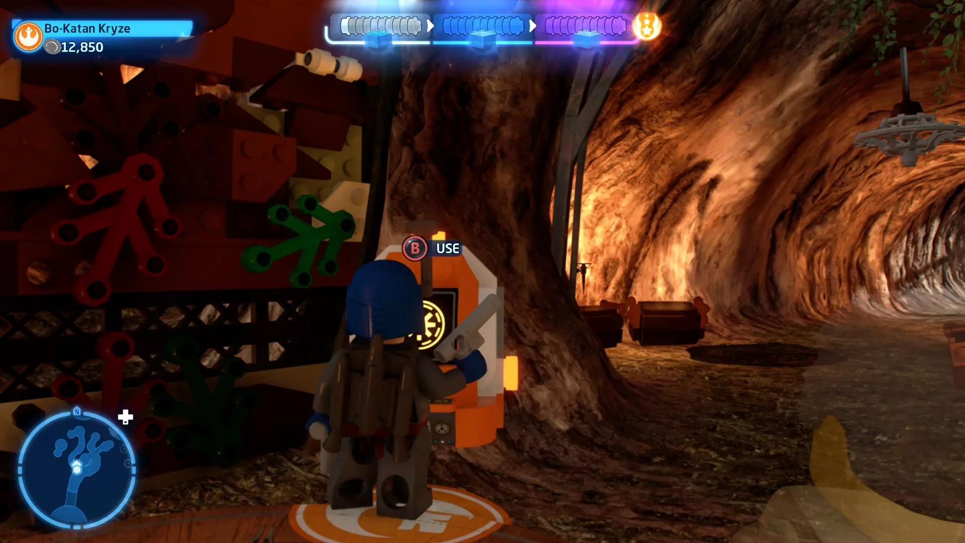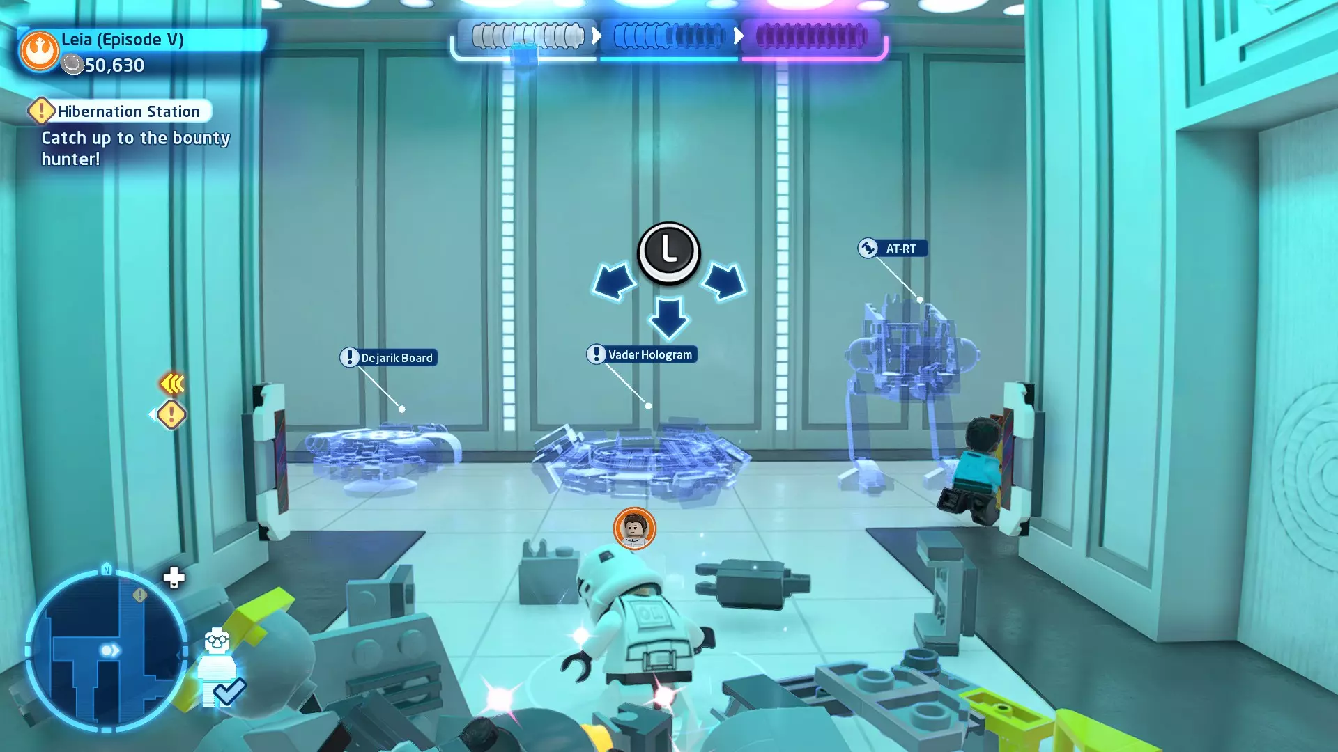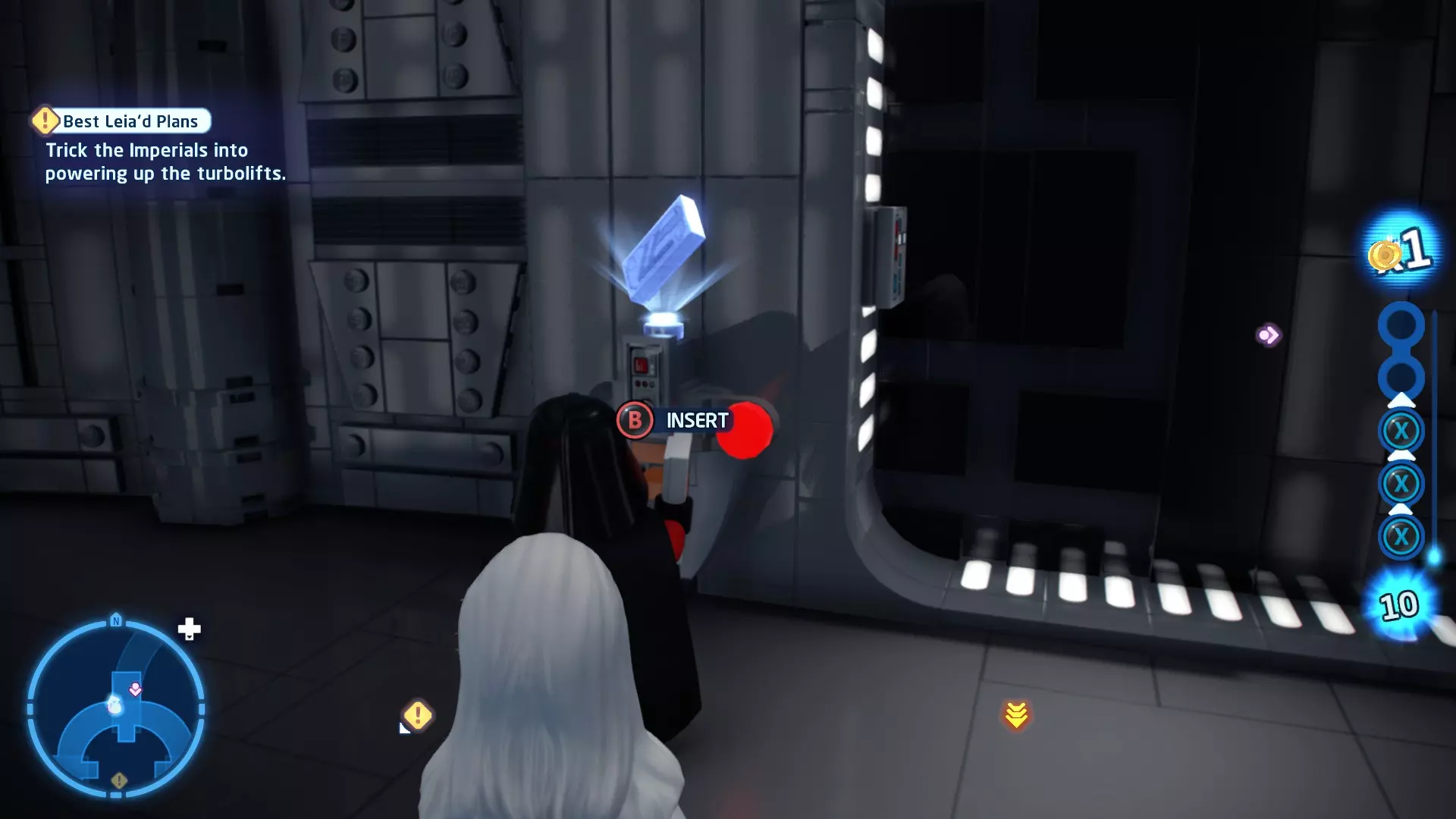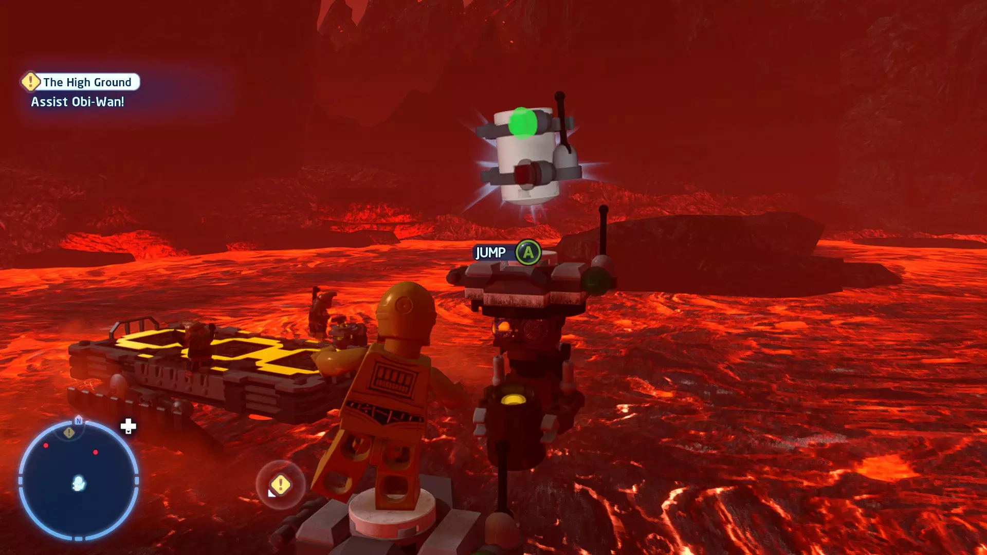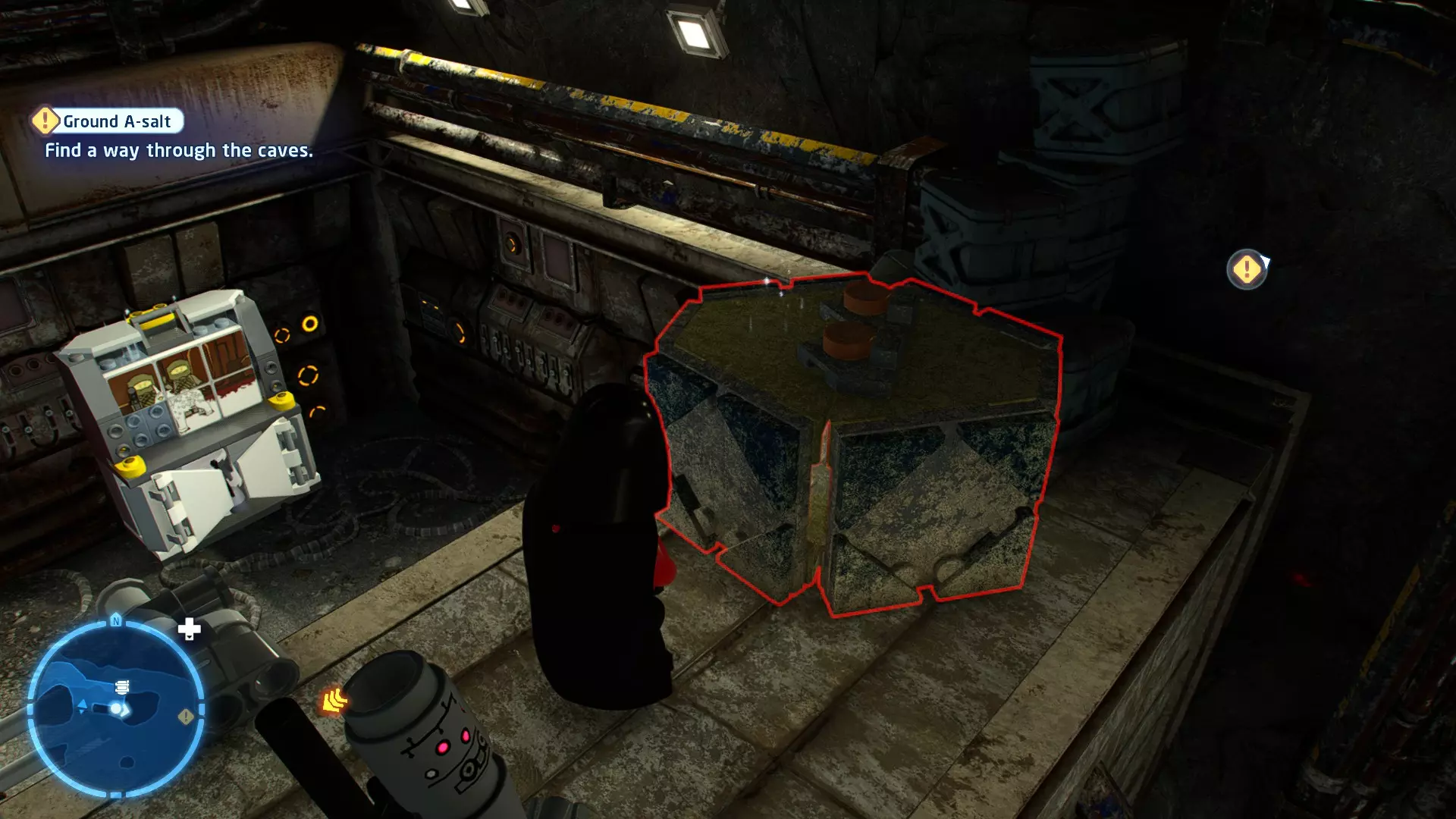 摧毁第一队西斯士兵右侧的黄金发电机,以获得乐高积木。将它们组装成这个迷你套件。 迷你套件3 - 无法束缚我