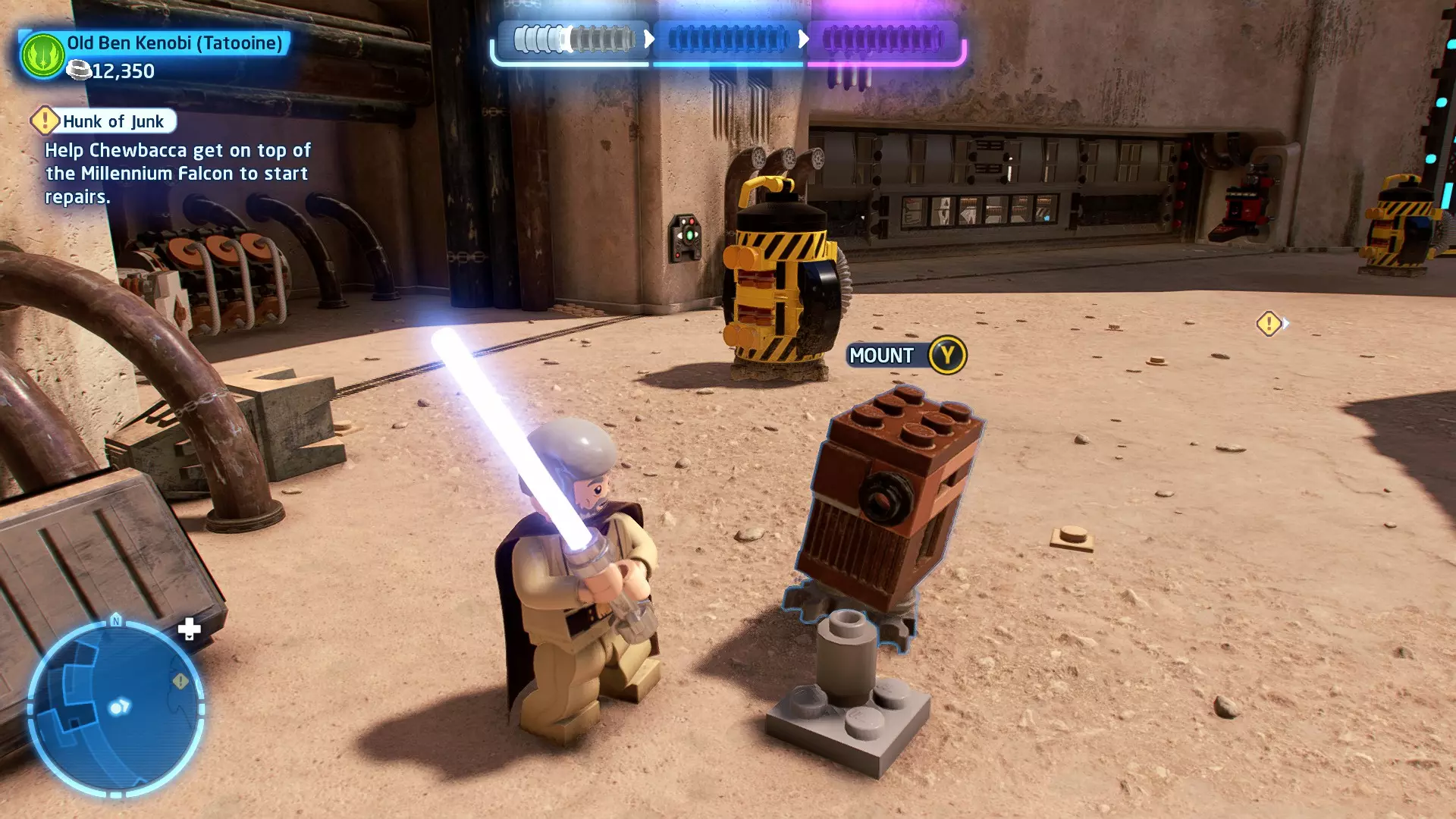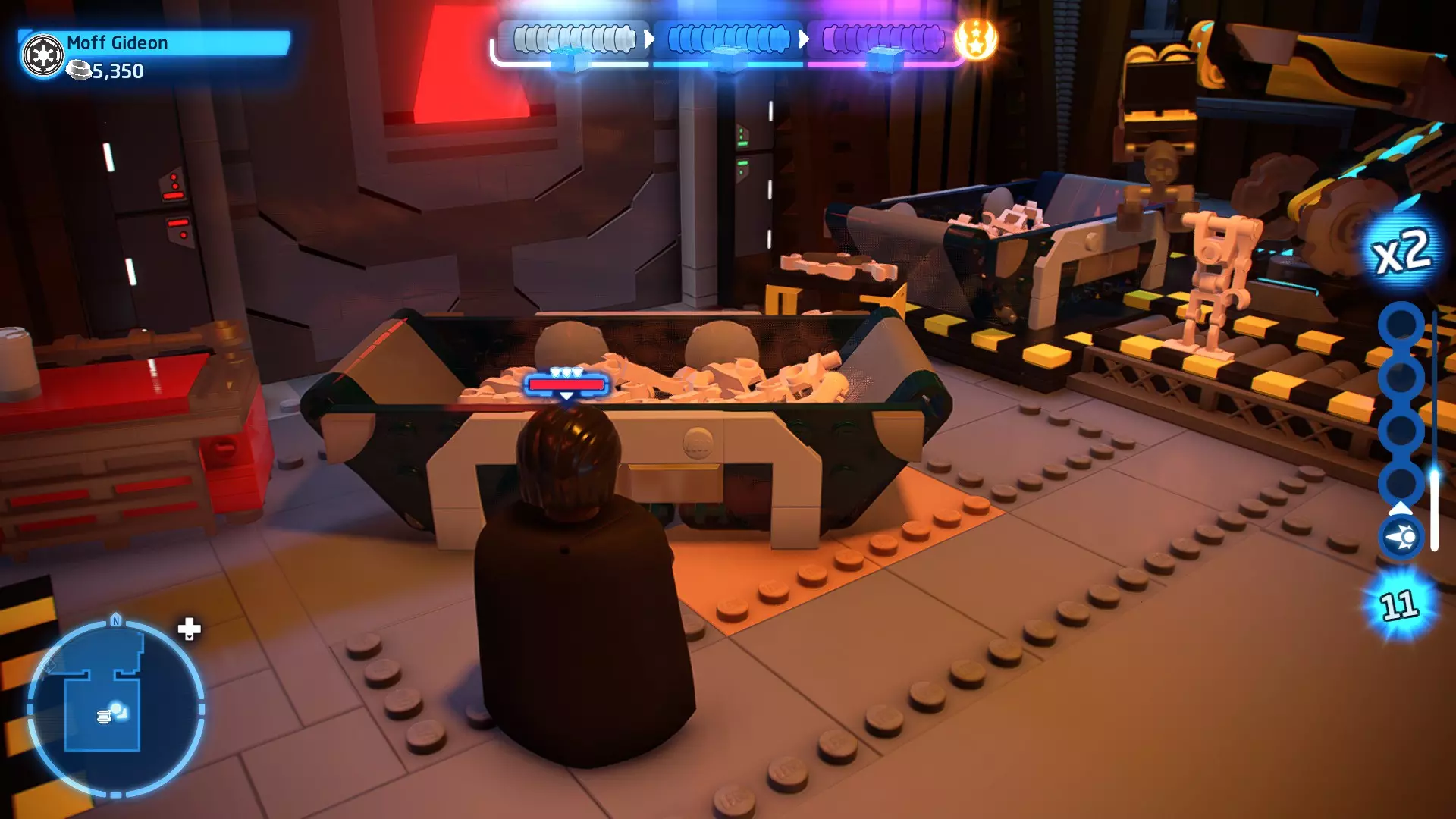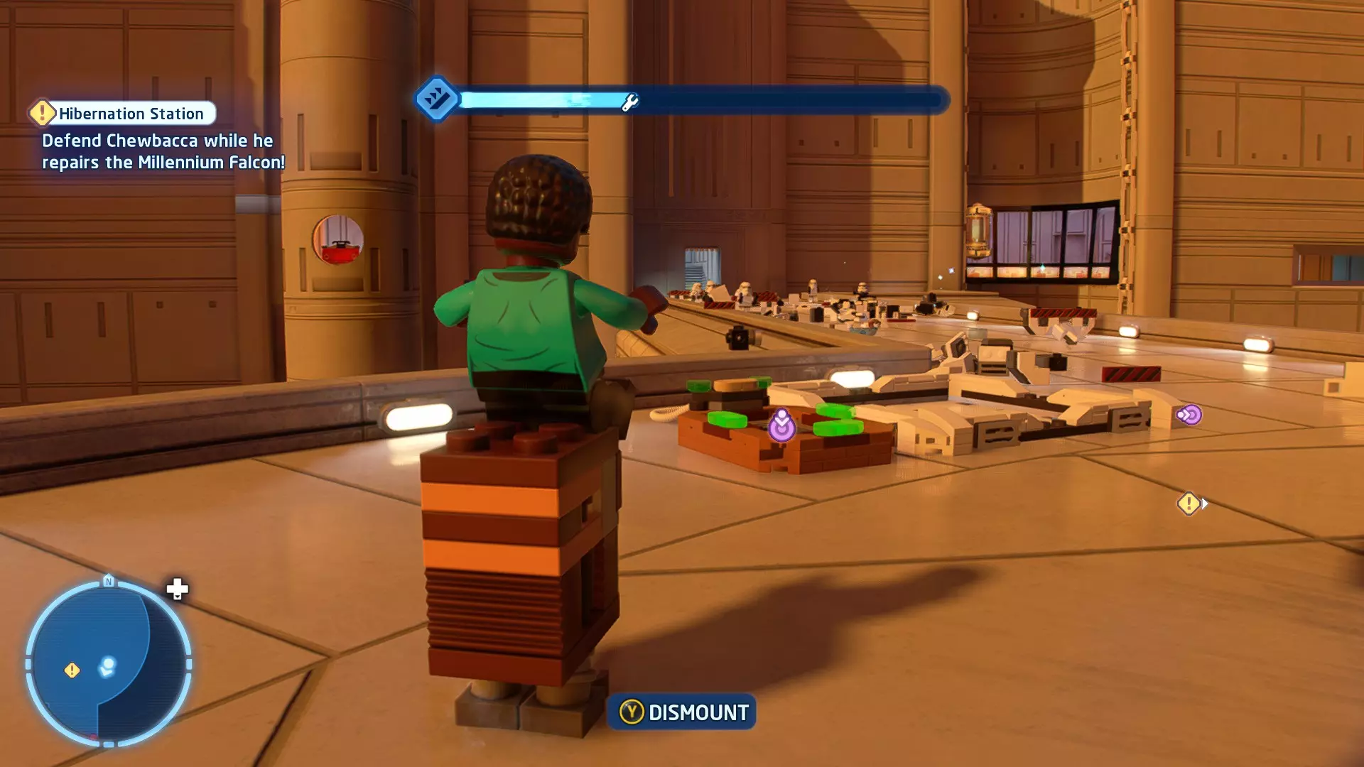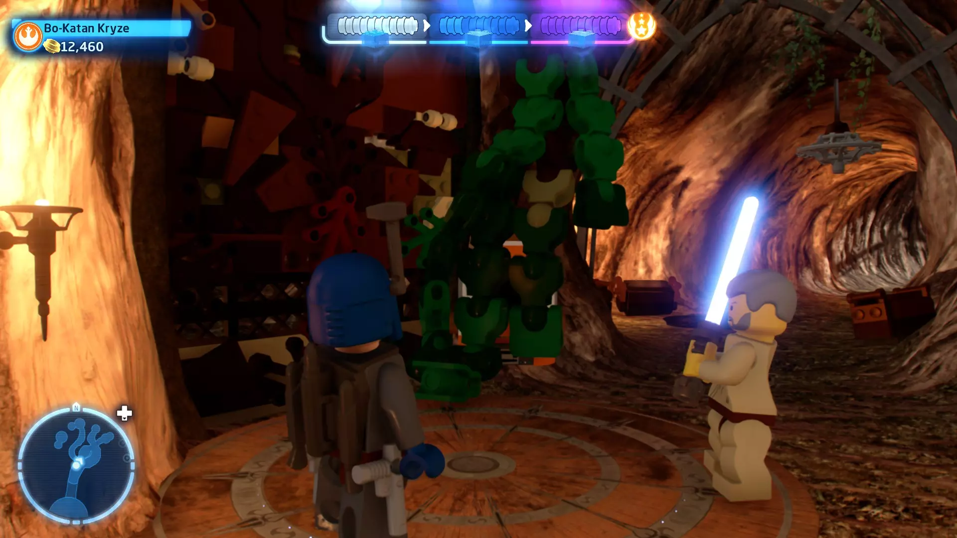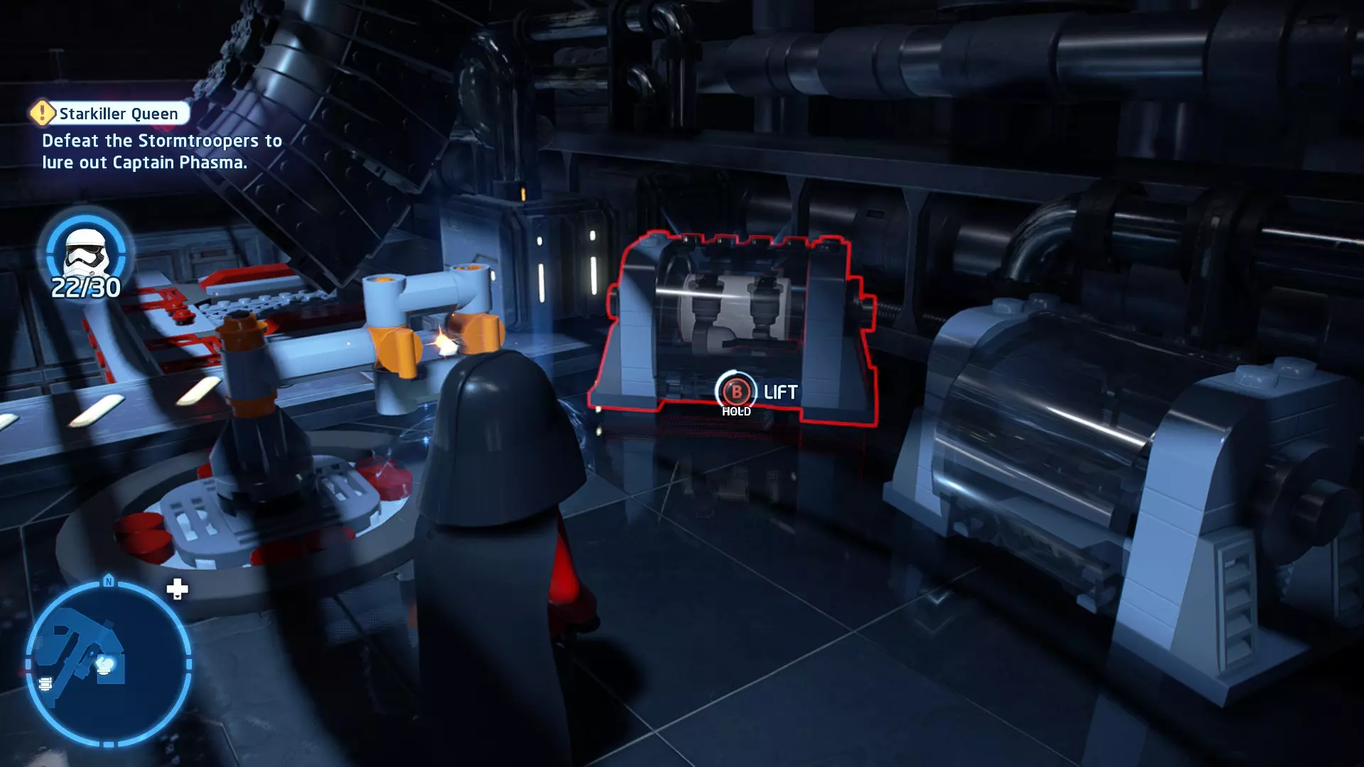 摧毁第一队西斯士兵右侧的黄金发电机,以获得乐高积木。将它们组装成这个迷你套件。 迷你套件3 - 无法束缚我