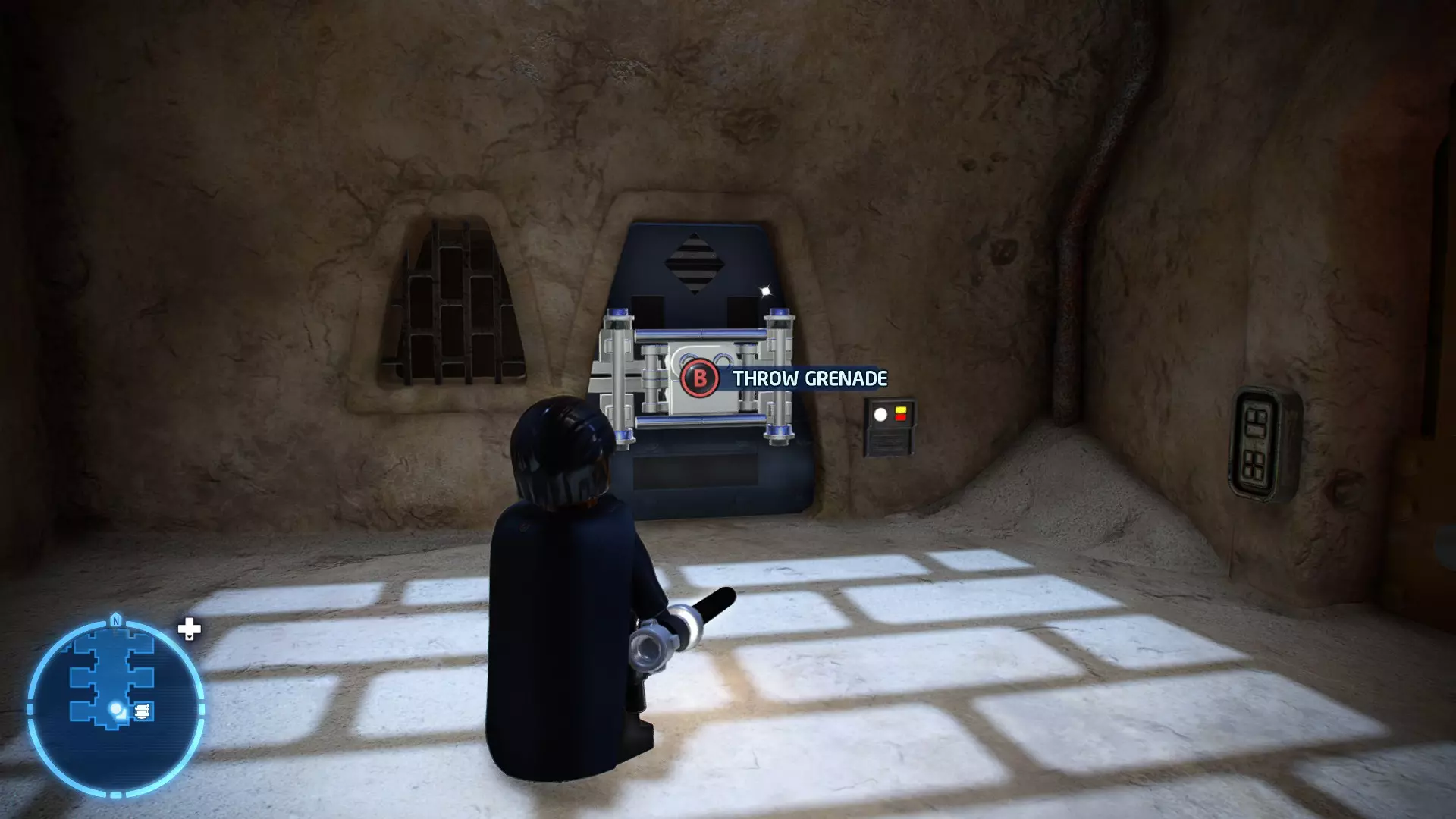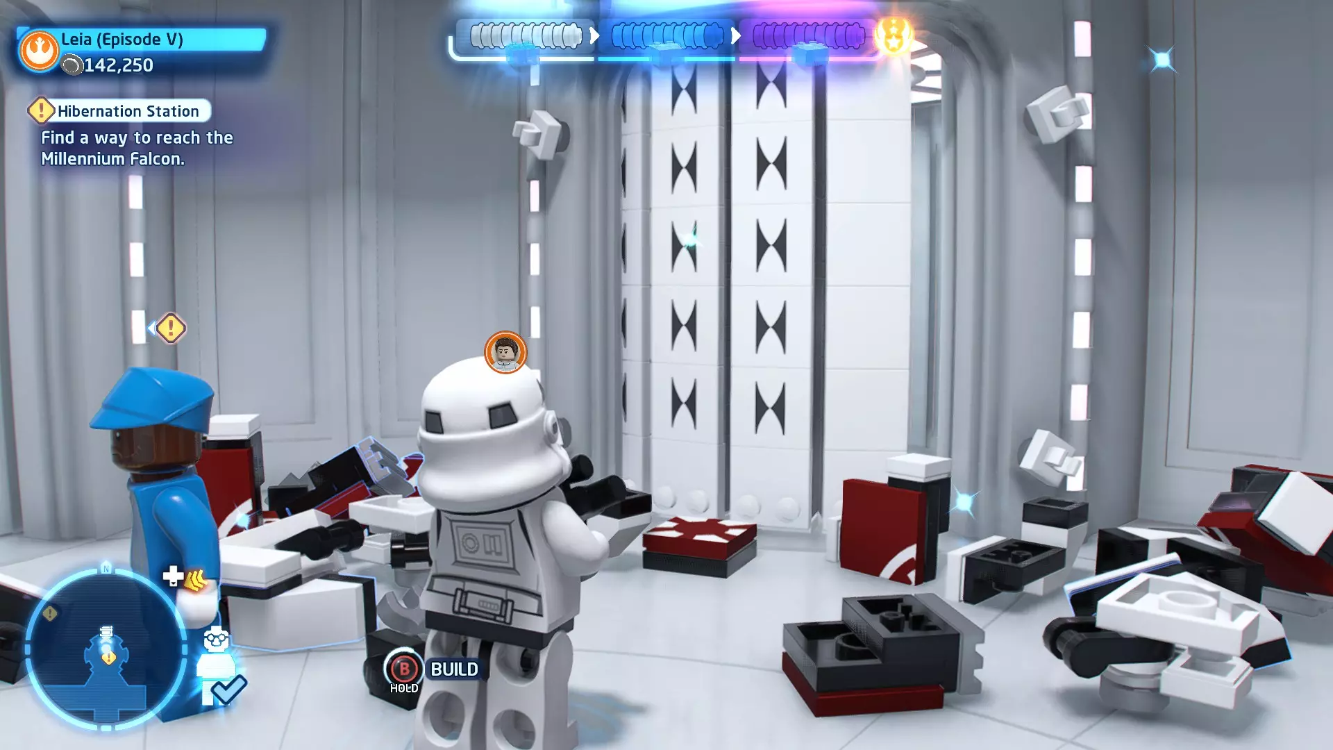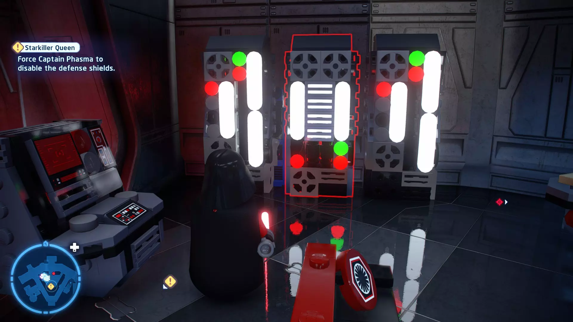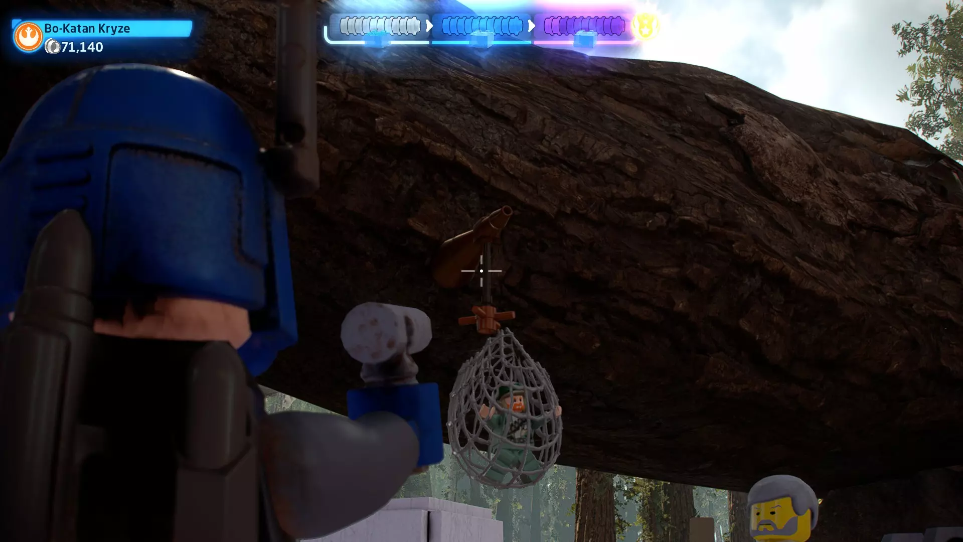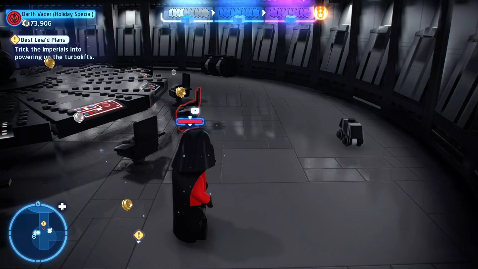 摧毁第一队西斯士兵右侧的黄金发电机,以获得乐高积木。将它们组装成这个迷你套件。 迷你套件3 - 无法束缚我