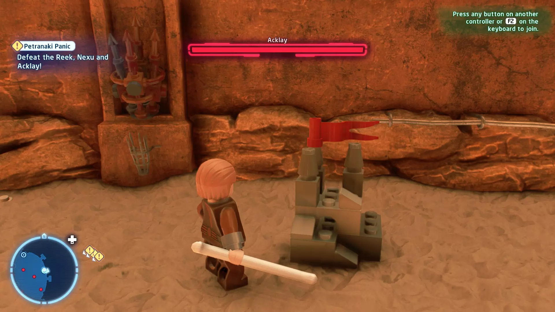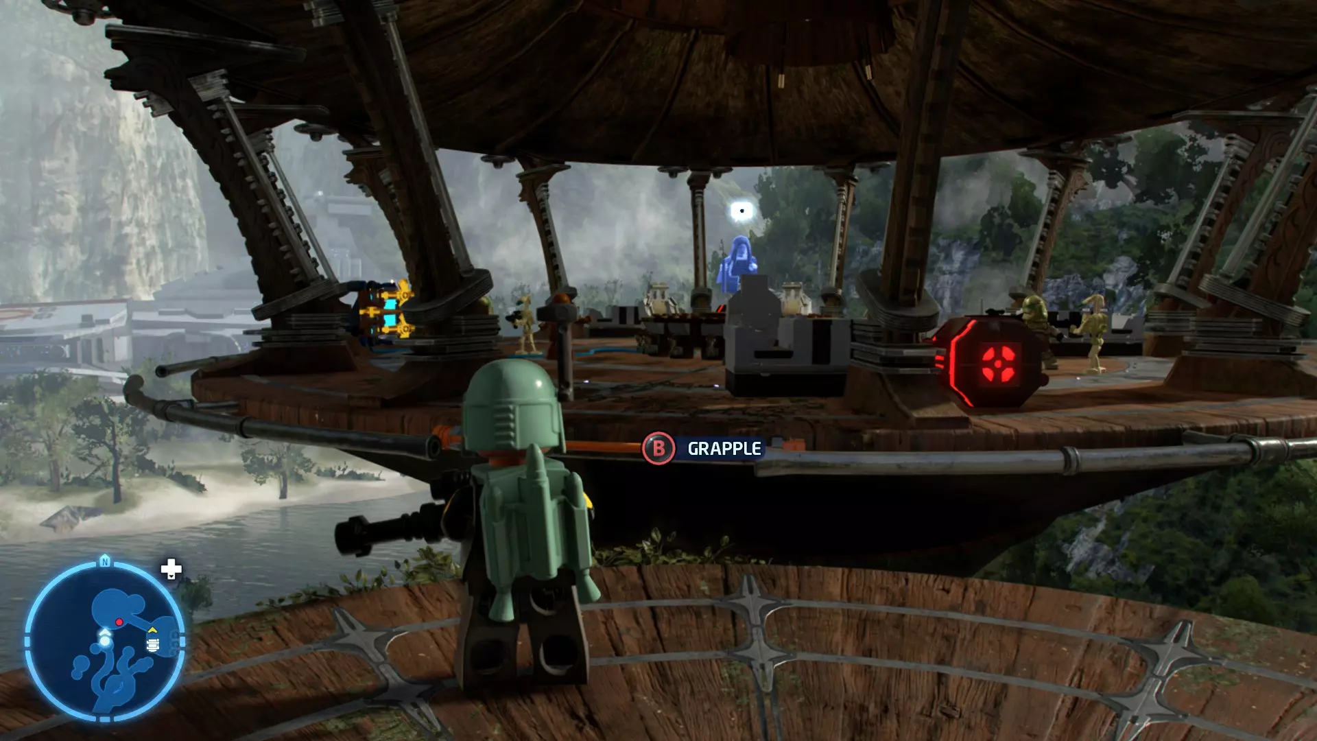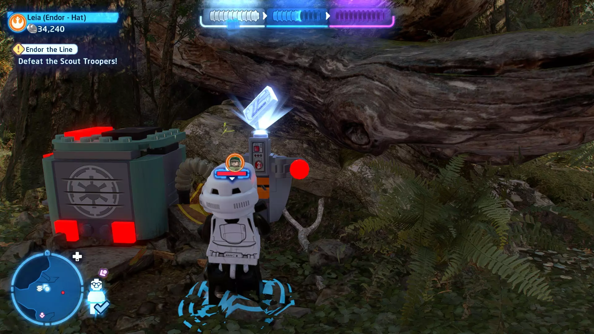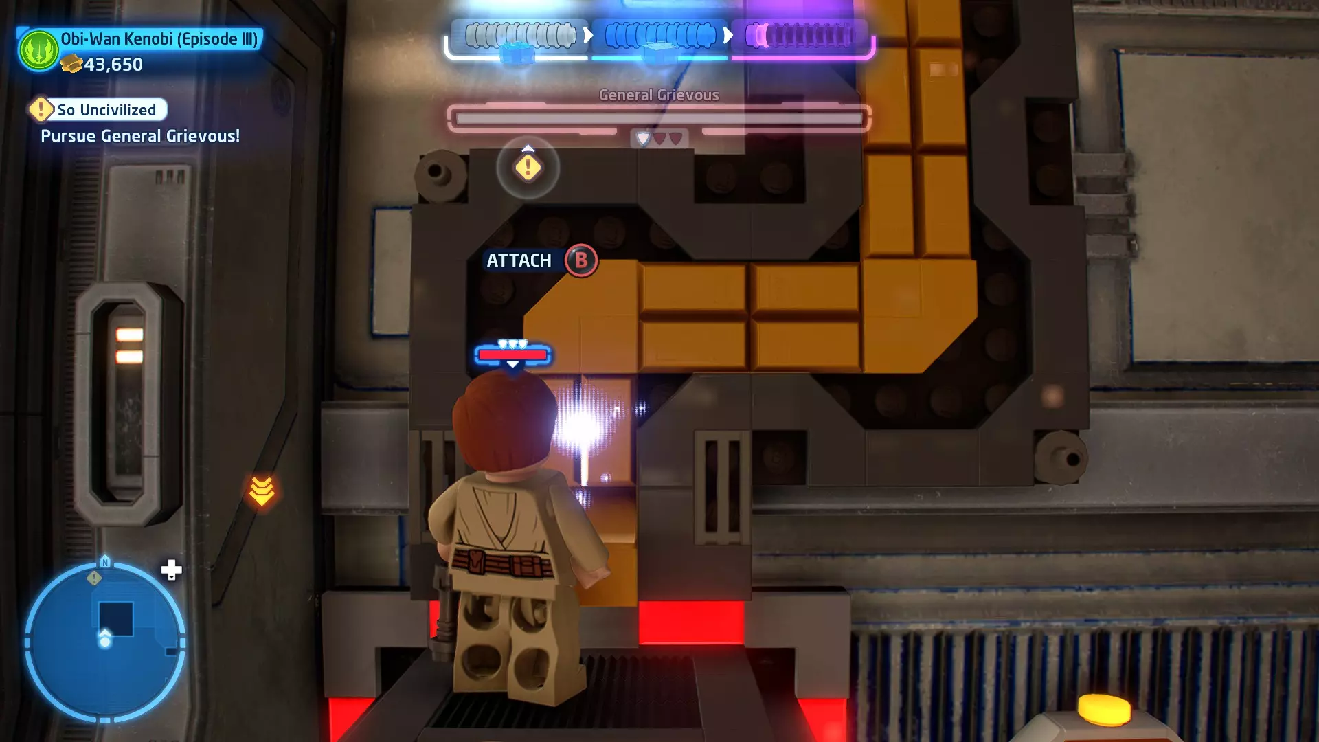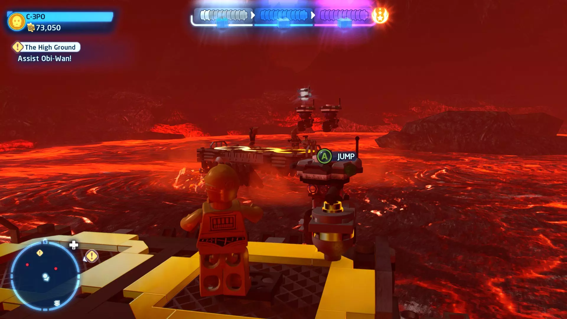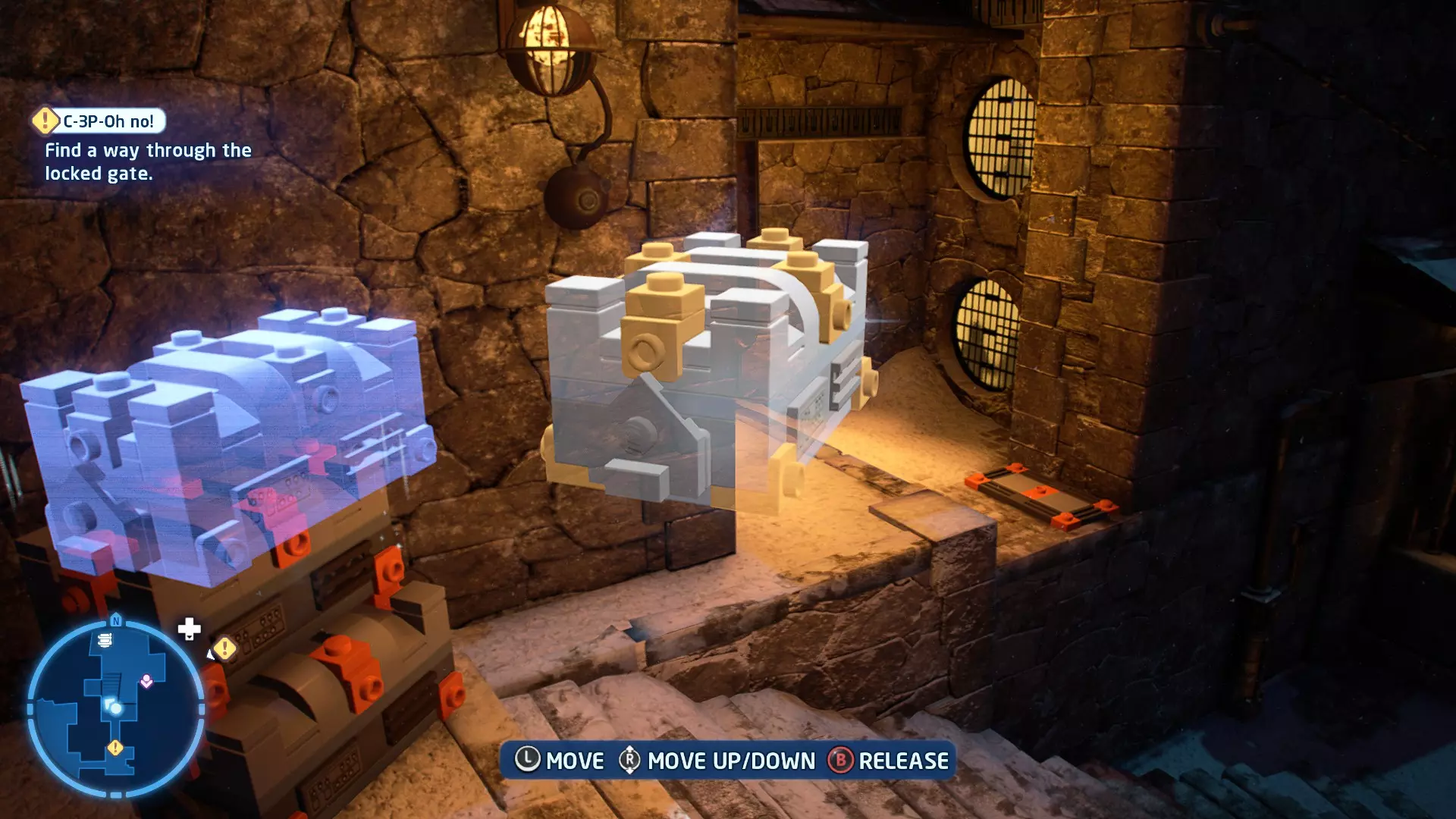 摧毁第一队西斯士兵右侧的黄金发电机,以获得乐高积木。将它们组装成这个迷你套件。 迷你套件3 - 无法束缚我
