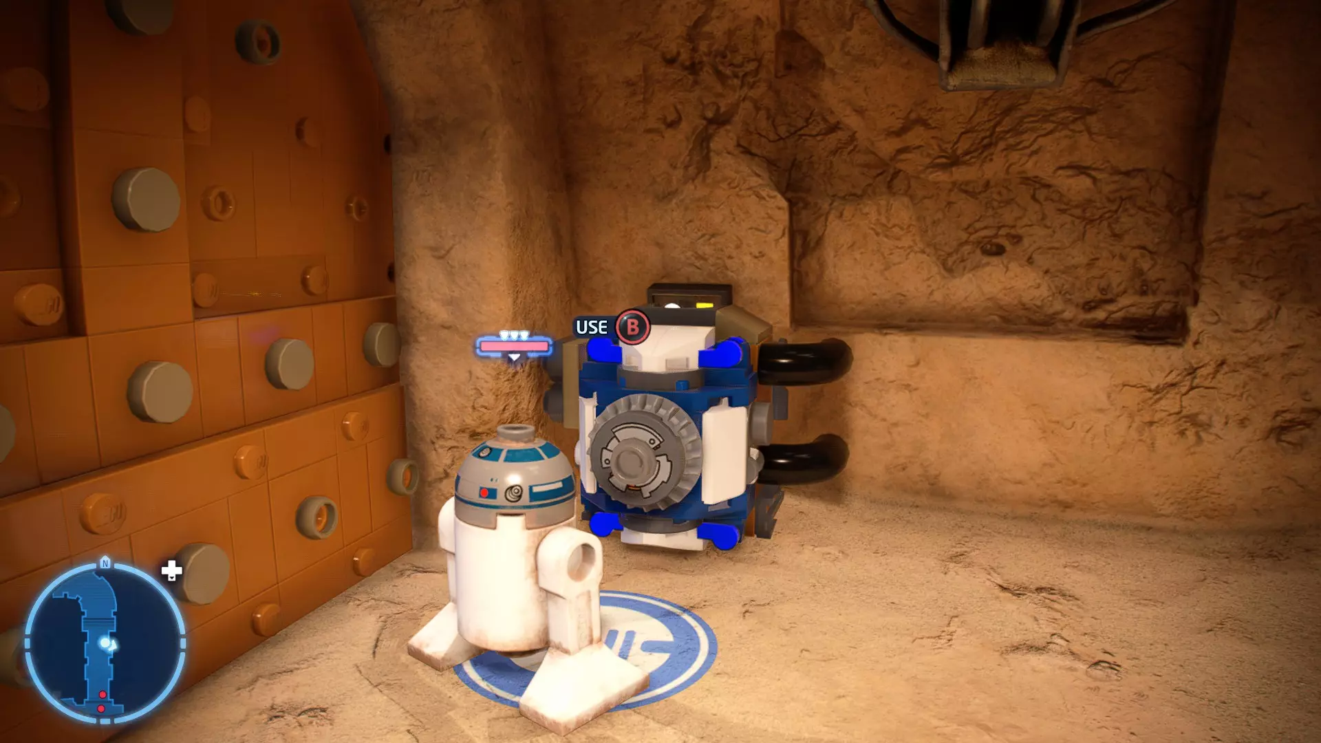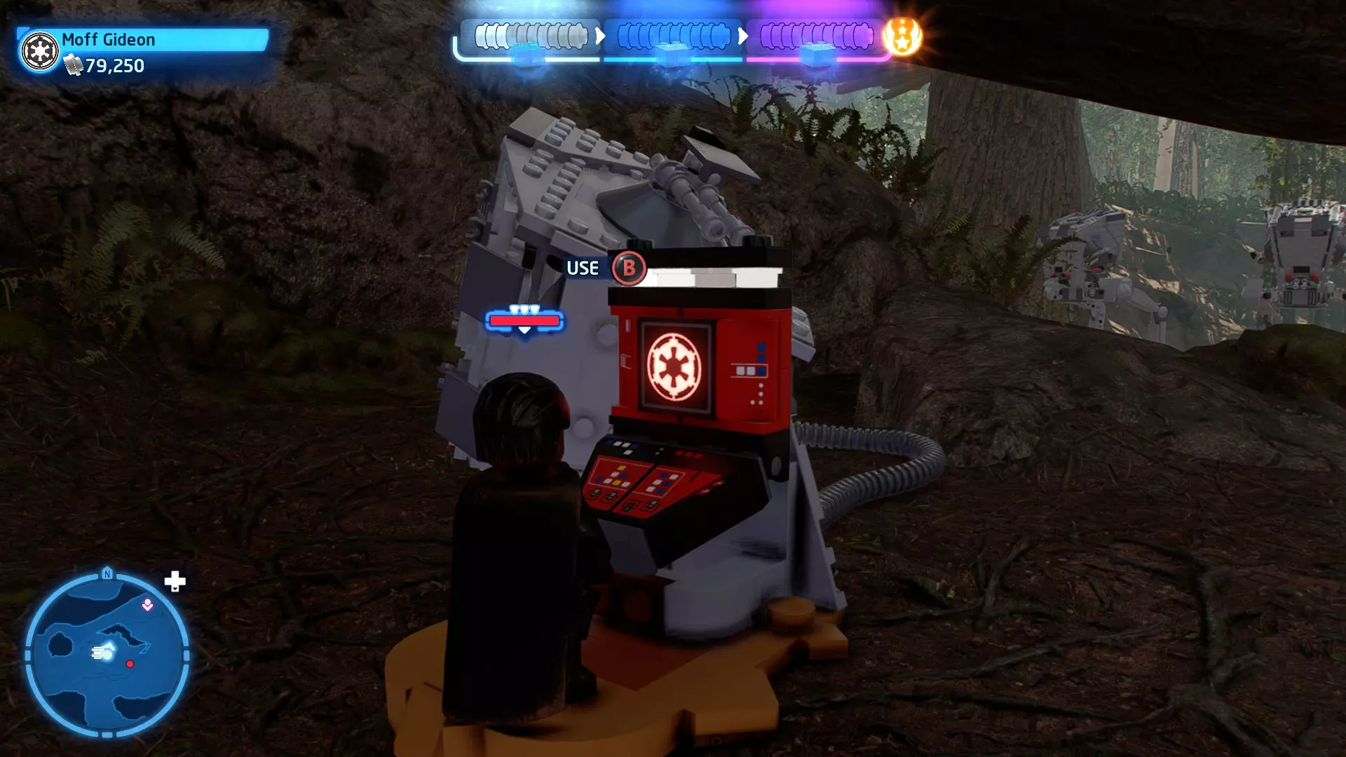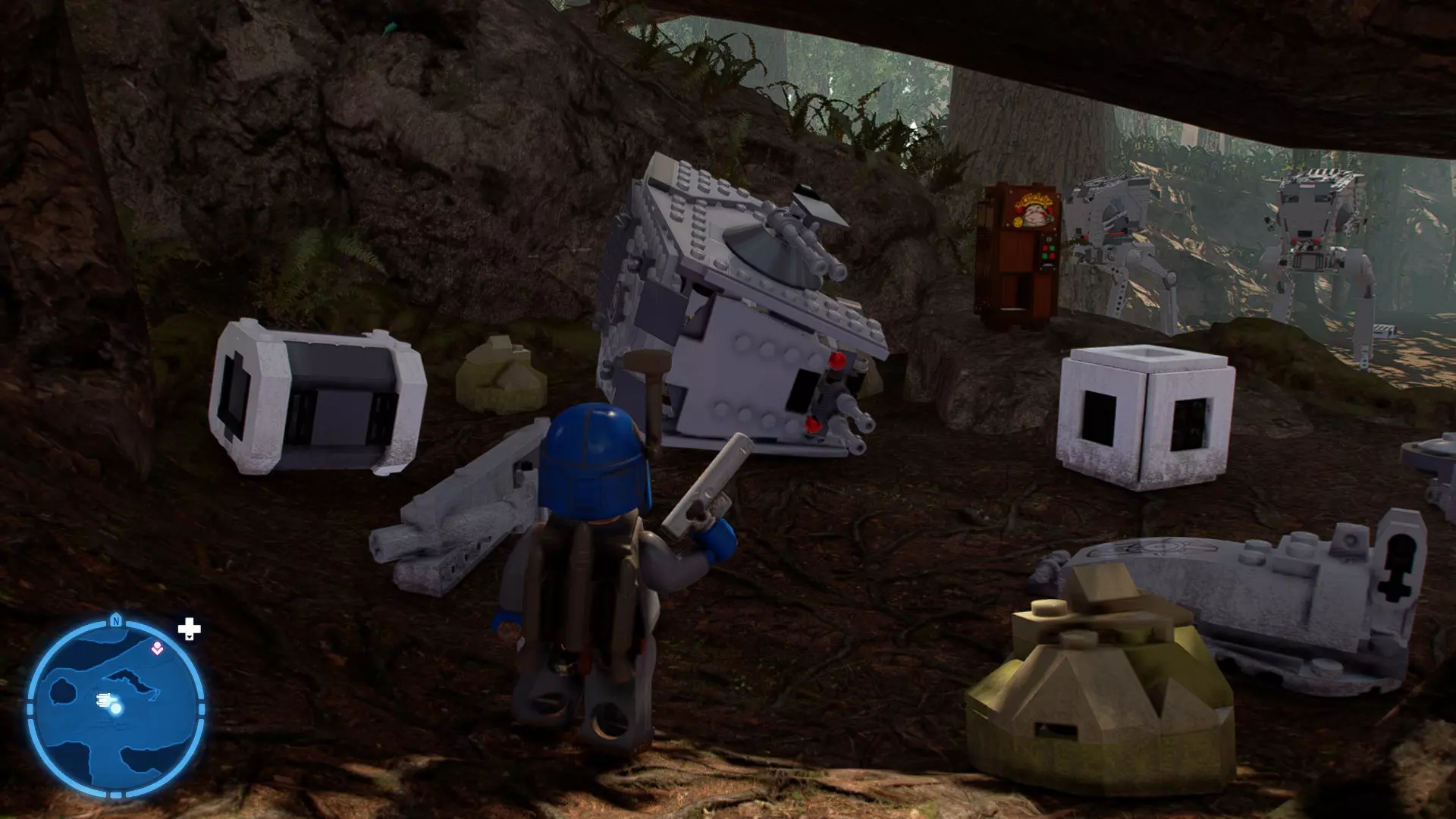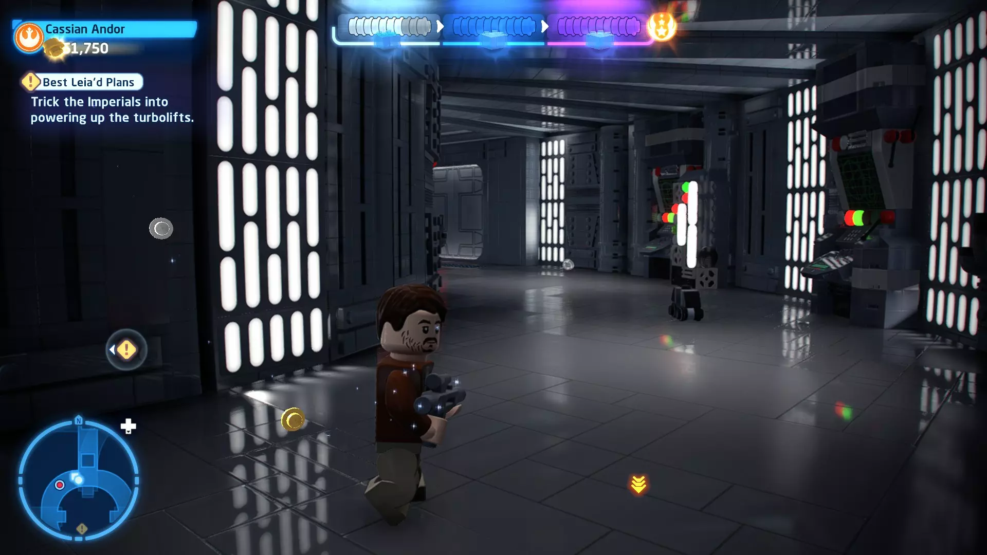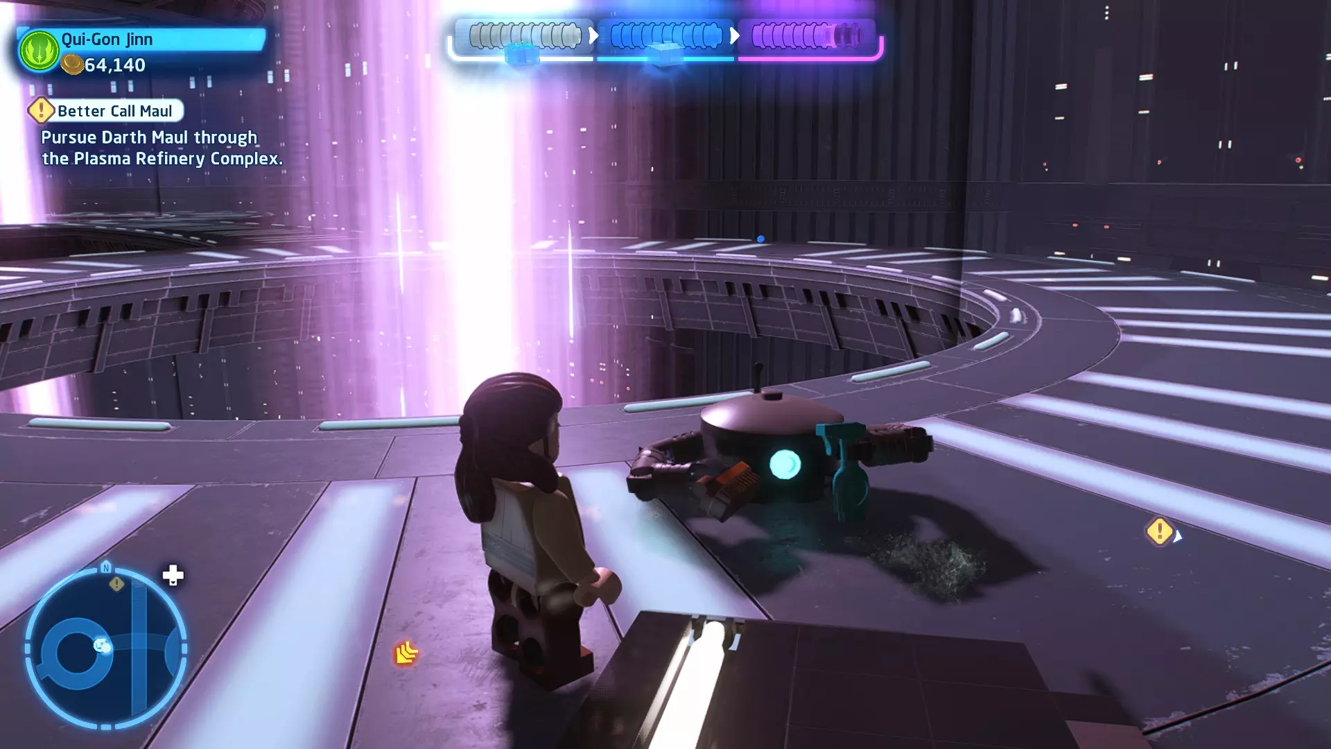 摧毁第一队西斯士兵右侧的黄金发电机,以获得乐高积木。将它们组装成这个迷你套件。 迷你套件3 - 无法束缚我