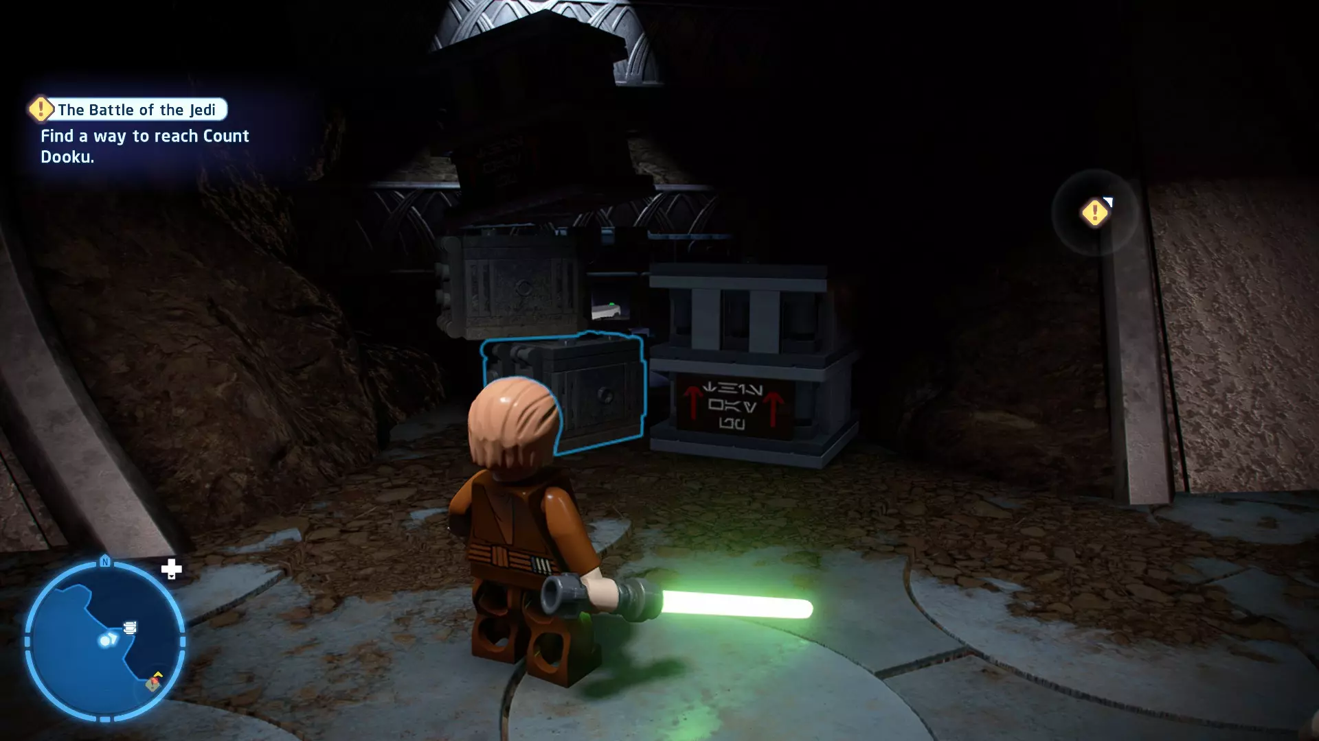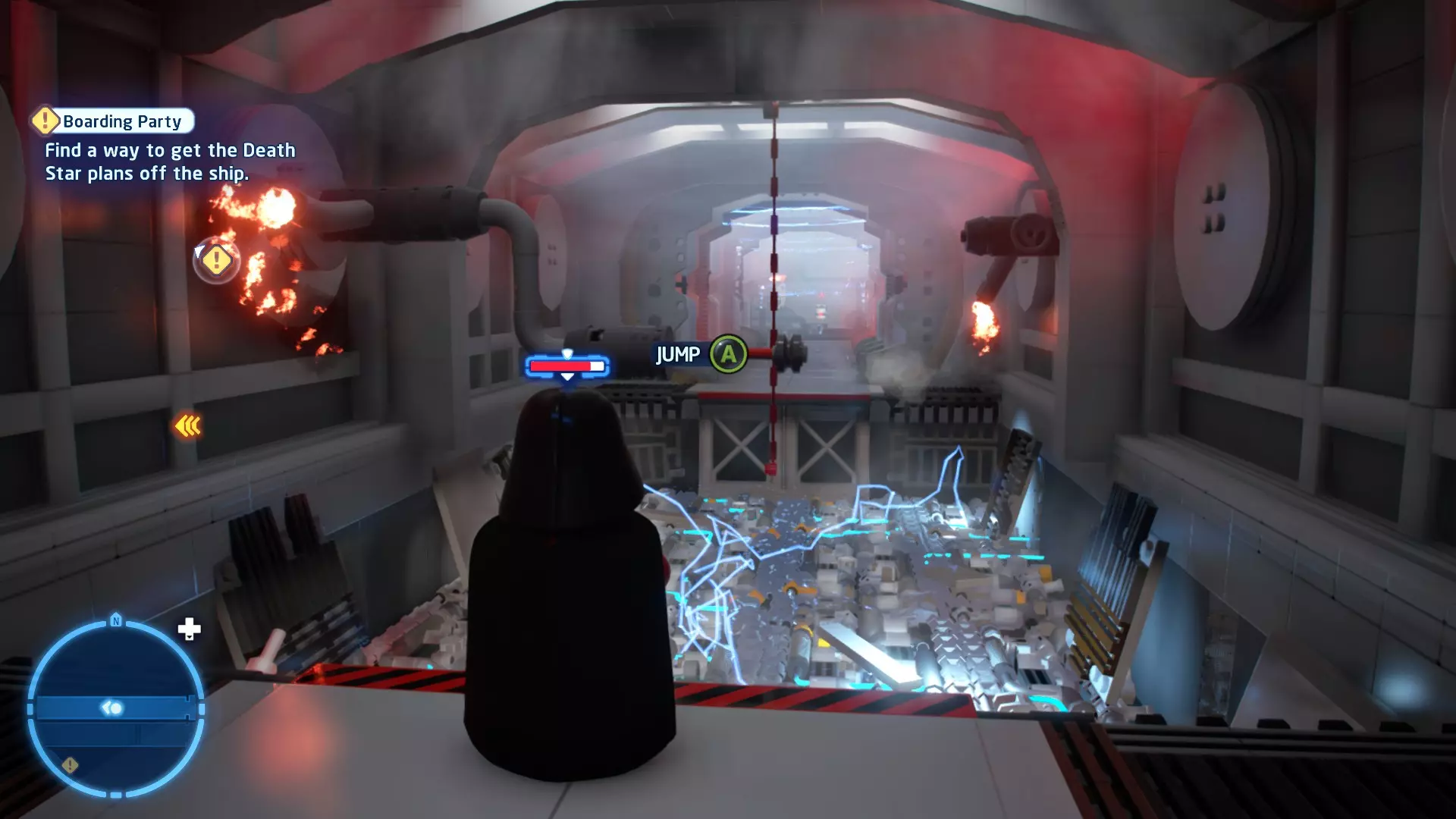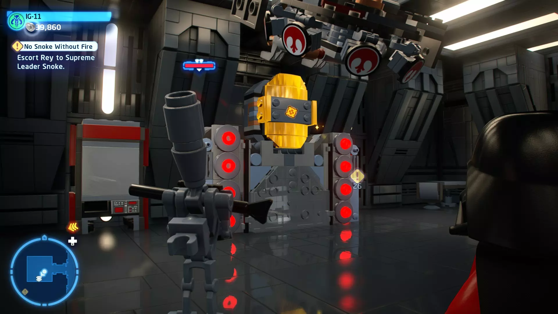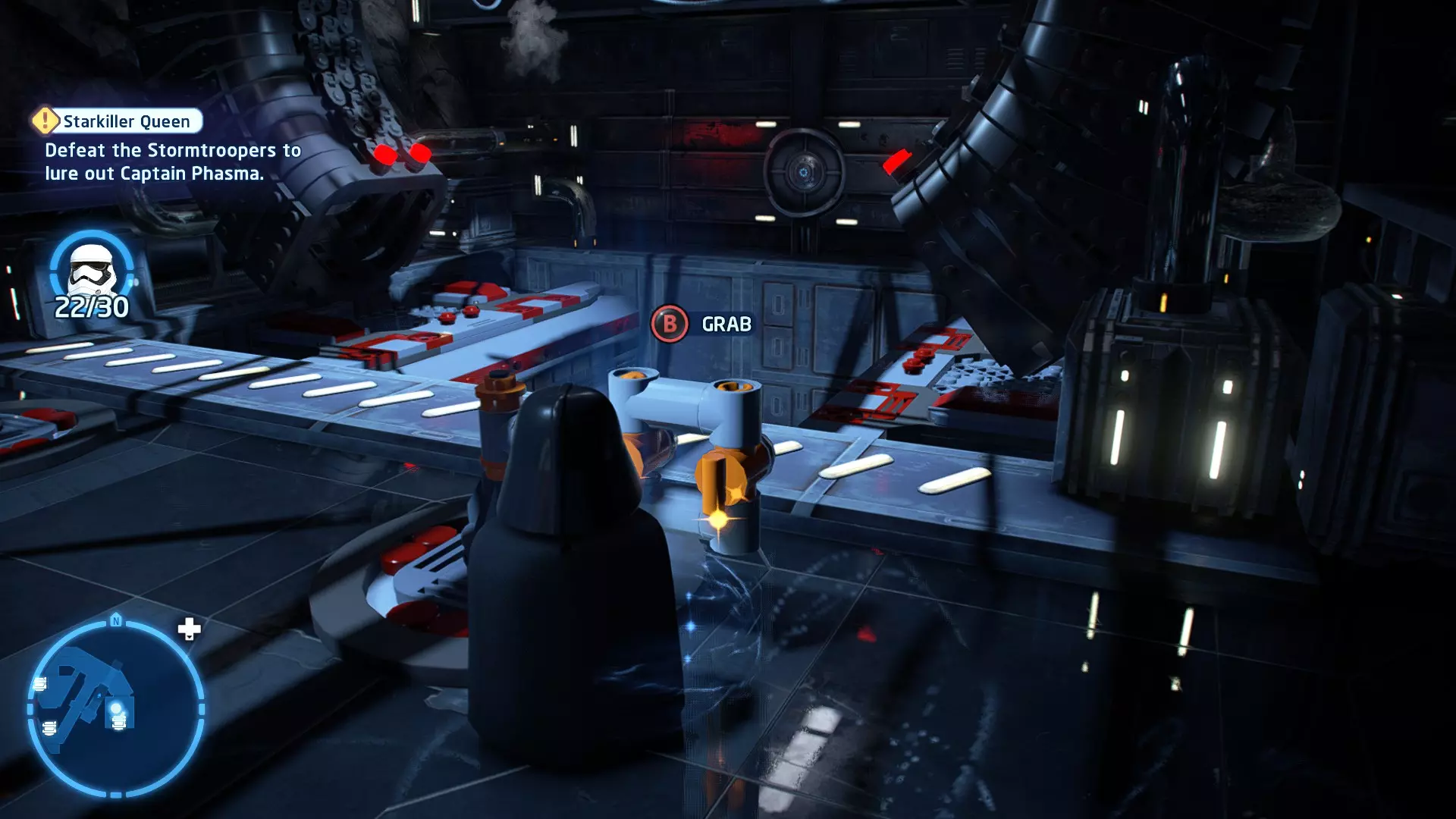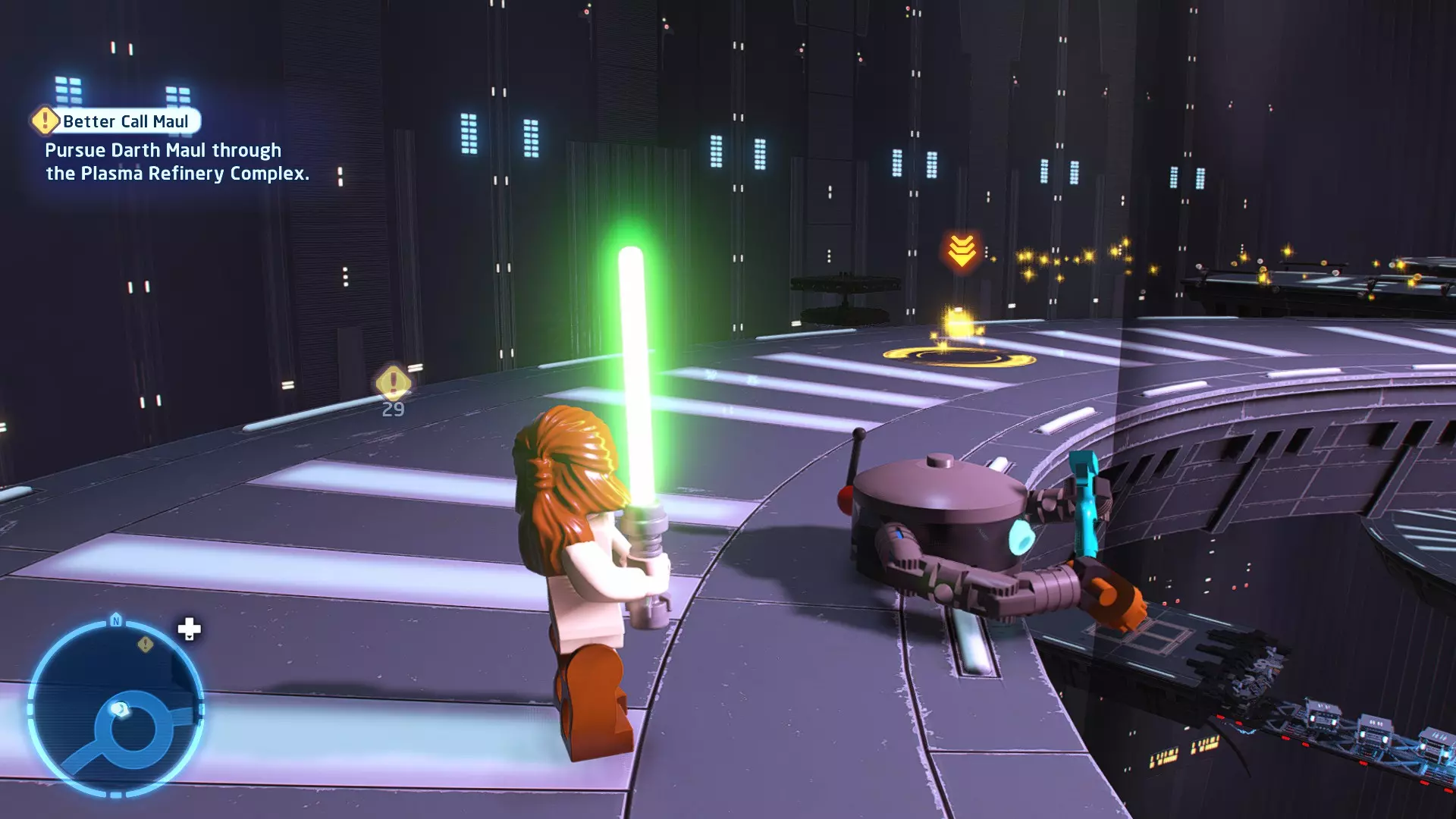 摧毁第一队西斯士兵右侧的黄金发电机,以获得乐高积木。将它们组装成这个迷你套件。 迷你套件3 - 无法束缚我