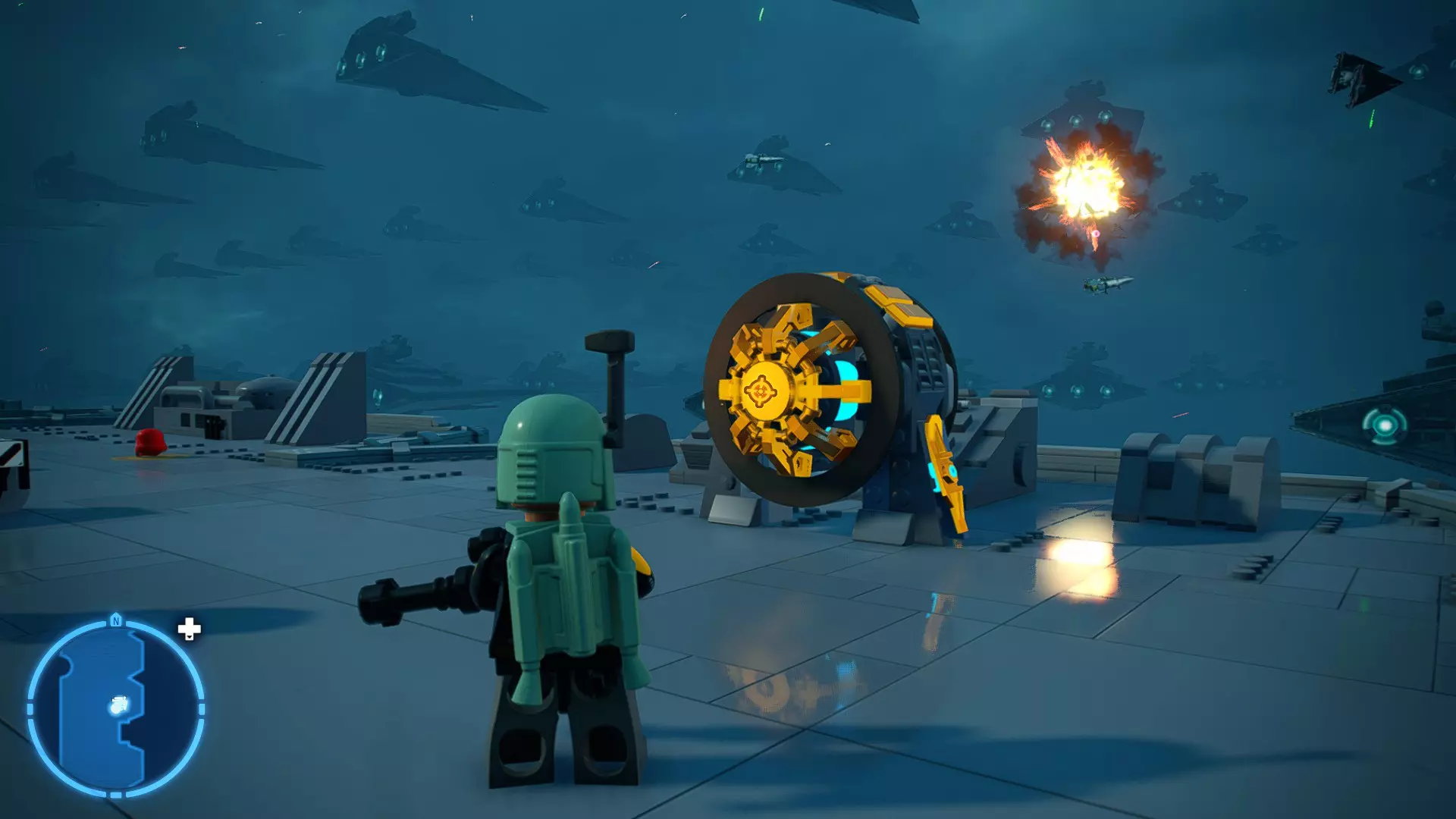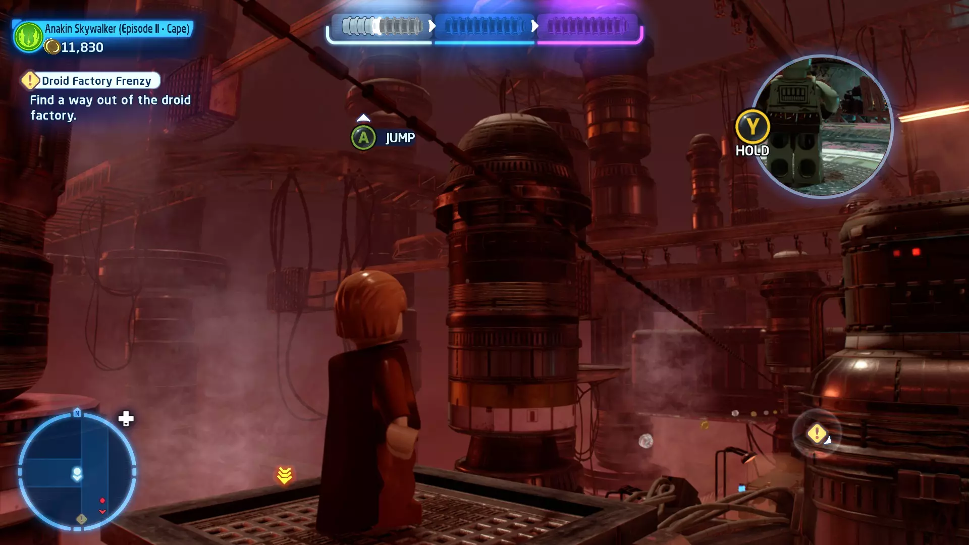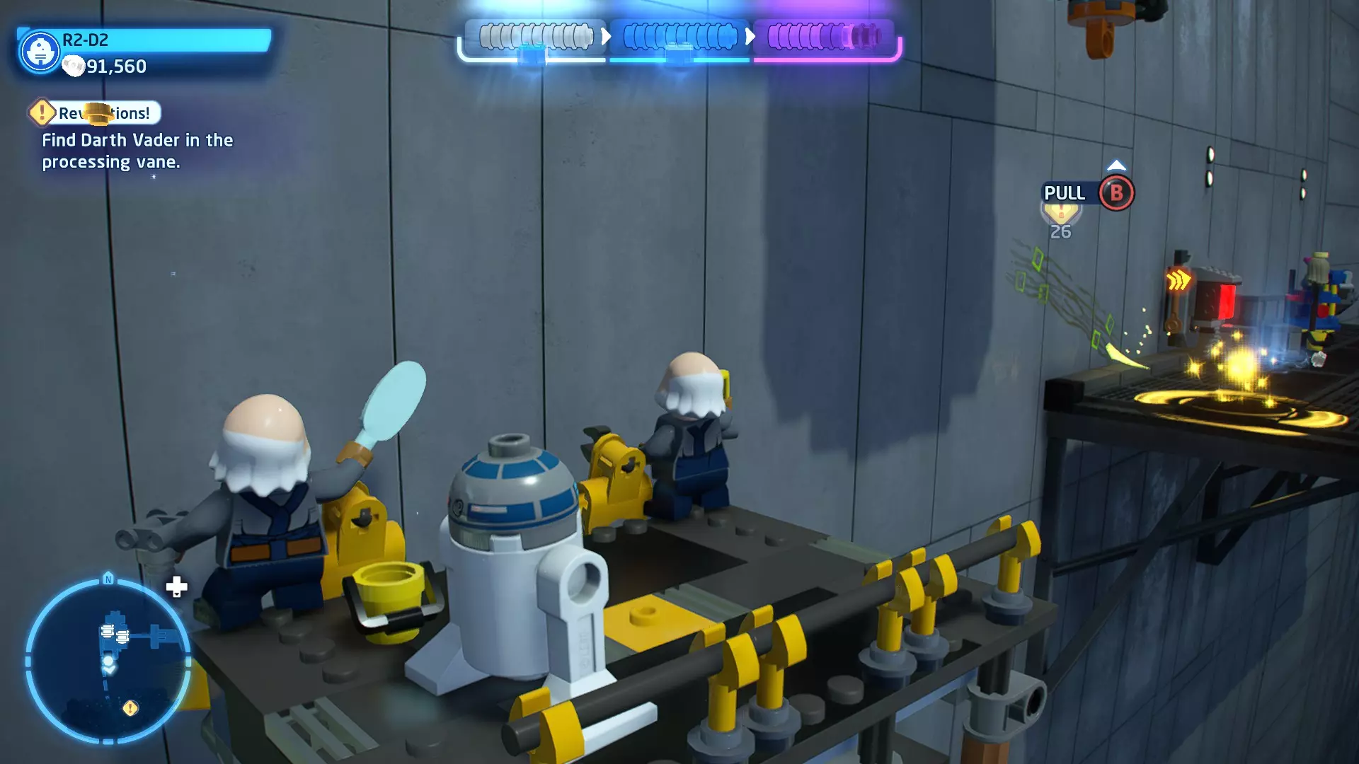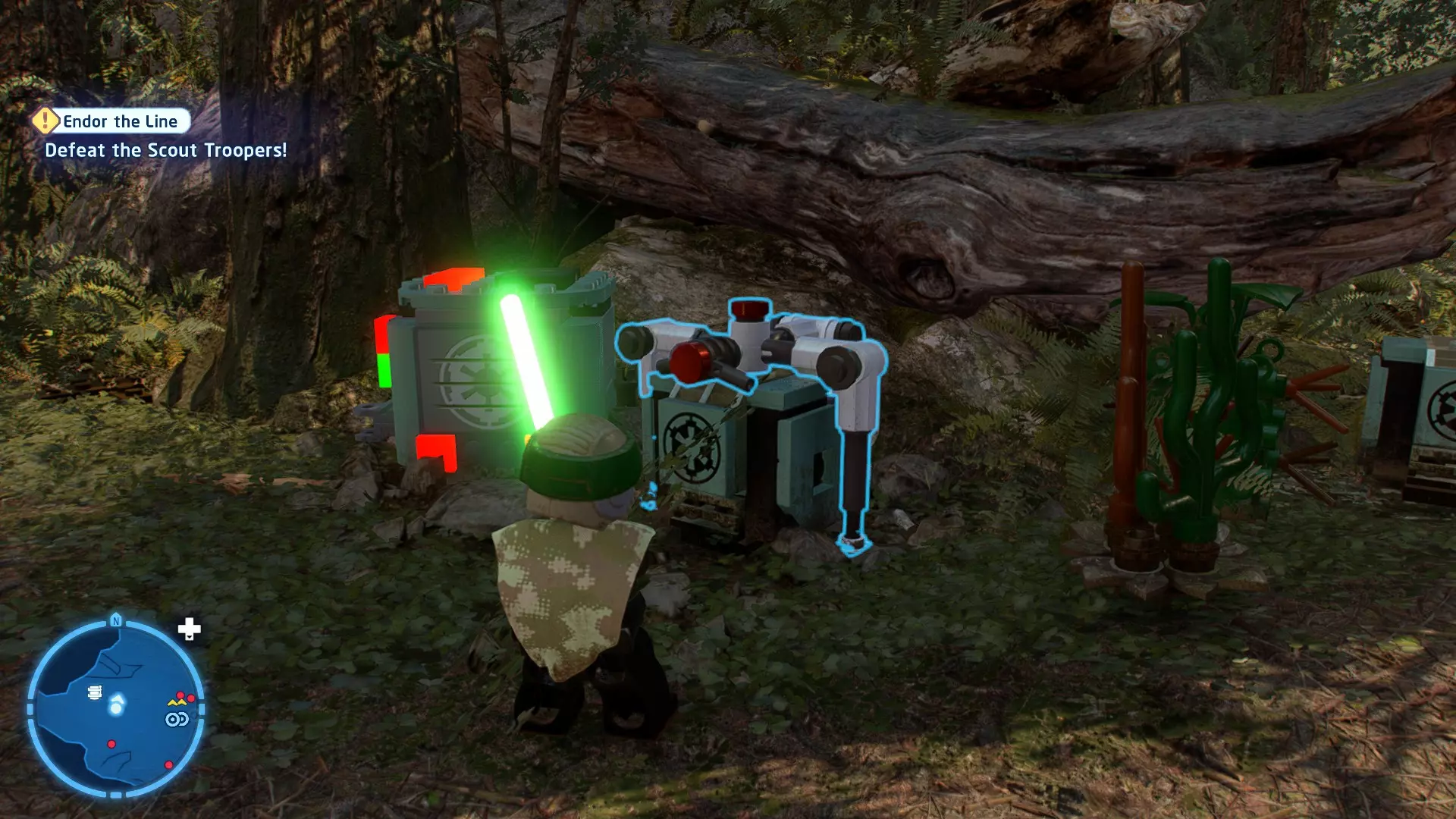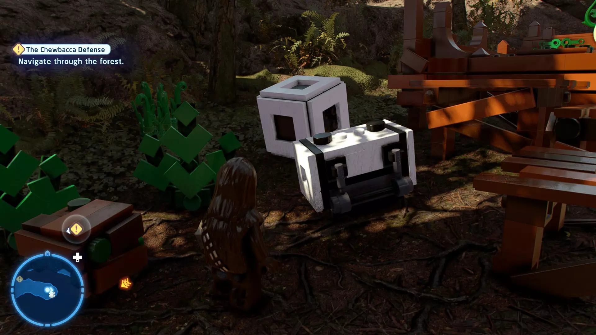 摧毁第一队西斯士兵右侧的黄金发电机,以获得乐高积木。将它们组装成这个迷你套件。 迷你套件3 - 无法束缚我