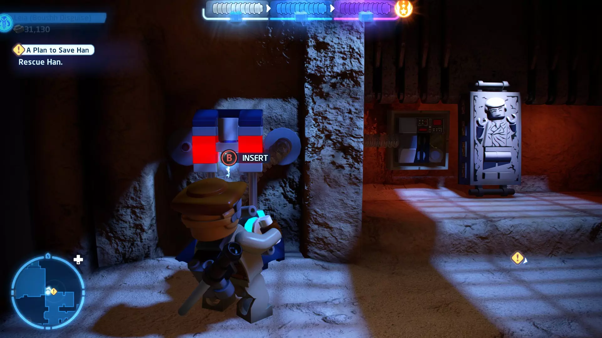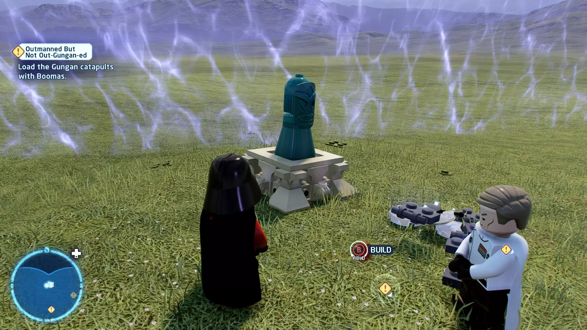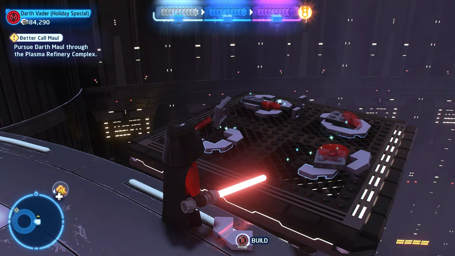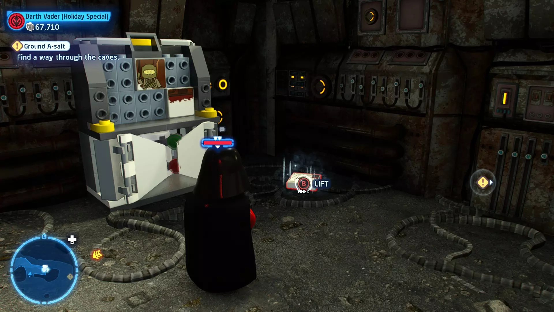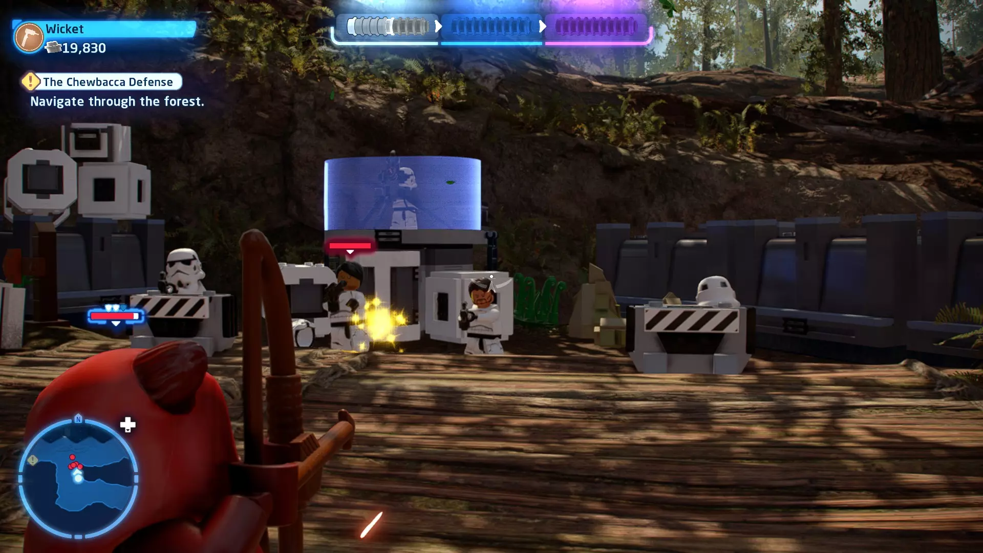 摧毁第一队西斯士兵右侧的黄金发电机,以获得乐高积木。将它们组装成这个迷你套件。 迷你套件3 - 无法束缚我