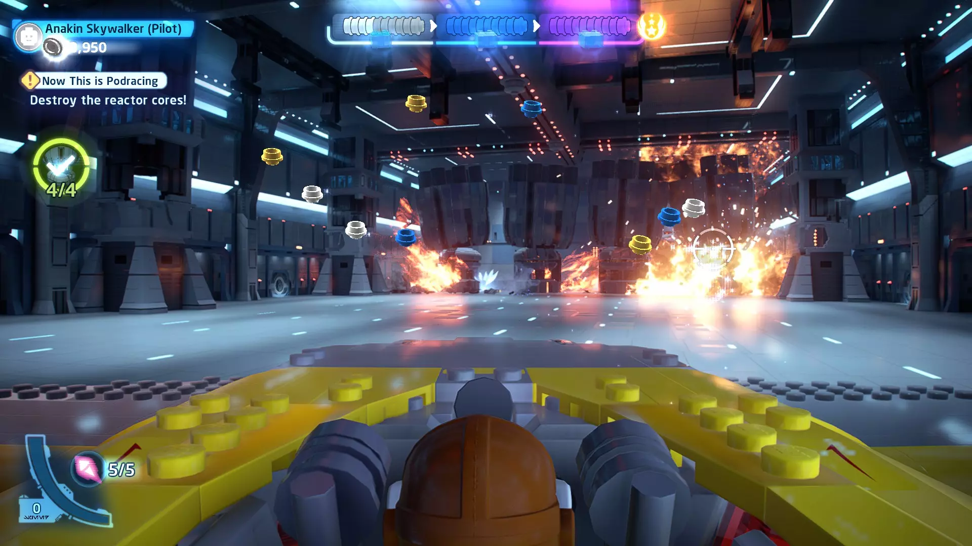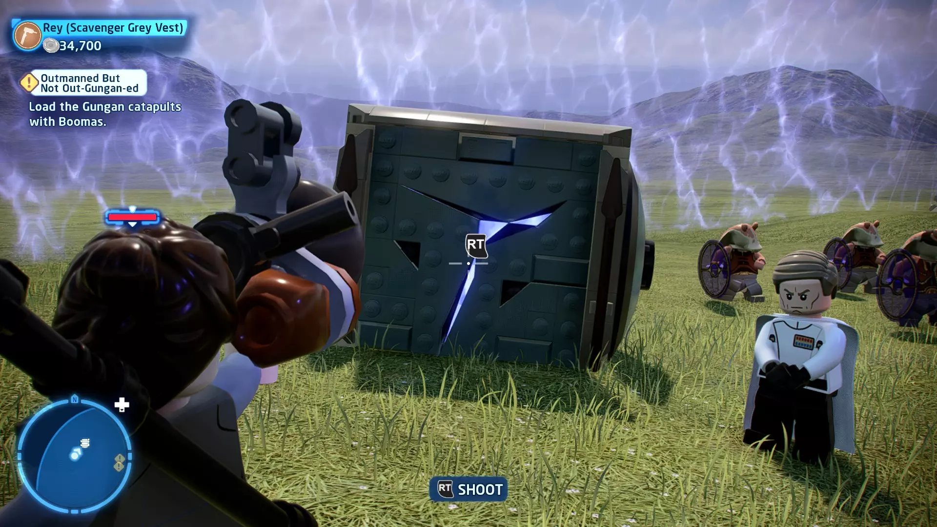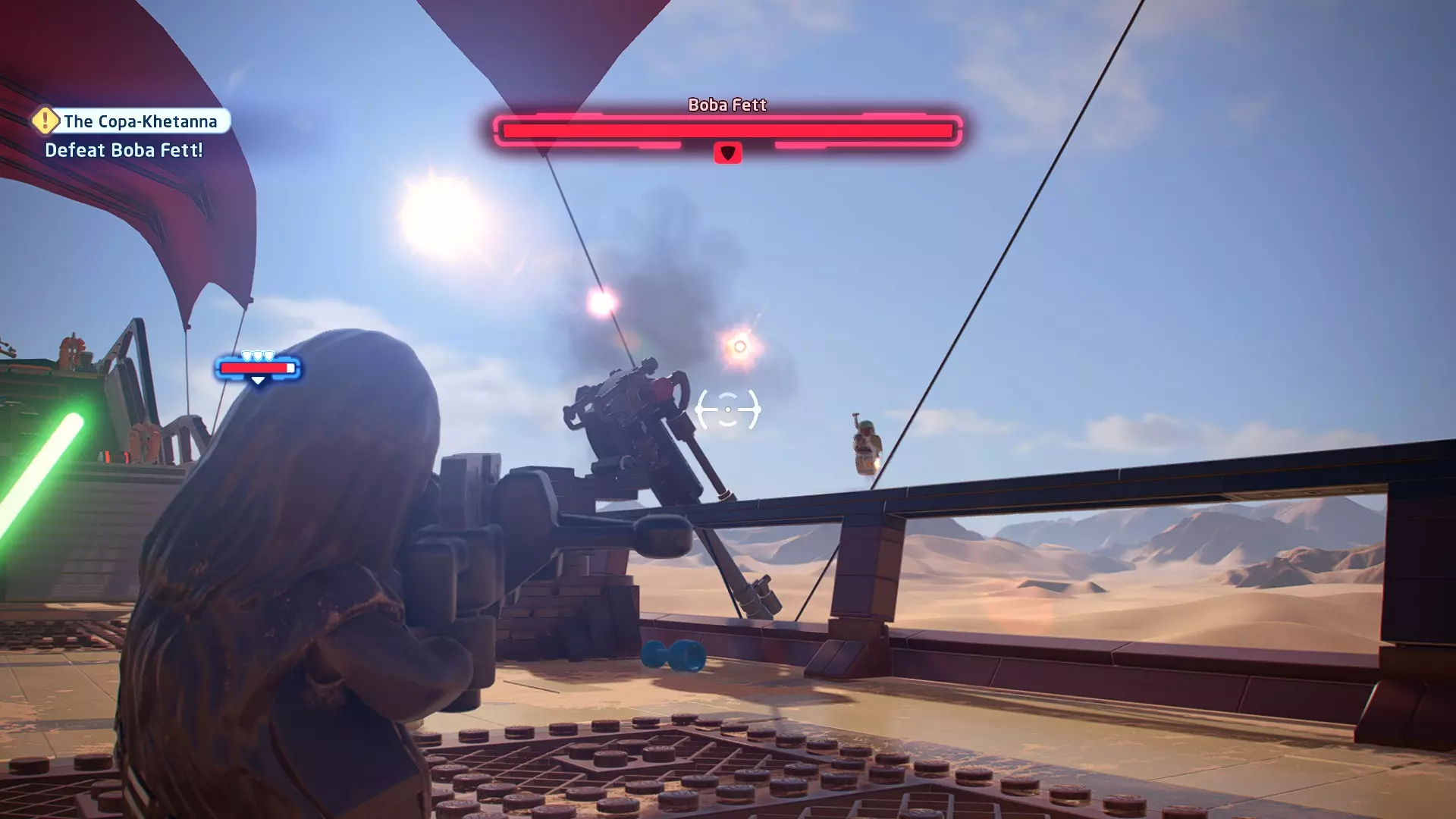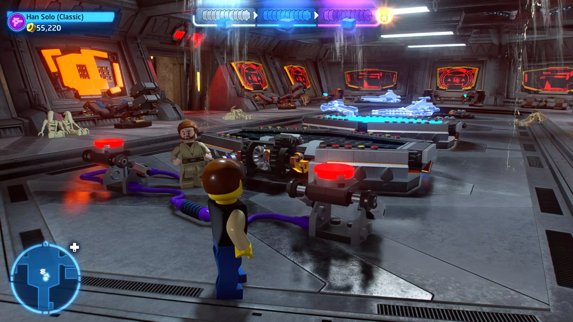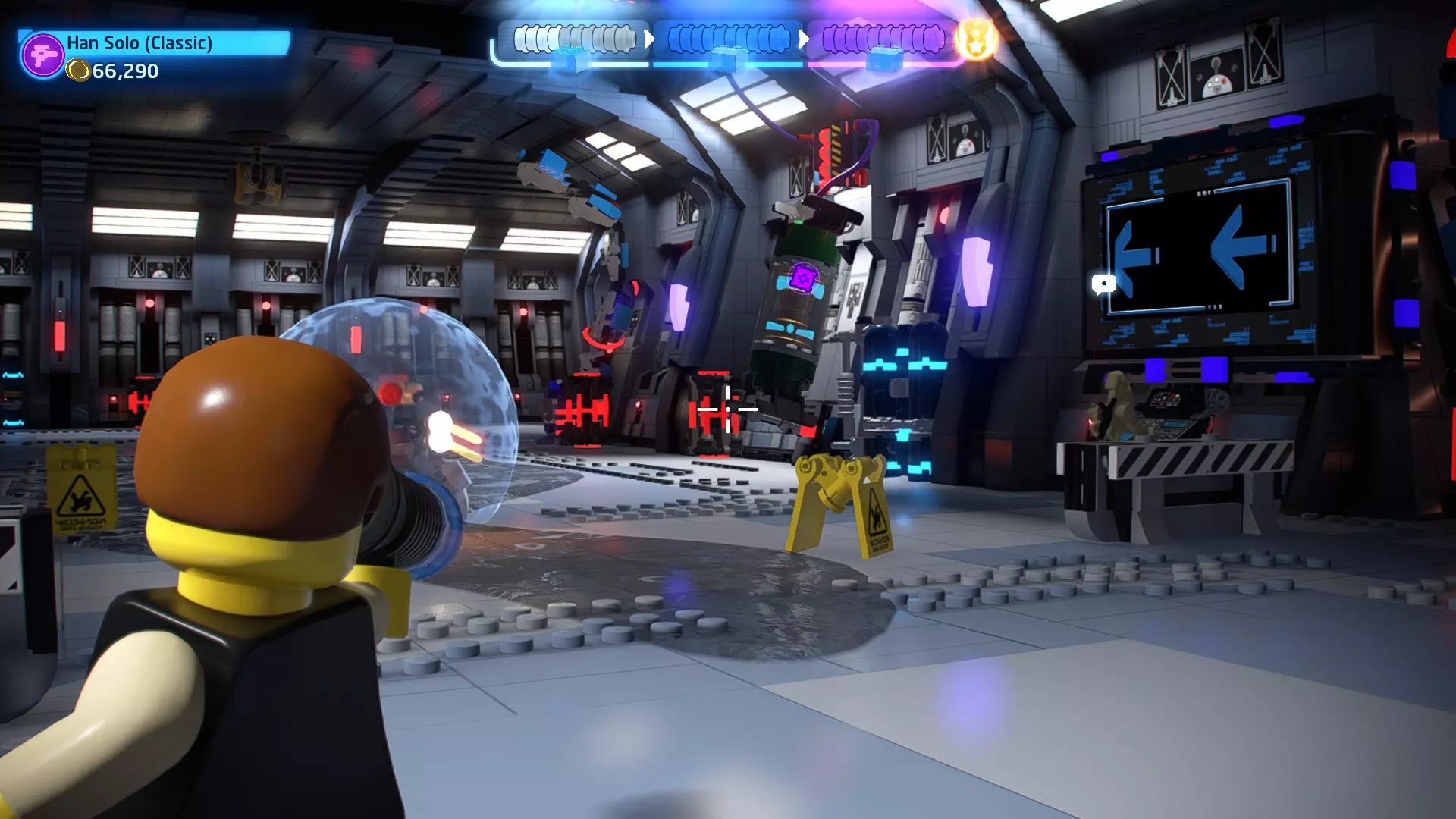 摧毁第一队西斯士兵右侧的黄金发电机,以获得乐高积木。将它们组装成这个迷你套件。 迷你套件3 - 无法束缚我